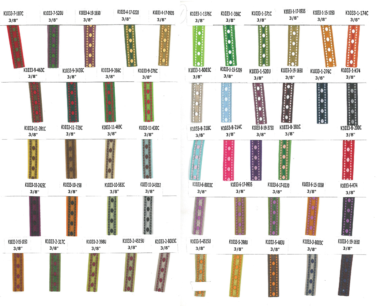 Adorable dots jacquard ribbon woven with 2 different colors of polyester yarn. This ribbon comes in a 3/8 inch width and 9 color combinations. You actually get two looks from this one ribbon because it’s reversible! The colors appear on one side of ribbon are reversed on the other creating a versatile look. Perfect for crafting, hair bows, scrapbooking, sewing projects, gift wrapping, home décor and all decoration needs.