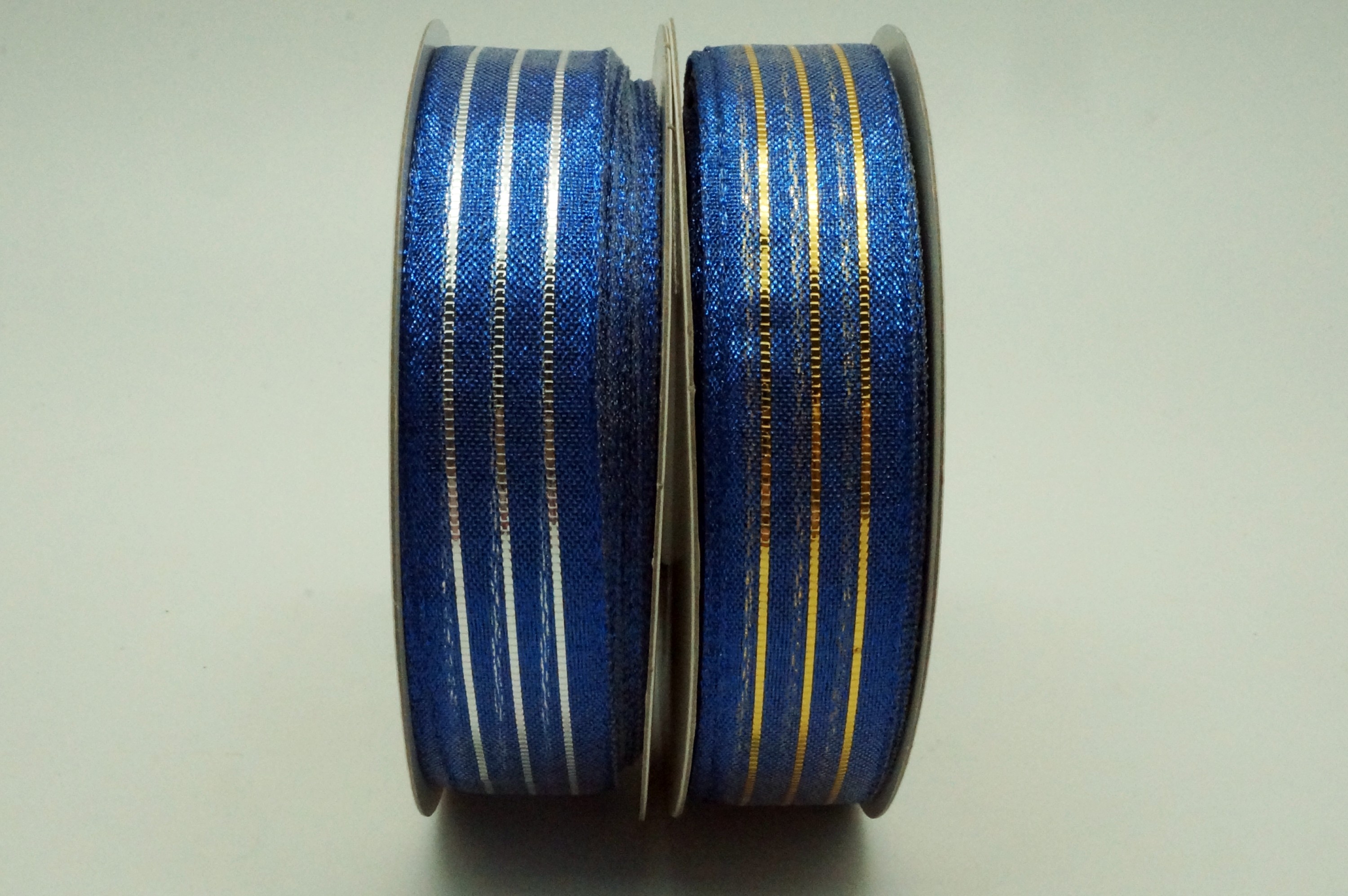 The 7/8 inch three-stripe metallic ribbon features thin sparkling metallic stripes in gold or silver. This metallic ribbon is reversible and has just the perfect width for gift wrapping and craft project. Also great for floral arrangements, gift baskets, embellishing, home décor, bows and more.