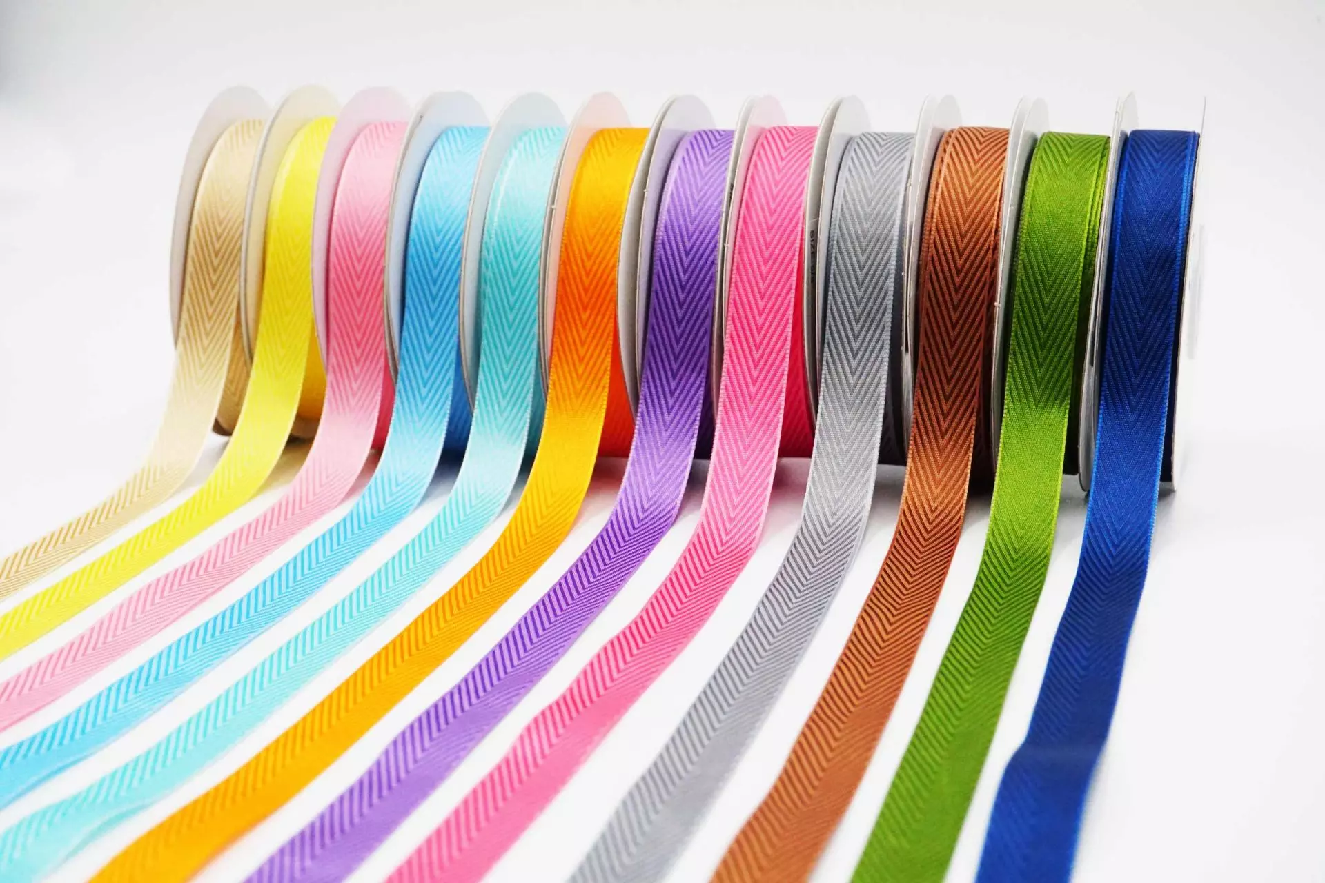 This webbing is woven into a herringbone design, made of polyester. Twill wide is 15mm and available in 12 colors, lightweight, can add a natural touch to gift wrapping, sewing, home décor, and craft of floral projects.