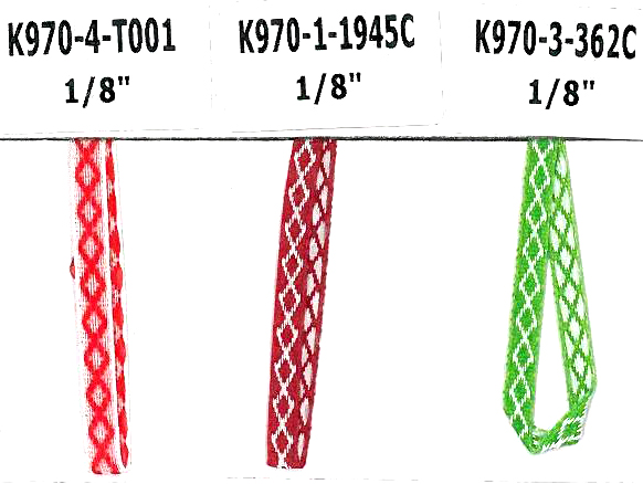 Narrow-sized ribbon in 3/8 inch width features “X” pattern woven on white base. It is a fun ribbon for your scrapbooking, craft projects, sewing projects, hair bows, accessories, gift packaging and more! Available in 12 colors. Custom colors can be made per request. The ribbon edge is non-wired.