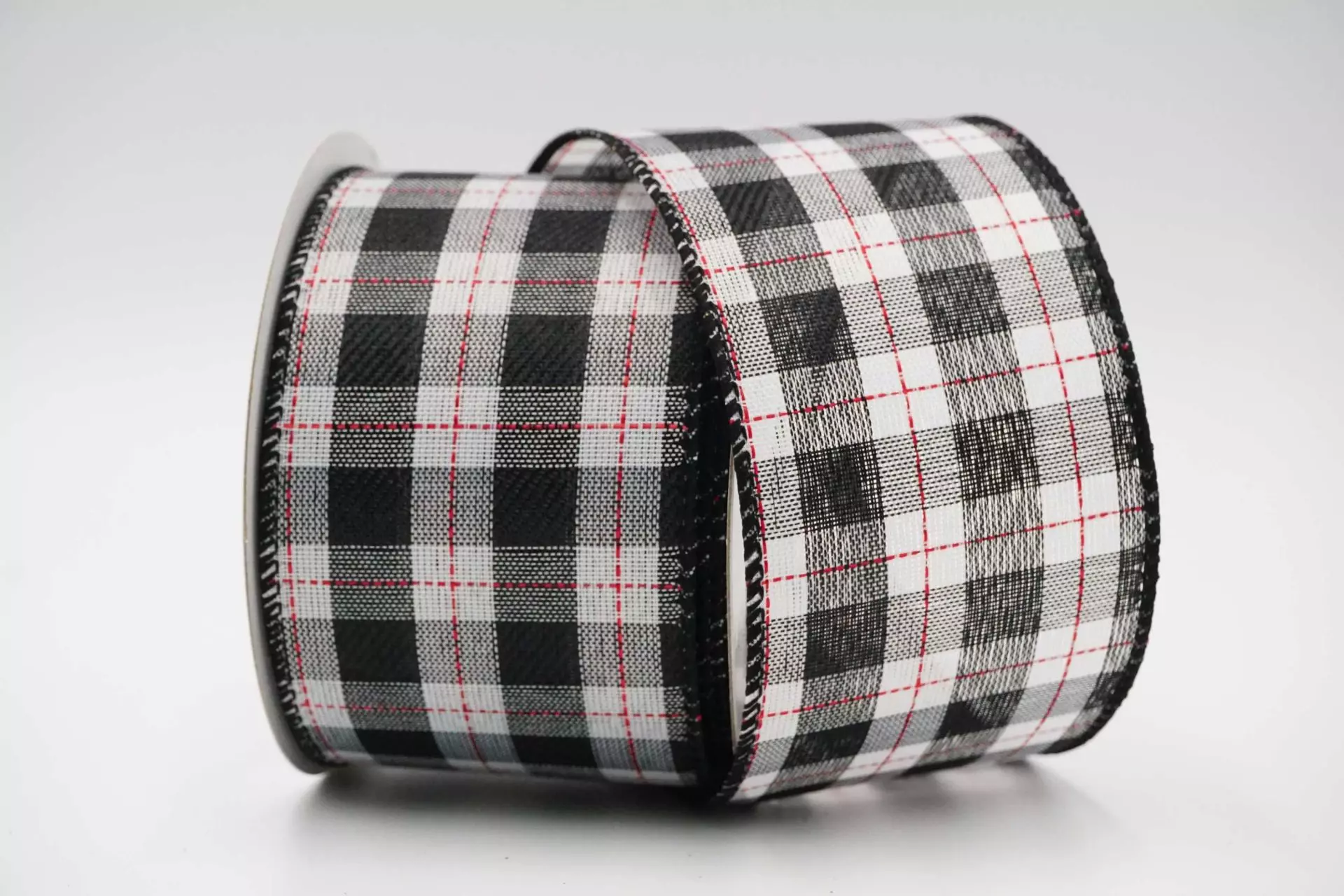 Constructed of a popular red/black and black/white woven buffalo plaid ribbon base. This wide ribbon would make a beautiful rustic country farmhouse look. Uses include: packaging, gift wrapping, autumn and winter floral arrangements, and Christmas decor such as adding to garlands, trees, wreaths, ornaments, etc.