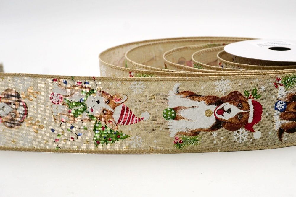 The enchanting Festive Deer & Pine Trees Wired Ribbon is a captivating choice that perfectly embodies the serene beauty and rustic charm of a winter wonderland Christmas. This ribbon features an idyllic design showcasing majestic deer amidst a forest of snow-dusted pine trees, instantly evoking the peaceful imagery of a snowy forest scene. The motif is beautifully detailed, often highlighted with a touch of glitter or metallic thread that mimics glistening snow and adds a magical sparkle, enhancing the festive appeal. Available in both the smooth finish of plain weave and the textured warmth of faux burlap, it offers versatile aesthetic options to complement a range of holiday decor styles. The color palette, including serene blue, classic red, sophisticated gray, earthy khaki, and natural tones, allows for seamless integration into various Christmas themes, from traditional to woodland-inspired. The wired edge is a crucial feature, providing exceptional flexibility and shape retention, enabling you to craft elaborate bows and decorative elements that maintain their form flawlessly. Imagine this ribbon elegantly wrapped around a gift, transforming it into a picturesque package, or woven into a festive wreath, bringing the tranquility of a winter forest to your doorstep. With a standard width of 2.5 inches, this ribbon is perfectly suited for creating impactful and visually stunning displays, from large-scale decorations to charming smaller accents.