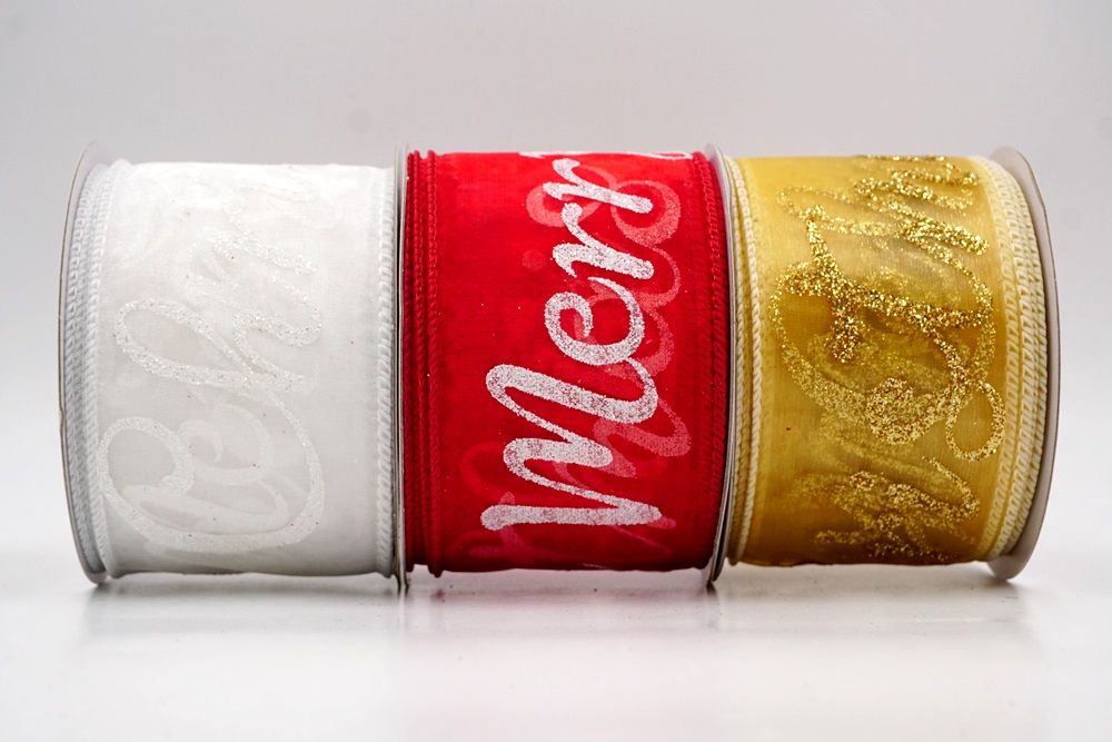 Merry Christmas Greeting Ribbon Wired Ribbon_KF9810