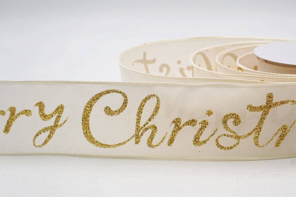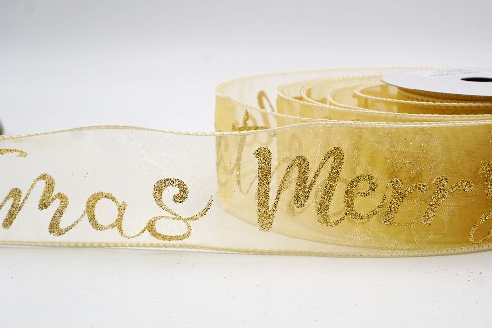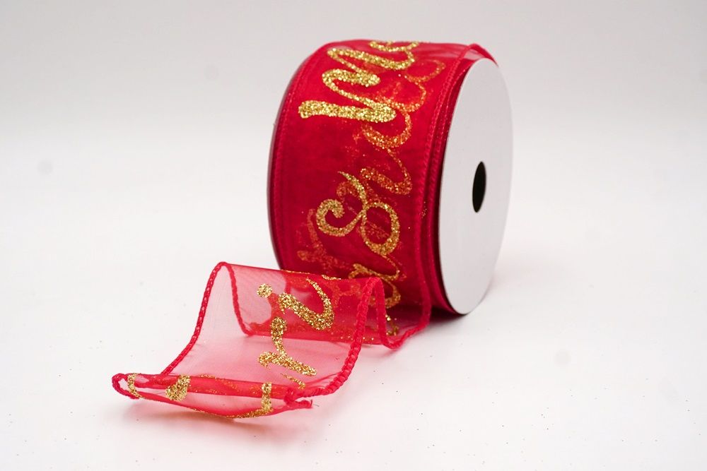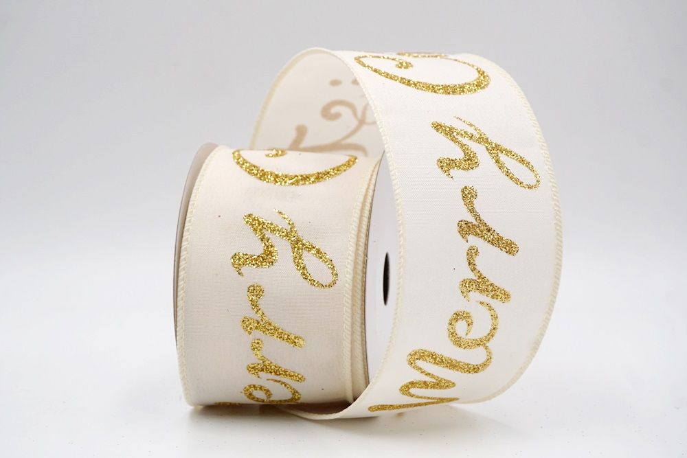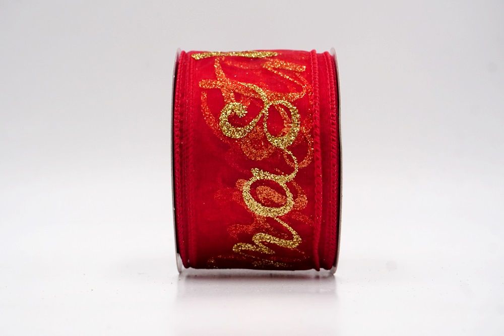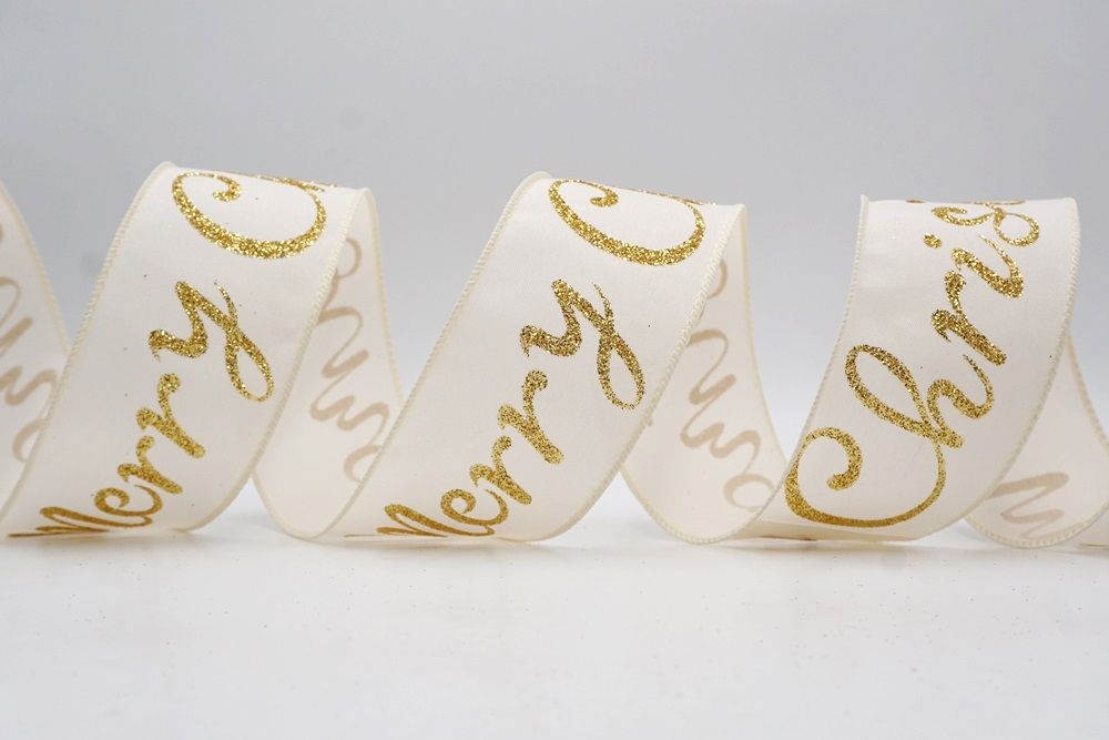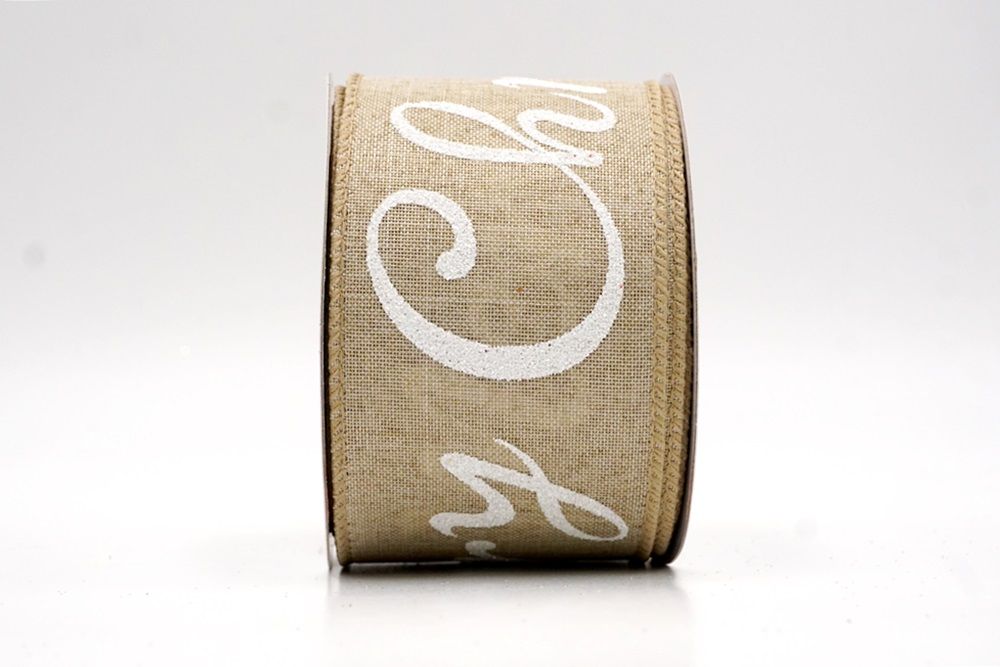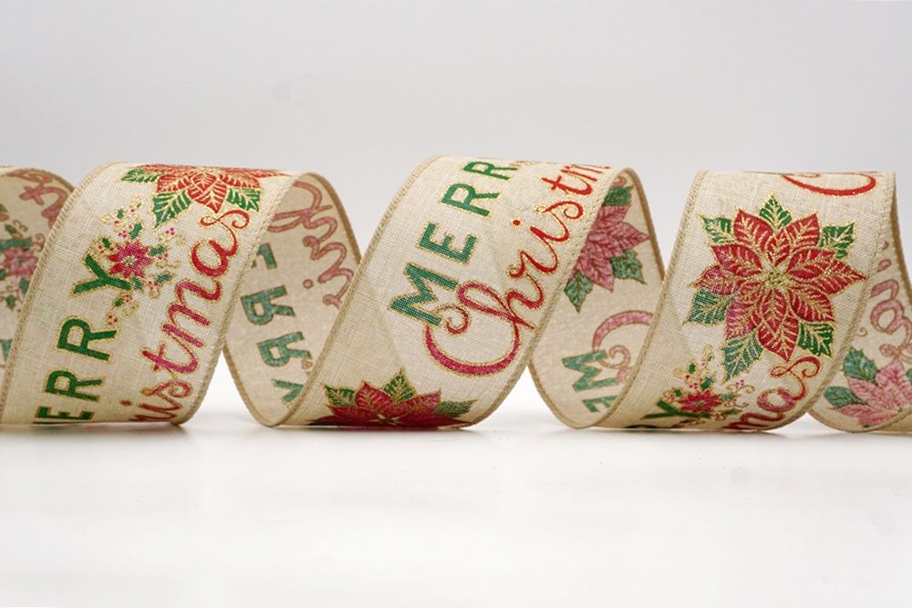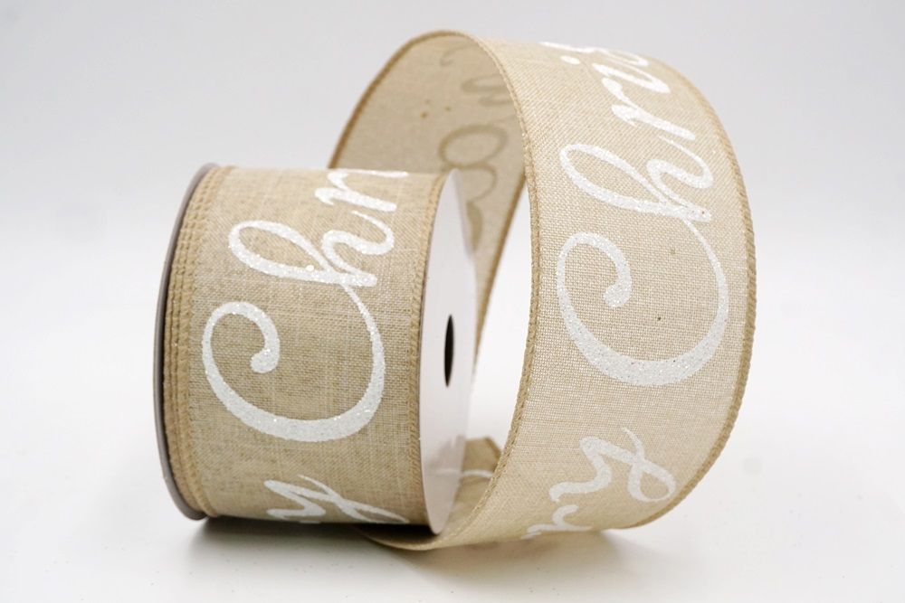 Spread the joy of the season loud and clear with the Merry Christmas Greeting Wired Ribbon. This collection is designed to literally wrap your home in good tidings, featuring the holiday’s most classic phrase scrolling elegantly across the fabric. The design versatility is stunning, offering choices to fit any theme: choose the translucent sheer fabric in red or gold for a sophisticated, glimmering look that catches the tree lights, or opt for the faux burlap in khaki and natural tones for a cozy, farmhouse aesthetic. There are also crisp plain weave options in white and cream that make the glittering red, green, and gold text pop with festive vibrancy. The typography varies from sweeping, romantic cursive scripts to playful mixes of block letters and swirls, ensuring that the "Merry Christmas" message feels personal and handcrafted rather than generic.