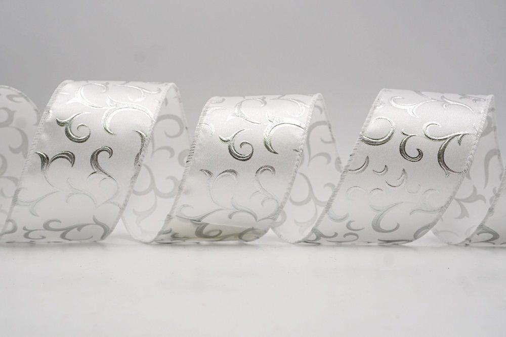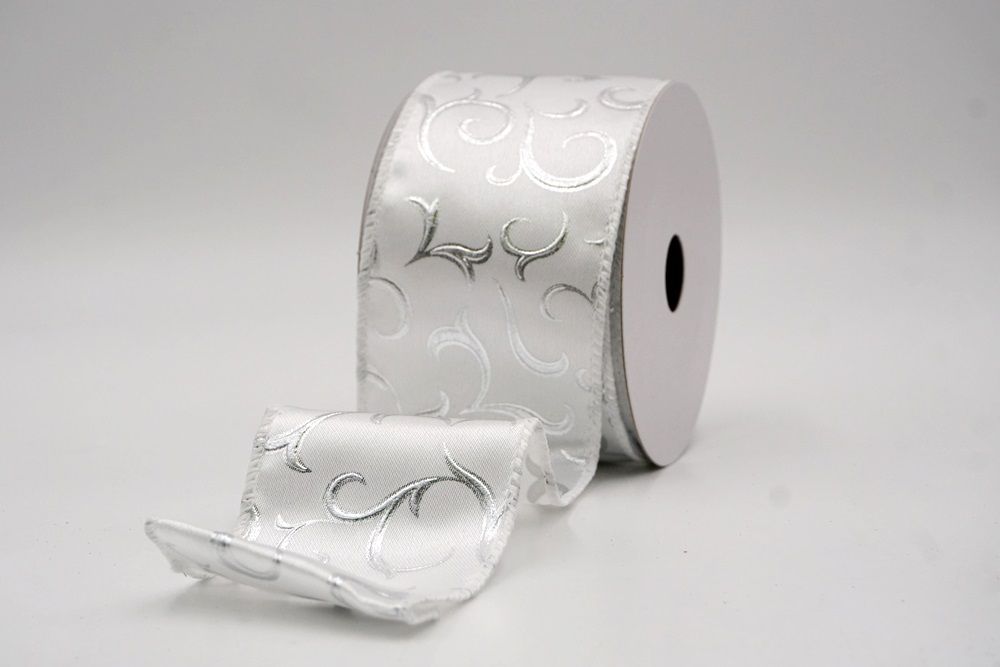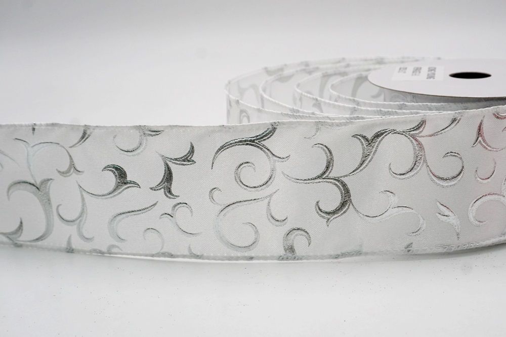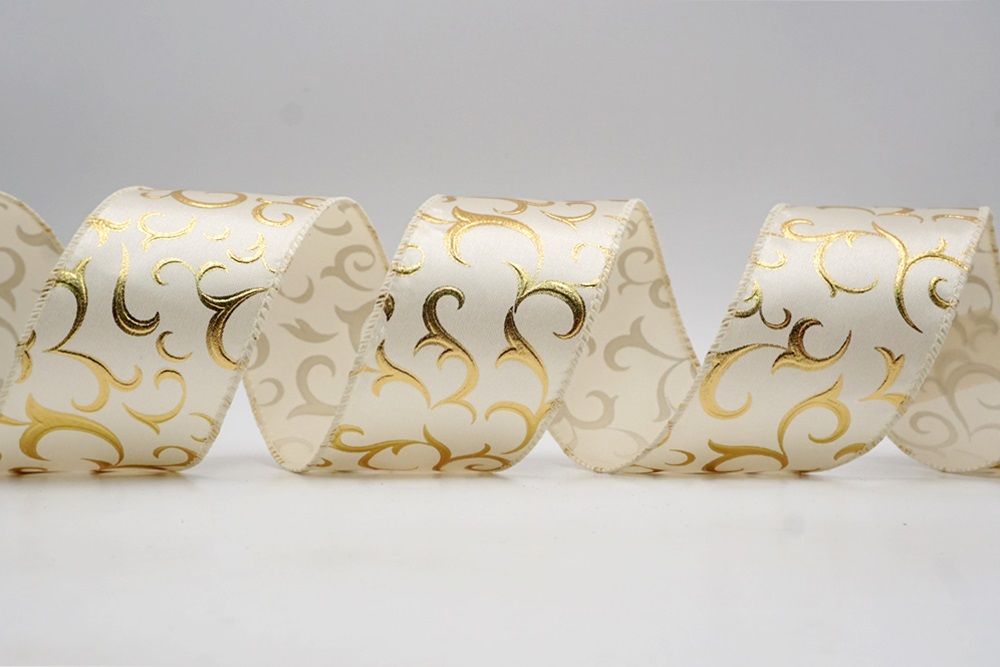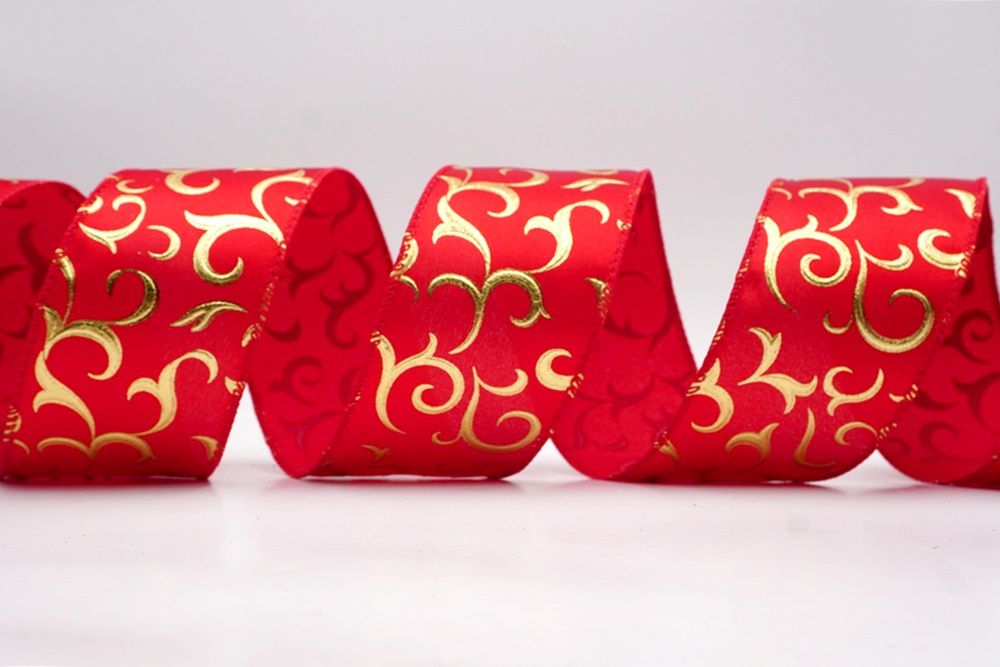 Elegant and classic design, the Metallic Foil Scroll Wired Ribbon features a luxurious, swirling pattern. Plain weave fabric gives the material a smooth, crisp background that allows the vibrant metallic scrollwork to stand out beautifully. The scroll design is continuous and ornate, offering a touch of traditional sophistication to any creation. This singular ribbon is readily available in many widths, ranging from 1 inch to 2.5 inches and even wider selections. Its sophisticated color palette includes clean white, deep navy blue, warm cream, and striking red. This rich color selection, paired with the brilliant metallic foil, makes it an ideal choice for both classic holiday projects and formal event decorations throughout the year.