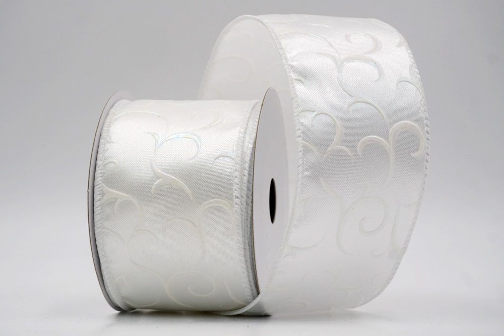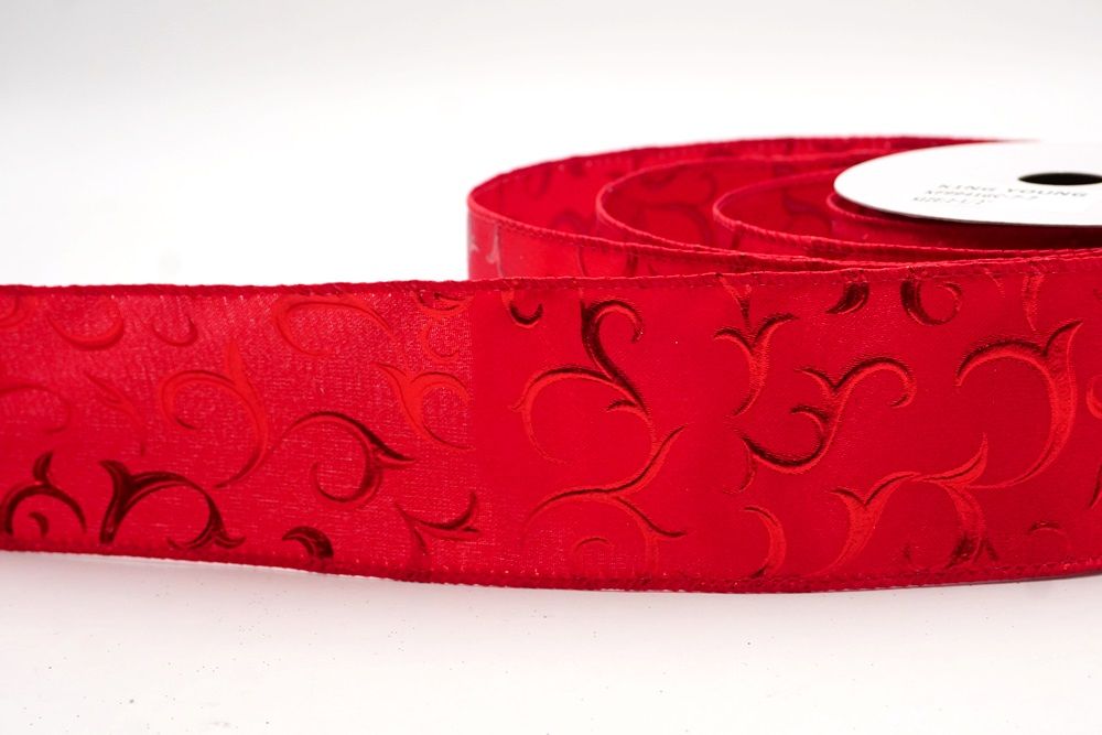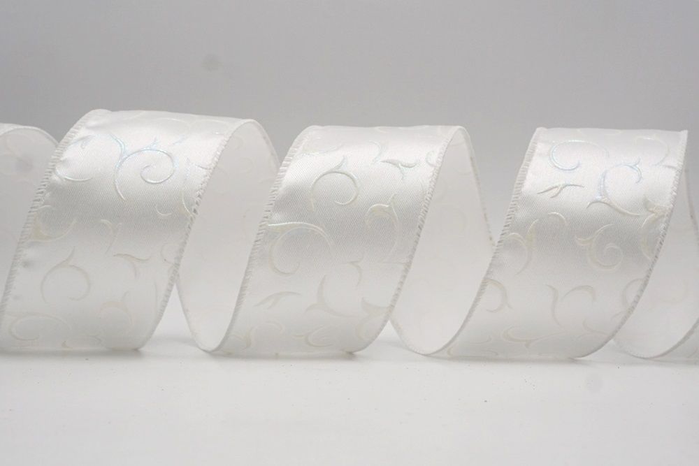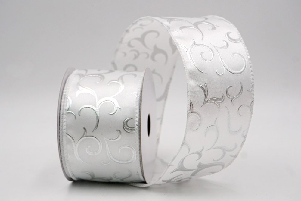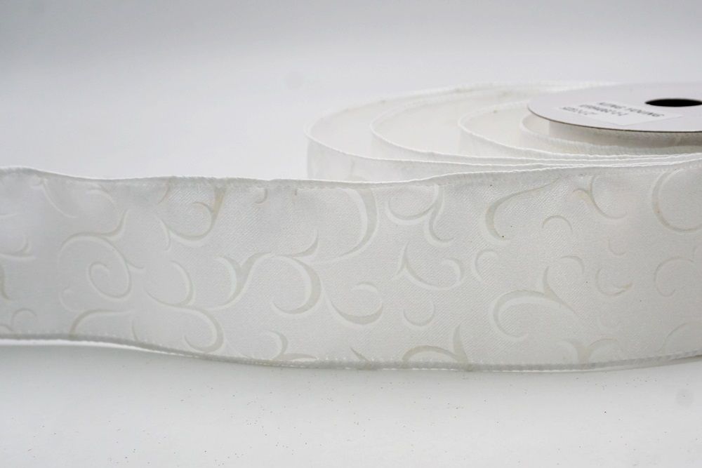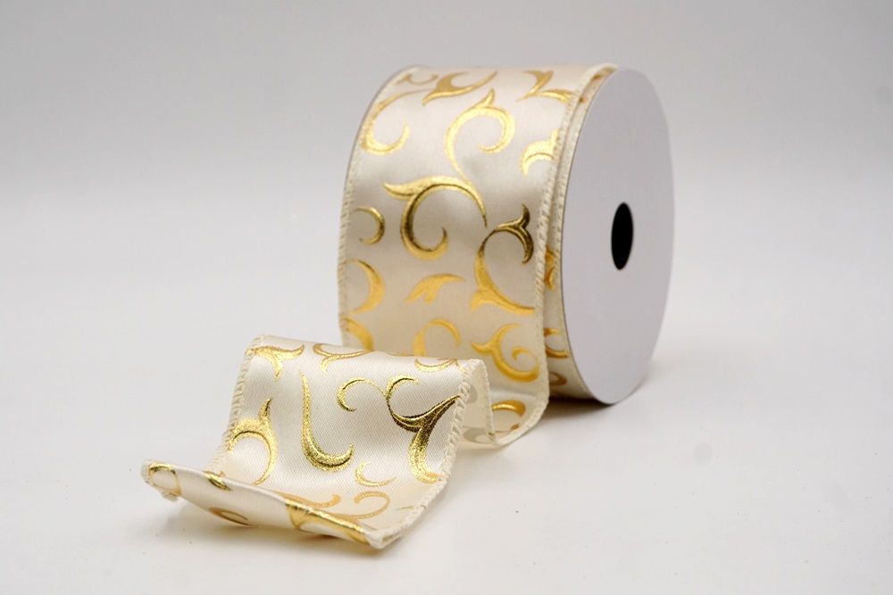 Elegant and classic design, the Metallic Foil Scroll Wired Ribbon features a luxurious, swirling pattern. Plain weave fabric gives the material a smooth, crisp background that allows the vibrant metallic scrollwork to stand out beautifully. The scroll design is continuous and ornate, offering a touch of traditional sophistication to any creation. This singular ribbon is readily available in many widths, ranging from 1 inch to 2.5 inches and even wider selections. Its sophisticated color palette includes clean white, deep navy blue, warm cream, and striking red. This rich color selection, paired with the brilliant metallic foil, makes it an ideal choice for both classic holiday projects and formal event decorations throughout the year.