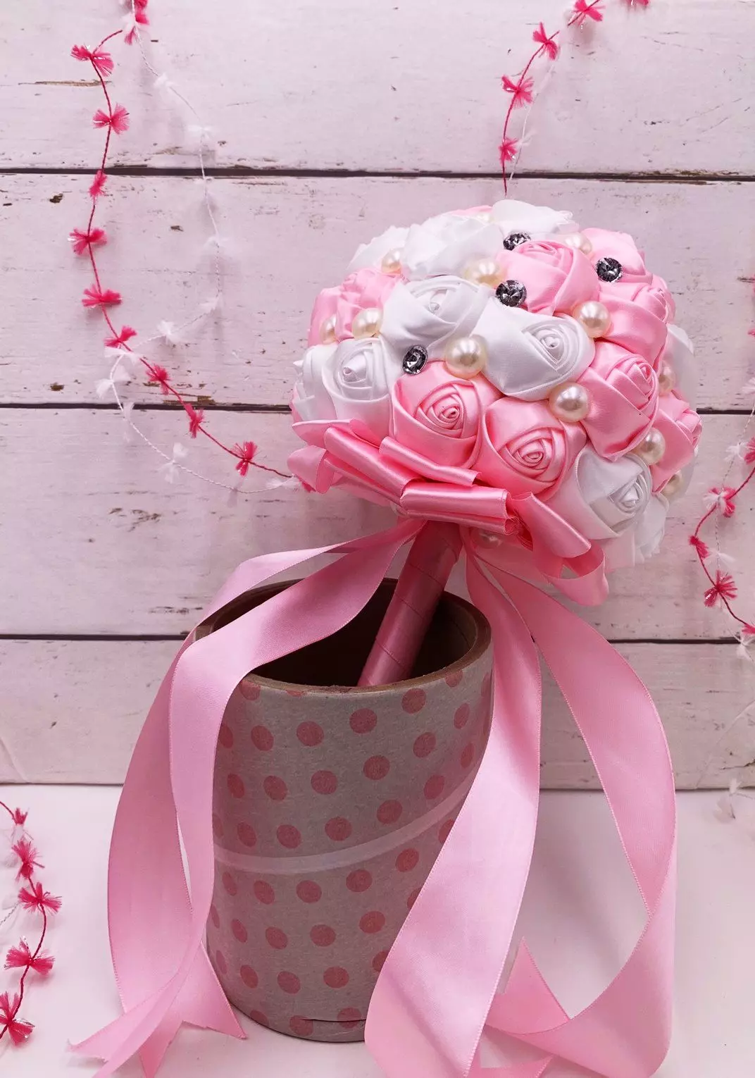 Roses are the quintessential wedding flower as they represent love and passion. This listing features rose bouquet that is handmade from smooth and glossy satin ribbons. Making a bouquet from the flowers you cut from the garden is ok, but these ribbon made ones can be used as home decor and a memorial thing after the wedding day.