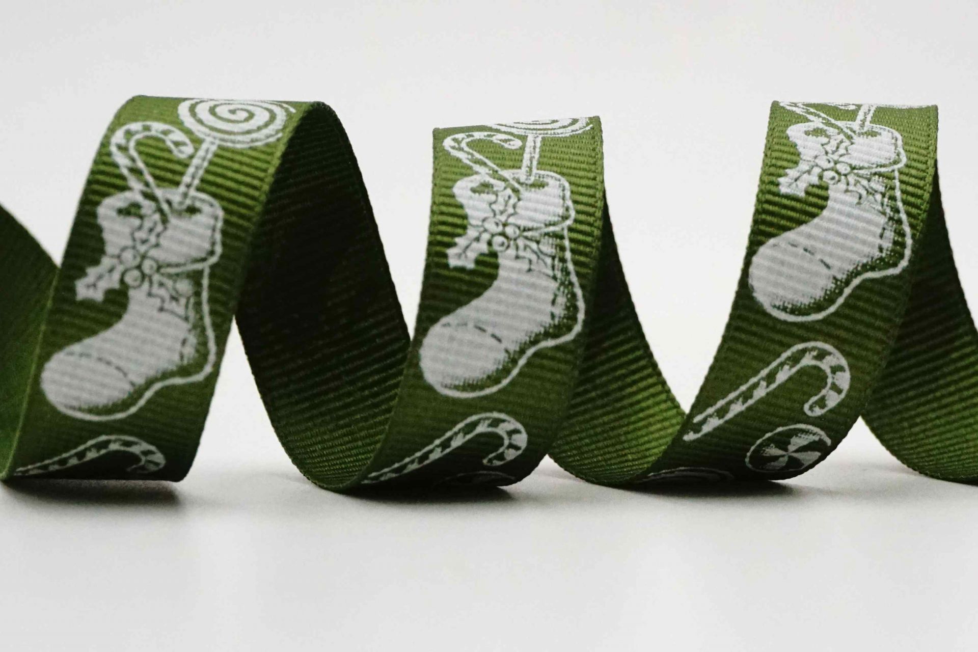 Christmas stockings are a staple part of any Christmas decorating scheme. They are simply the idea of carring out a beloved holiday. Therefore, a home is just not complete until you hang some Chrsitmas stockings or… decorate your place with this aorable printed satin ribbon!
