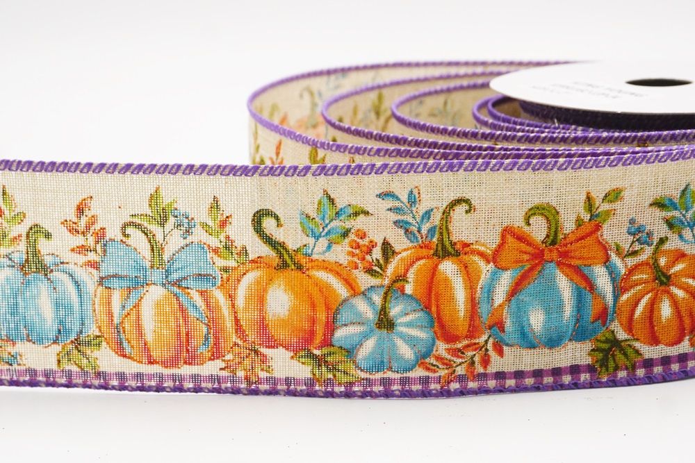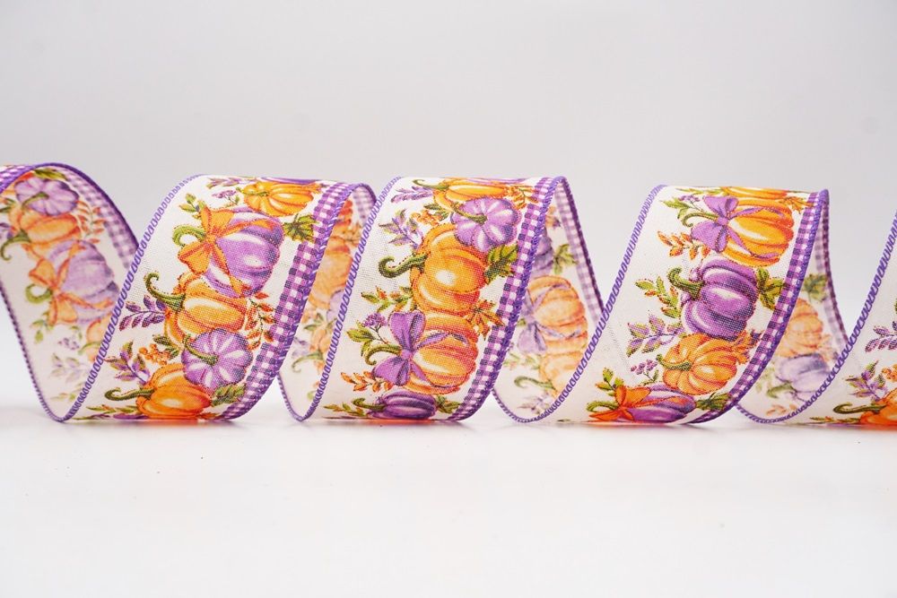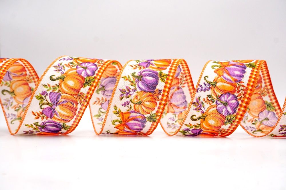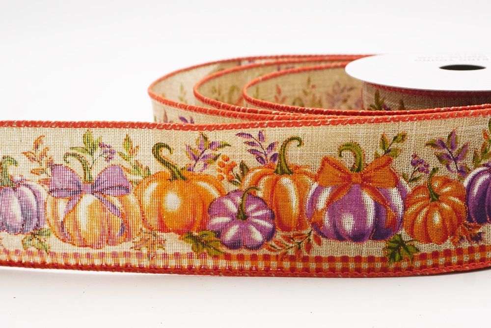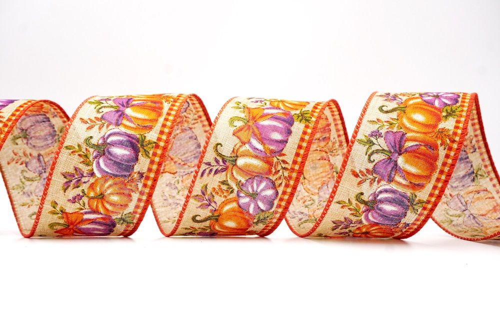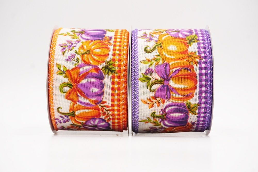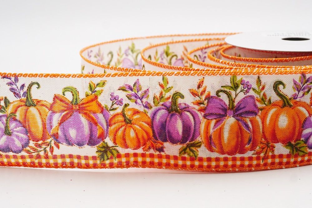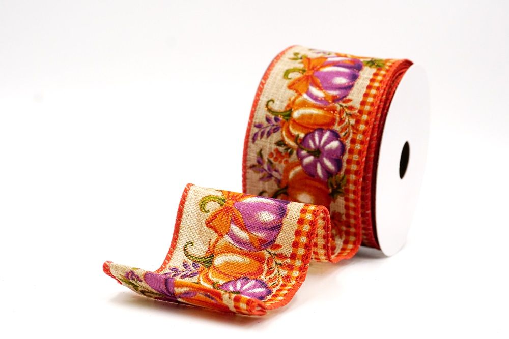 Plaid Edge Pumpkin Harvest Fall Wired Ribbon_KF9911