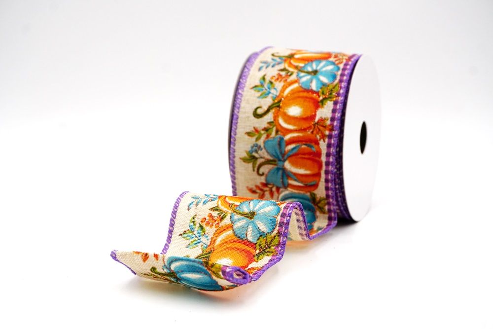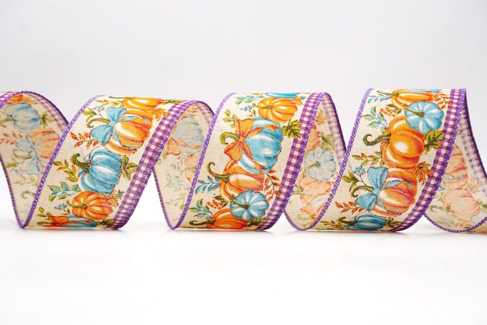 This pumpkin harvest ribbon is offered in five attractive colors: cream, purple, light brown, light brown–purple, and beige. With its faux burlap fabric and wired structure, it provides both durability and flexibility, making it a great choice for wreaths, bows, table décor, and fall-themed gift wrapping. The plaid border adds a distinctive seasonal accent.