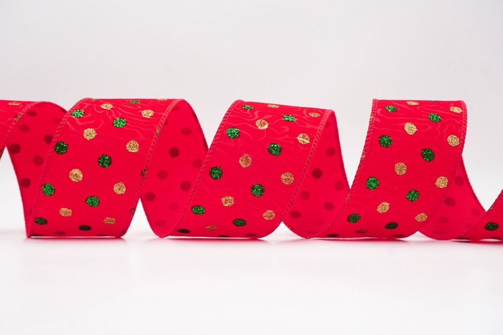 Red Gold Polka Dots Wired Ribbon_KF9892.KF9893