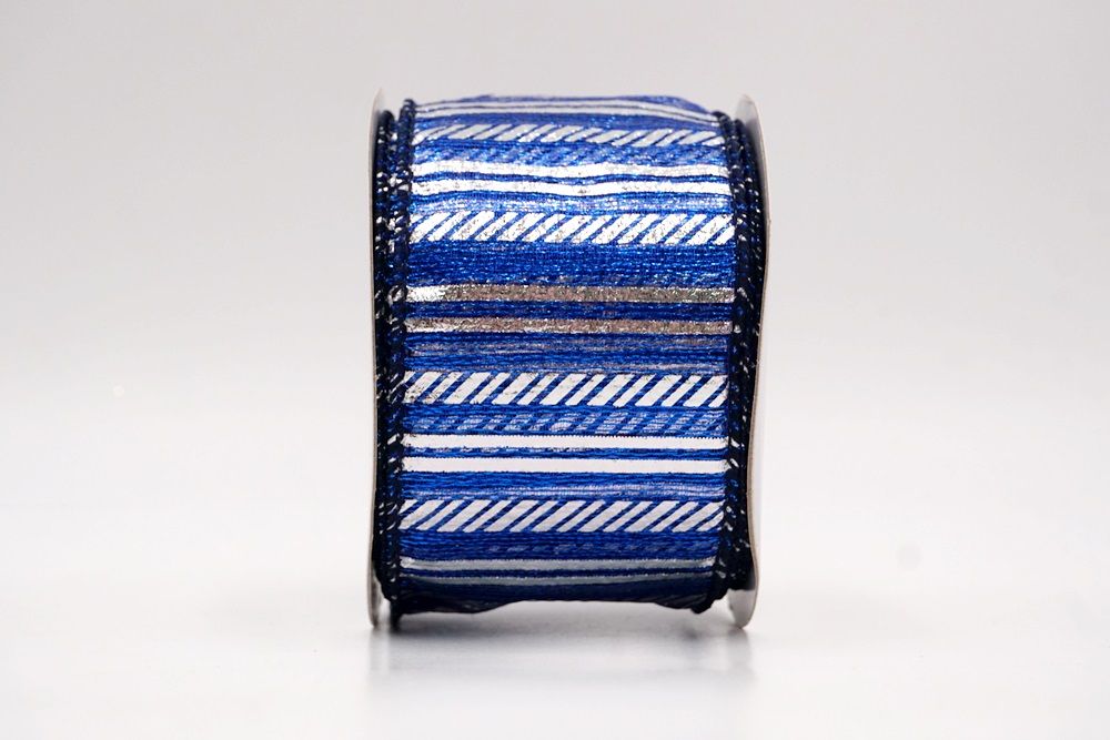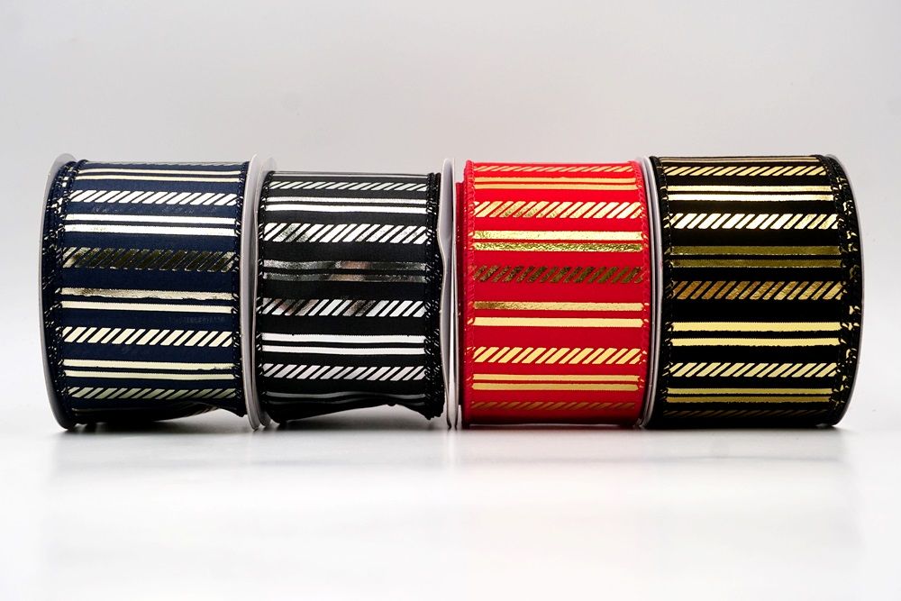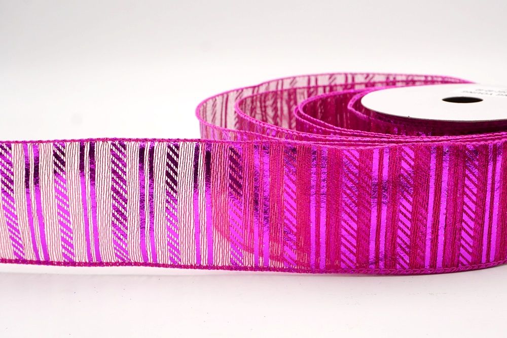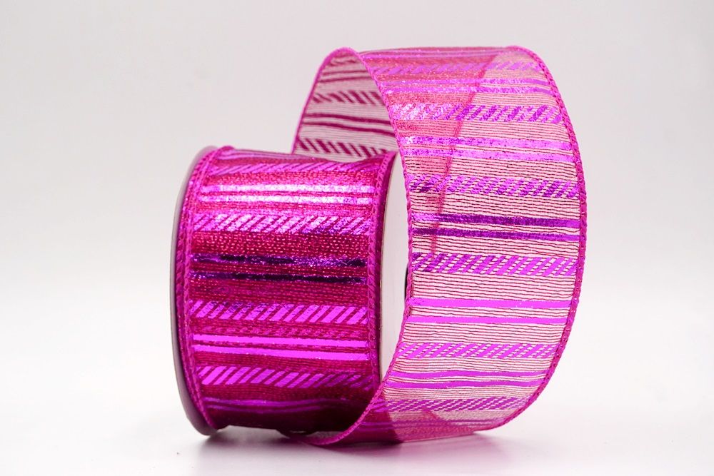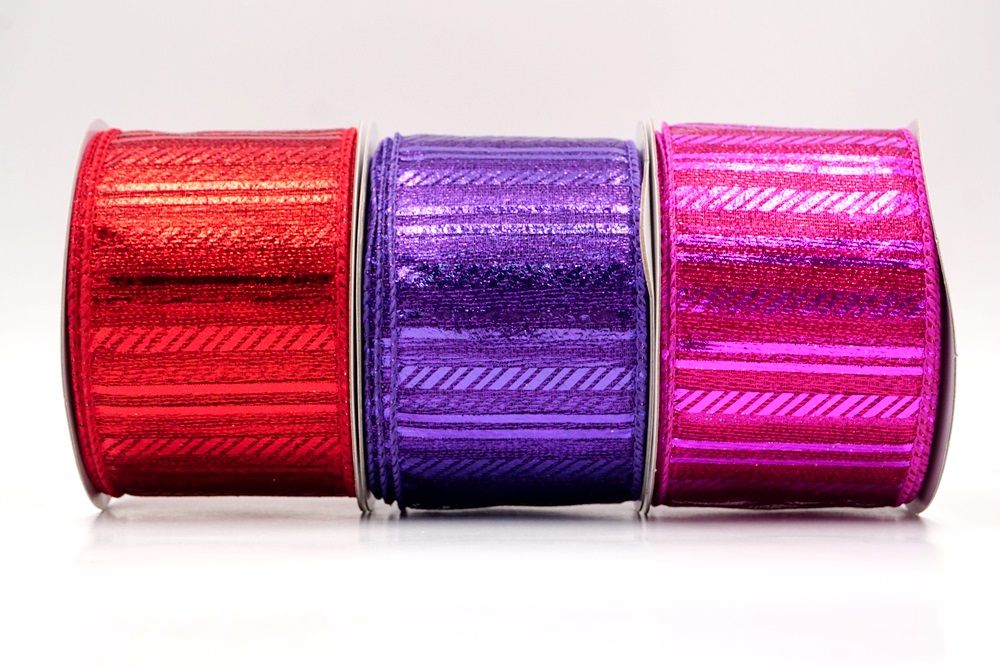 This Shimmer Horizontal Bar Wired Ribbon is a wonderful choice if you want to add some sparkle to your projects. The design features shiny stripes running across the fabric, which catches the light in a beautiful way. You can find this ribbon in several different textures, including metallic sheer, classic plain weave, and soft velvet fabric. There is a wide variety of colors to pick from to match your style, such as bright silver, gold, red, and green, as well as deep navy blue, violet, hot pink, and black. It is available in many widths, starting from 1 inch up to 2.5 inches and even wider sizes, making it easy to find the right fit for whatever you are planning to make.
