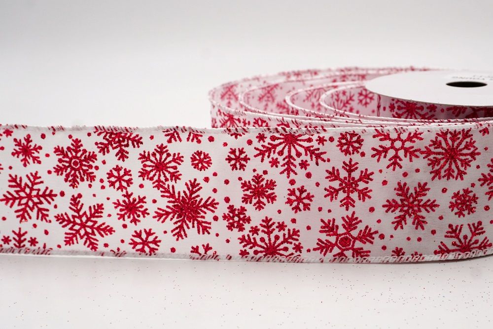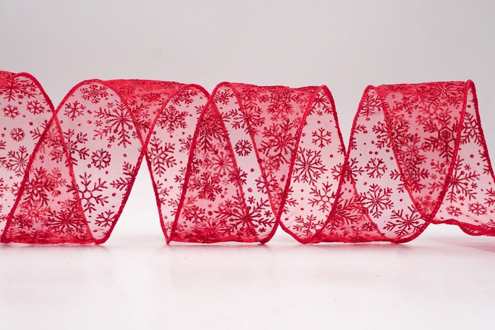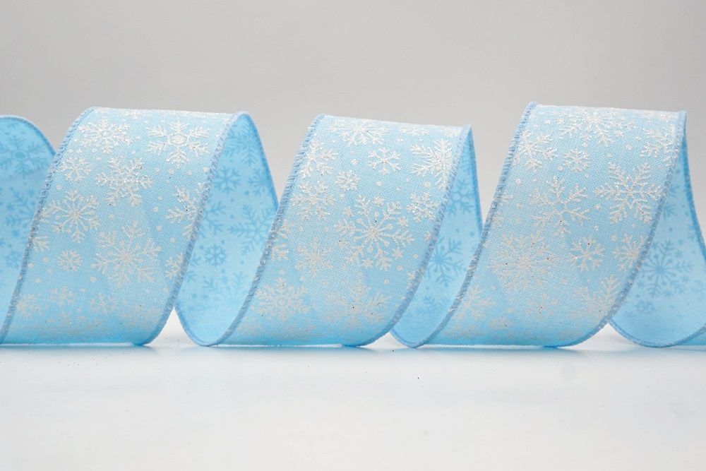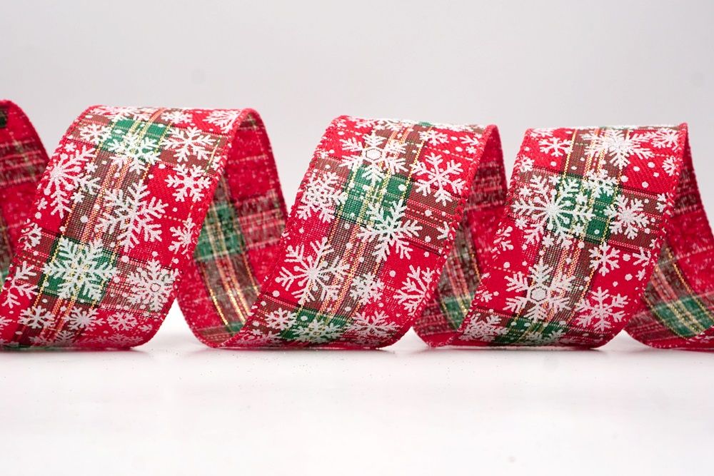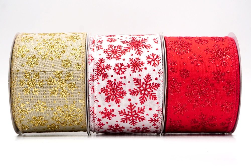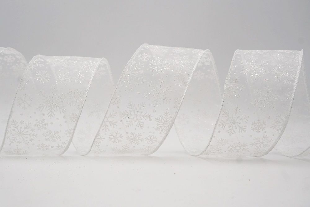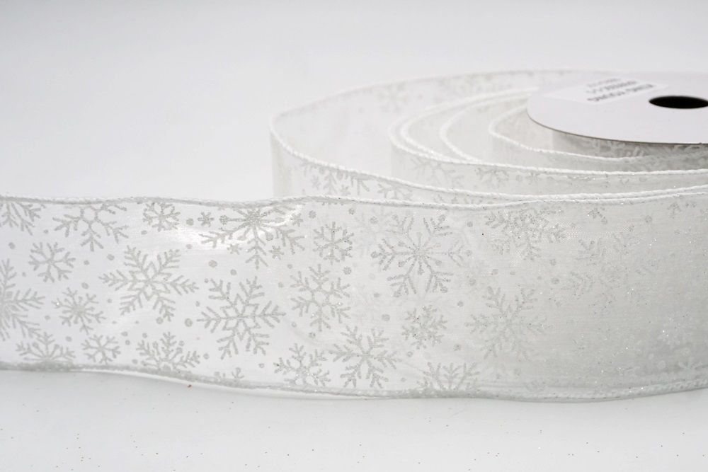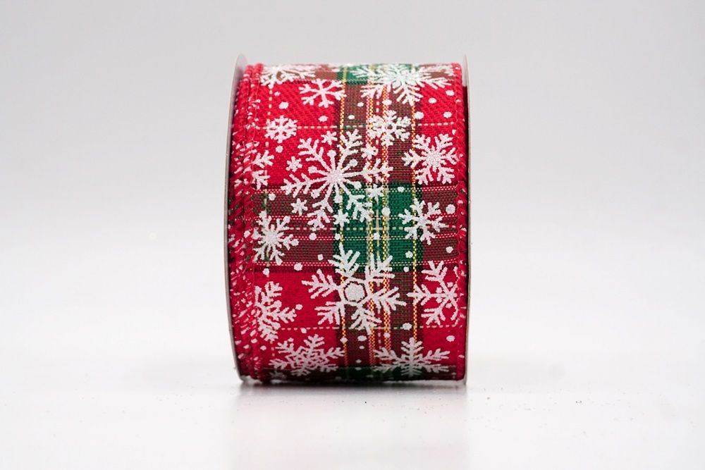 The design of this ribbon is all about celebrating the beauty of winter and Christmas. It features an abundance of delicate snowflakes, often appearing "frosted" with glitter or a textured look that shimmers in the light. In some variations, you might even find the snowflakes printed on a lovely plaid or check pattern, adding an extra layer of warmth and coziness. This ribbon is truly ideal for transforming your home into a winter wonderland. Imagine it woven through your Christmas tree, with the sparkling snowflakes catching the lights, or crafting a breathtaking wreath that evokes the serene beauty of a snowy day. It's also perfect for adding a touch of festive sparkle to gift wrapping, creating elegant bows for presents, or accenting garlands, stair railings, and fireplace mantels. The Snowflake Sparkle Wired Ribbon brings a sense of magic and elegance to any holiday display, making it a beloved choice for creating memorable and beautiful Christmas decorations.