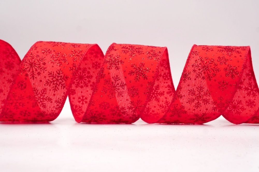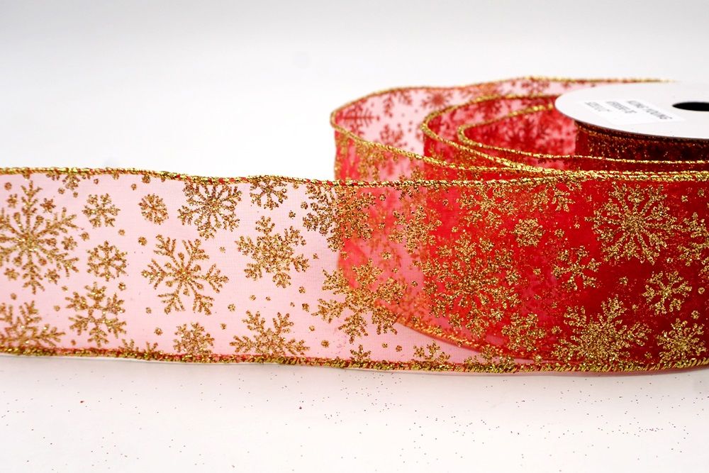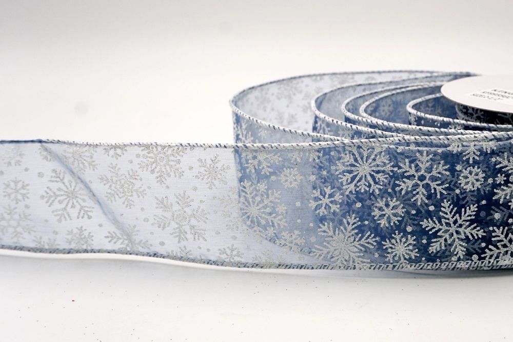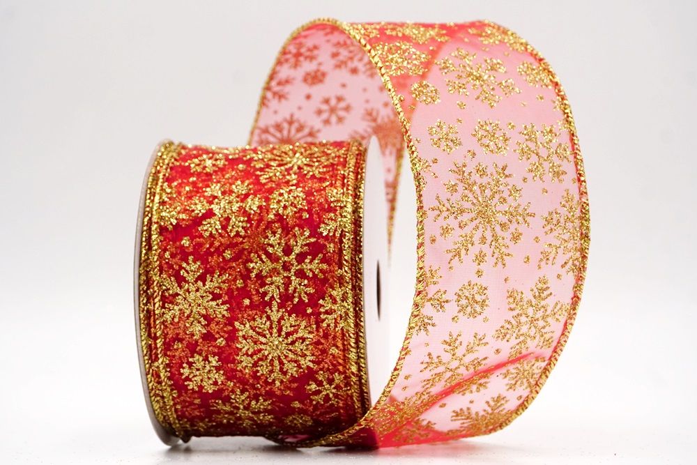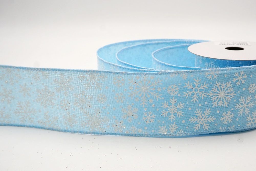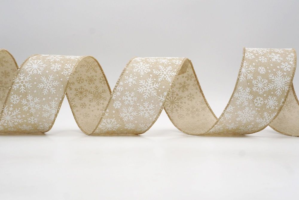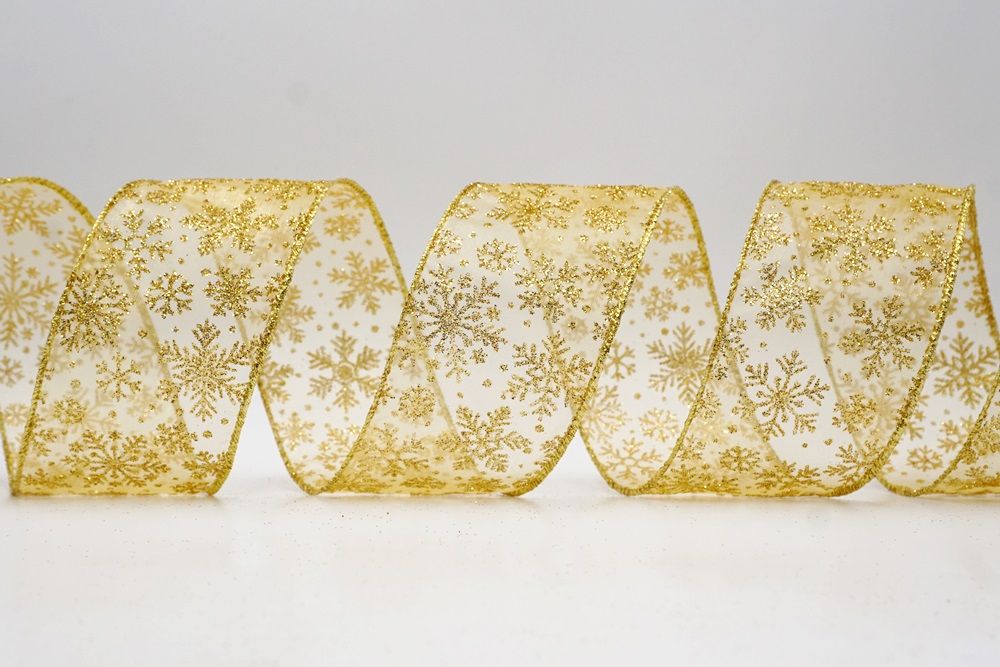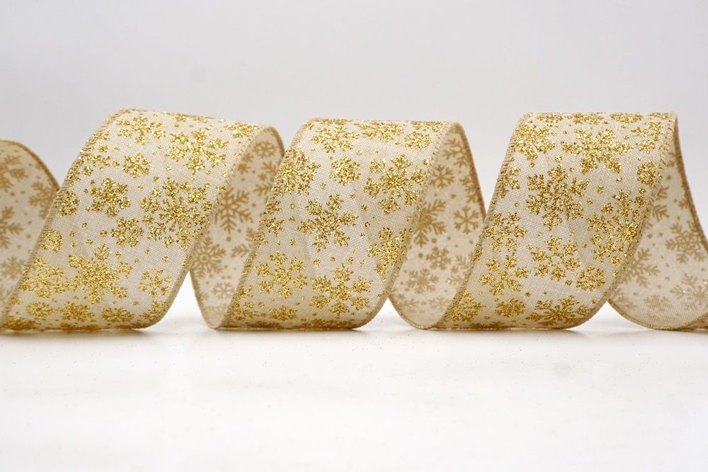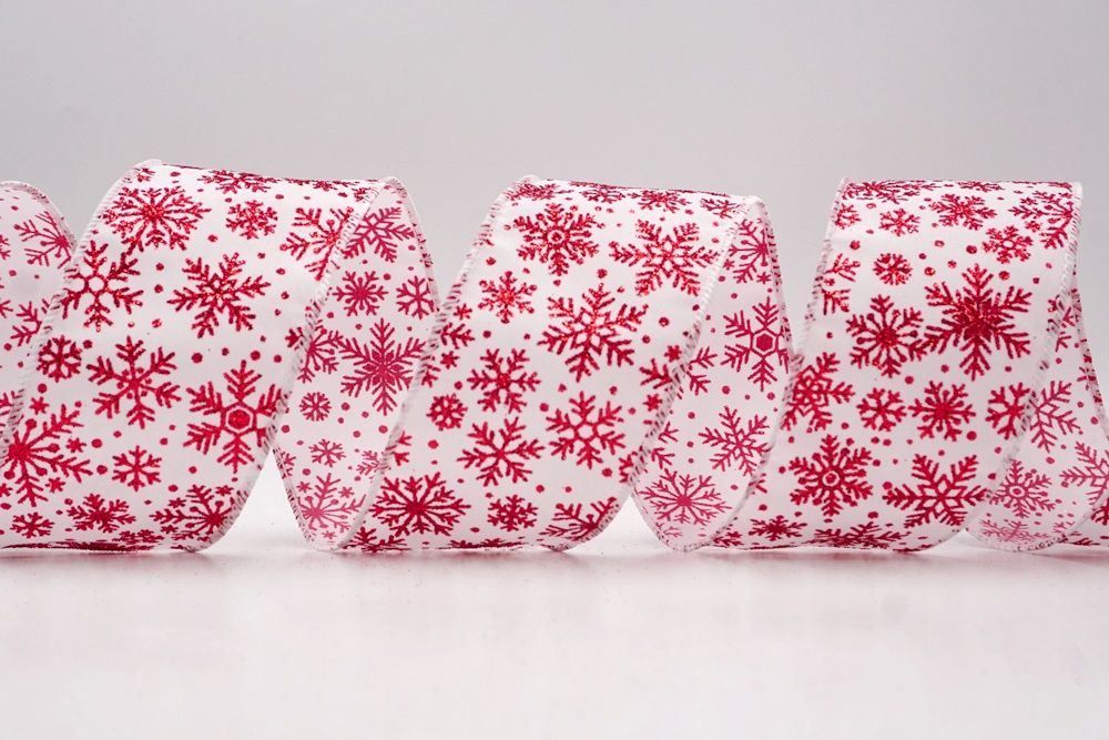 The design of this ribbon is all about celebrating the beauty of winter and Christmas. It features an abundance of delicate snowflakes, often appearing "frosted" with glitter or a textured look that shimmers in the light. In some variations, you might even find the snowflakes printed on a lovely plaid or check pattern, adding an extra layer of warmth and coziness. This ribbon is truly ideal for transforming your home into a winter wonderland. Imagine it woven through your Christmas tree, with the sparkling snowflakes catching the lights, or crafting a breathtaking wreath that evokes the serene beauty of a snowy day. It's also perfect for adding a touch of festive sparkle to gift wrapping, creating elegant bows for presents, or accenting garlands, stair railings, and fireplace mantels. The Snowflake Sparkle Wired Ribbon brings a sense of magic and elegance to any holiday display, making it a beloved choice for creating memorable and beautiful Christmas decorations.