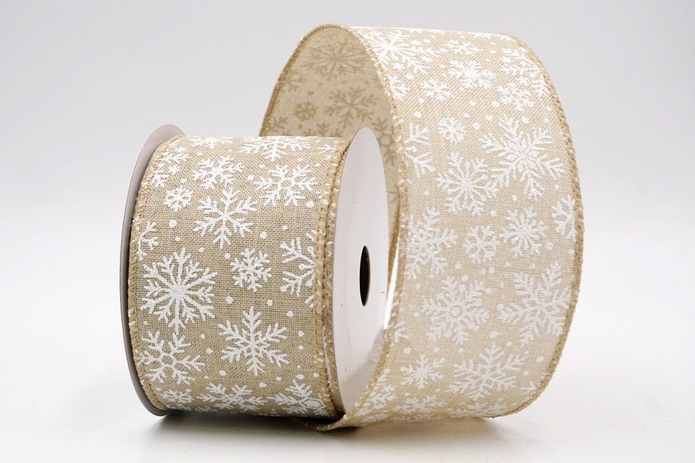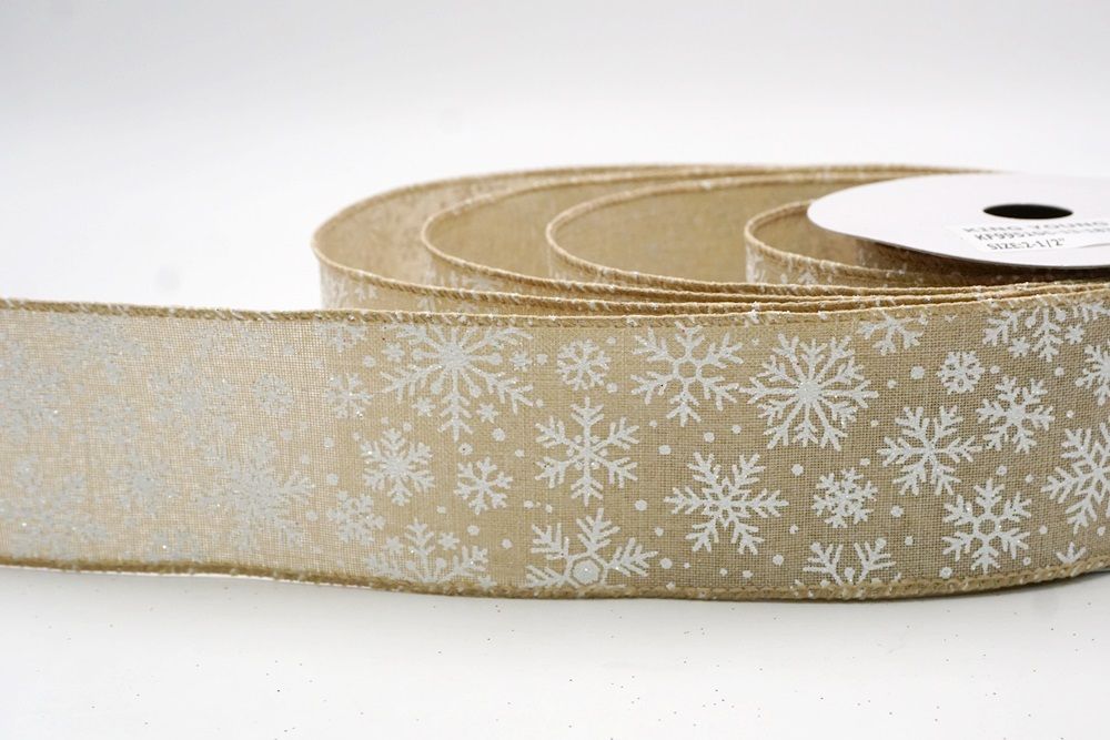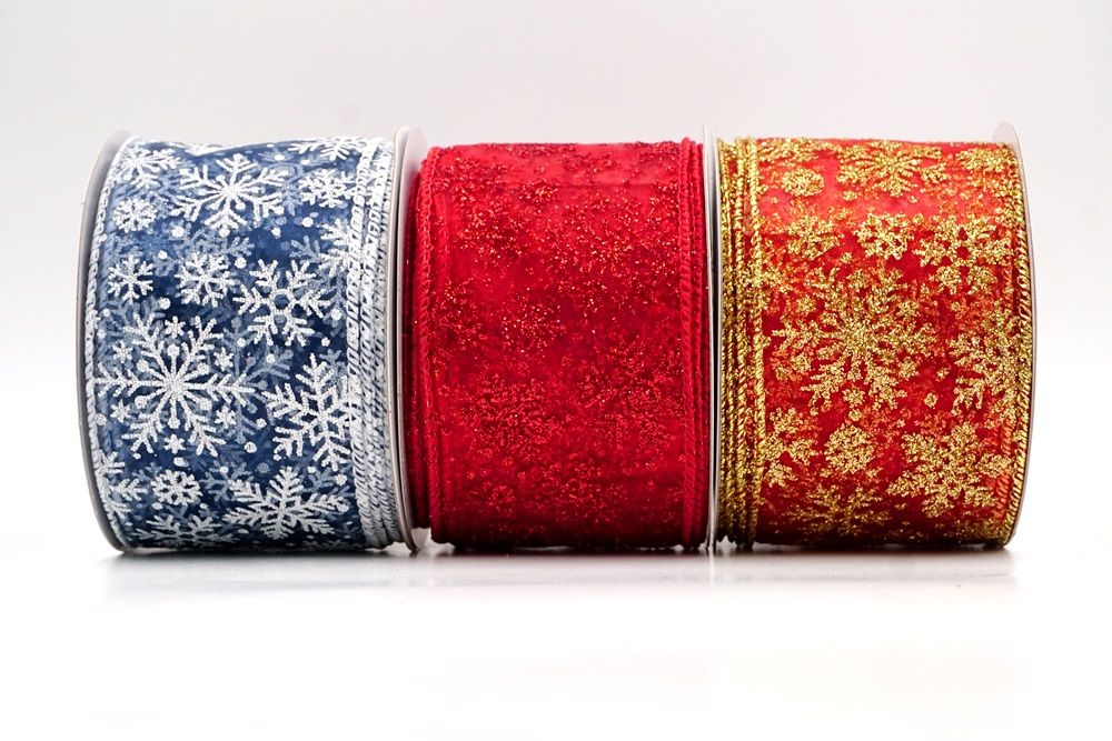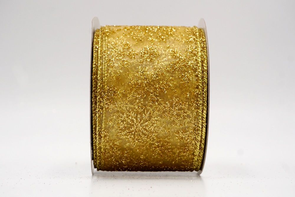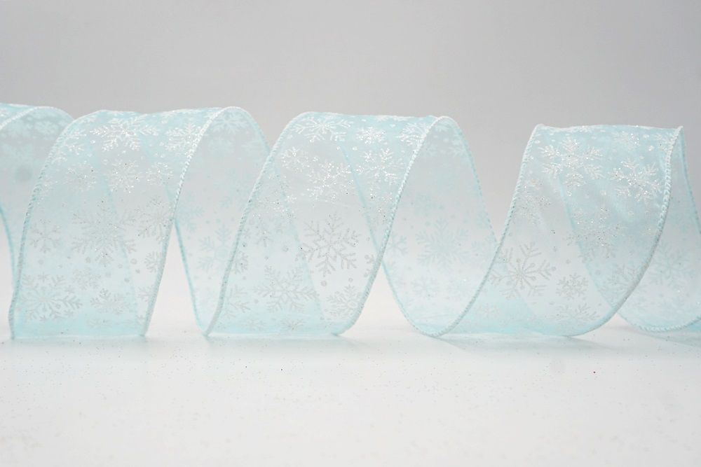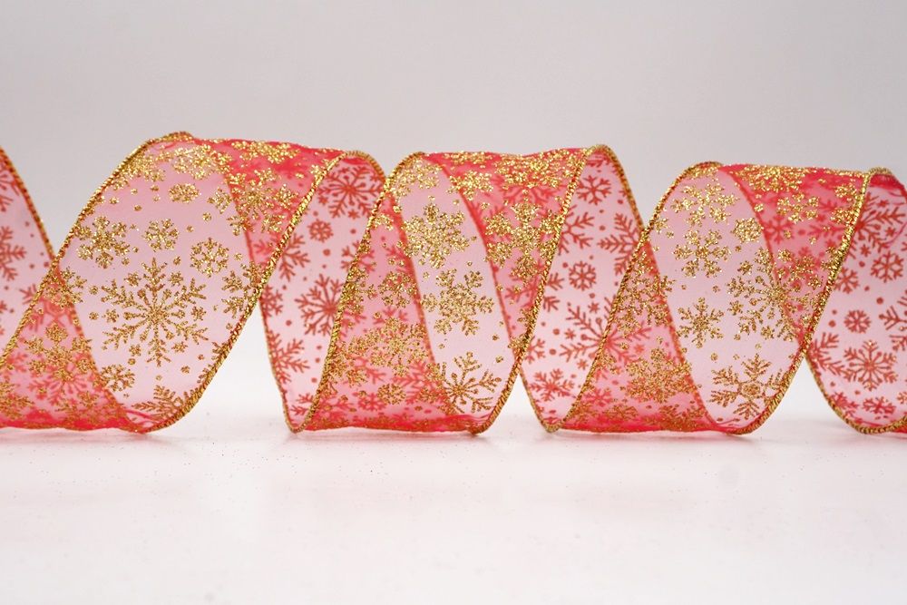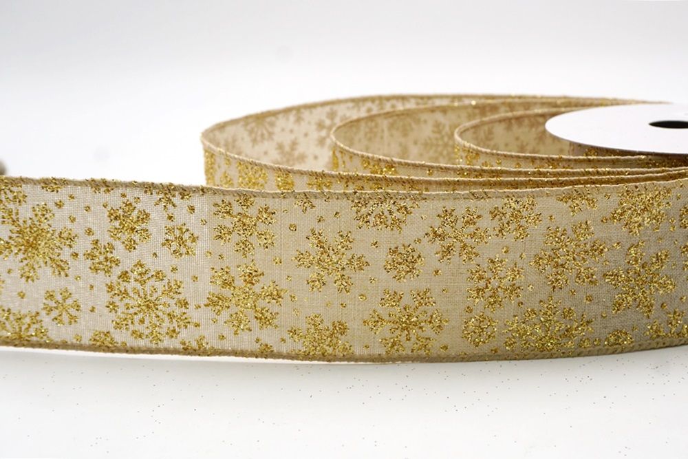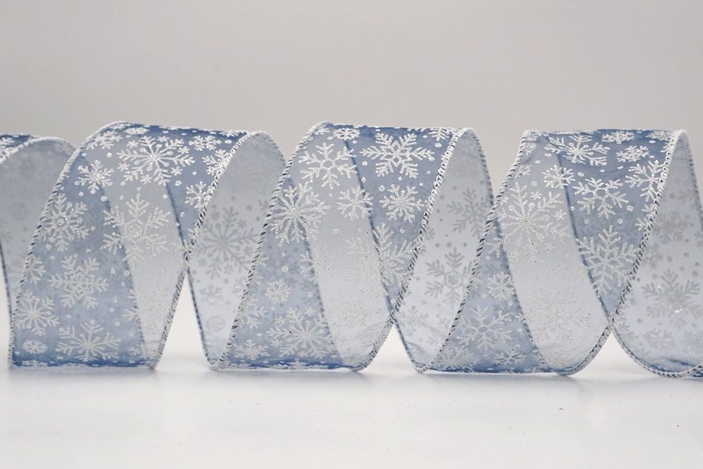 The design of this ribbon is all about celebrating the beauty of winter and Christmas. It features an abundance of delicate snowflakes, often appearing "frosted" with glitter or a textured look that shimmers in the light. In some variations, you might even find the snowflakes printed on a lovely plaid or check pattern, adding an extra layer of warmth and coziness. This ribbon is truly ideal for transforming your home into a winter wonderland. Imagine it woven through your Christmas tree, with the sparkling snowflakes catching the lights, or crafting a breathtaking wreath that evokes the serene beauty of a snowy day. It's also perfect for adding a touch of festive sparkle to gift wrapping, creating elegant bows for presents, or accenting garlands, stair railings, and fireplace mantels. The Snowflake Sparkle Wired Ribbon brings a sense of magic and elegance to any holiday display, making it a beloved choice for creating memorable and beautiful Christmas decorations.