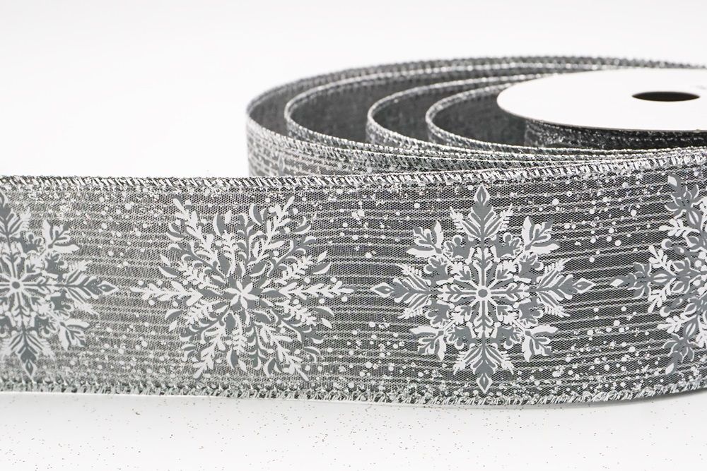 Add shimmering winter magic to your holiday decorating with this sparkling snowflake metallic wired ribbon, designed to elevate Christmas themes with bold shine.