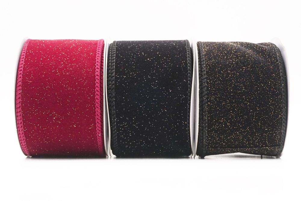 Sparkling Solid Color Glitter Wired Ribbon_KF9785