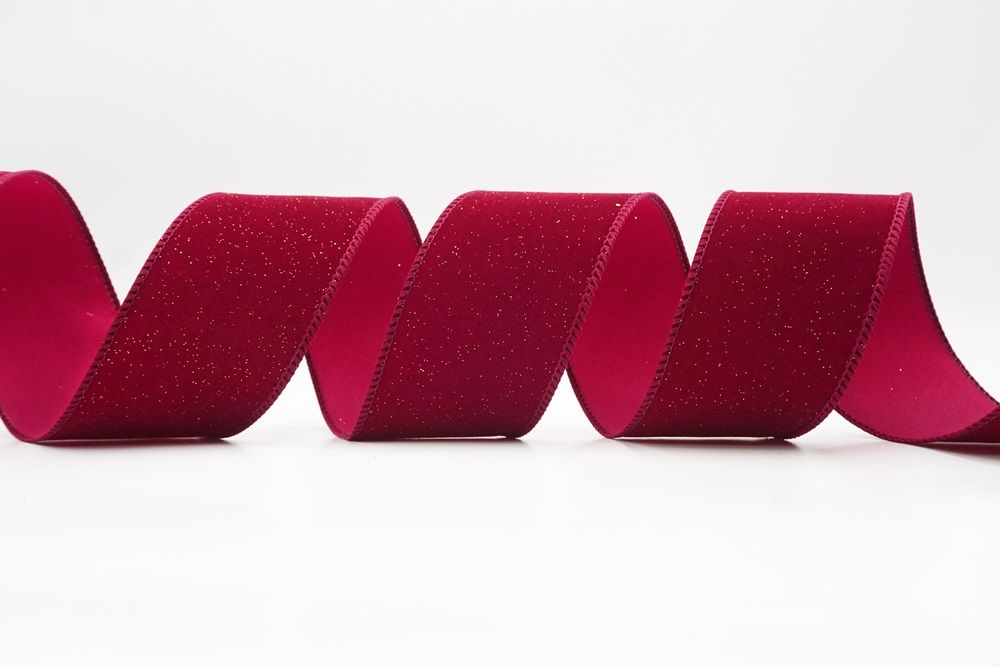 Crafted from soft velvet fabric and sized 1 1/2" to 2 1/2" (38mm-68mm), it holds shape beautifully for bows, floral arrangements, and gift wraps. Its shimmering finish ensures your creations catch every eye, making each project unforgettable.