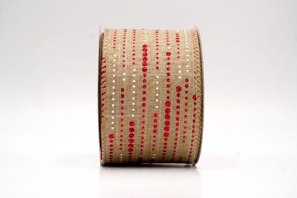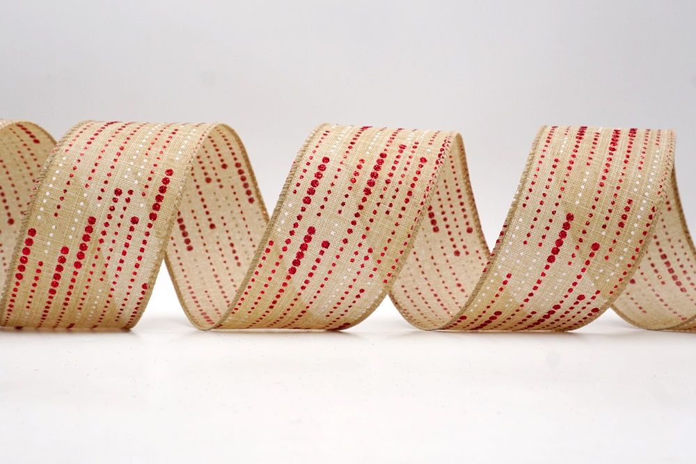 Incorporate the Stripe Dot Pattern Wired Ribbon into your Christmas decorations to infuse them with a joyful and contemporary spirit. Consider adorning a traditional evergreen wreath with bows crafted from the red plain weave ribbon, its white dot stripes mimicking festive candy canes or scattered berries. The khaki faux burlap ribbon, with its red dot pattern, would be ideal for adding a touch of country charm to your gift wrapping, making each present feel uniquely special. This ribbon is exceptionally suited for a multitude of holiday applications, from creating custom tree decorations and festive garlands to embellishing centerpieces and mantel displays. The whimsical dot patterns, particularly when accented with glitter, evoke a sense of festive cheer and childlike wonder, perfectly aligning with the magic of the Christmas season. Whether you are aiming for a traditional holiday look or a more modern and playful aesthetic, this ribbon provides the perfect balance of visual interest and structural integrity. It's an excellent choice for anyone looking to add a distinctive and memorable touch to their holiday crafting and decorating efforts, ensuring your festive creations stand out with undeniable charm.