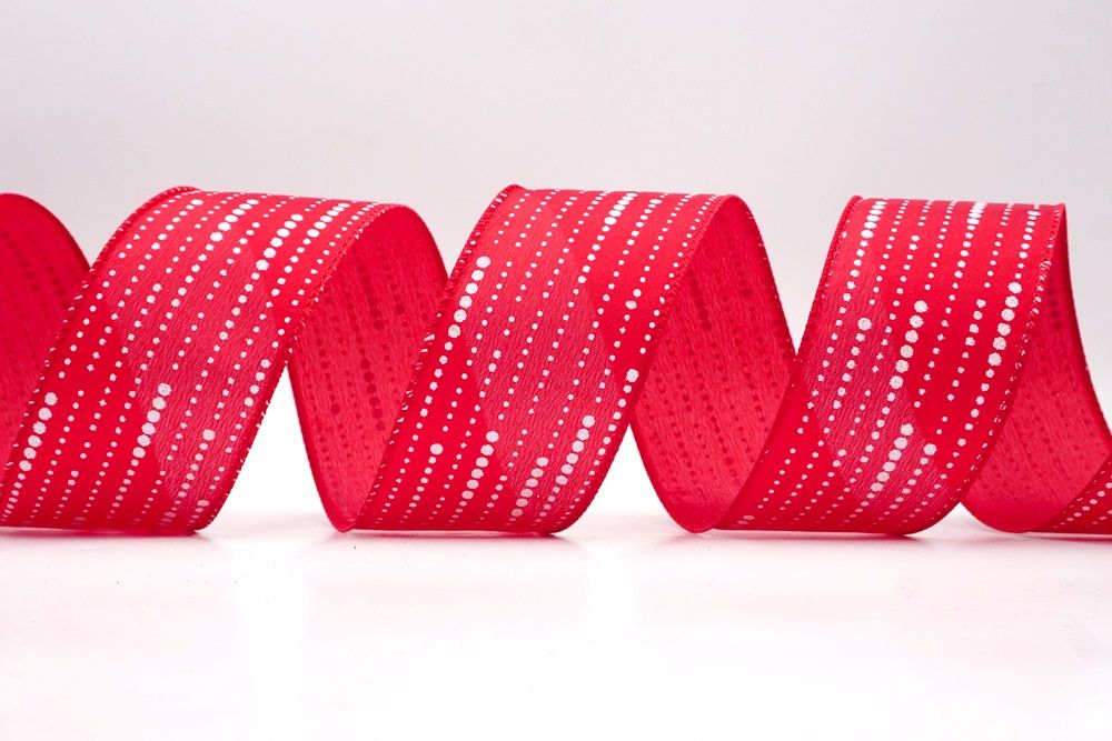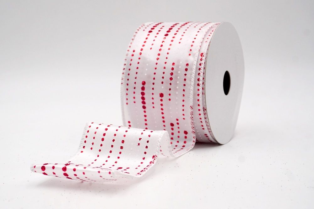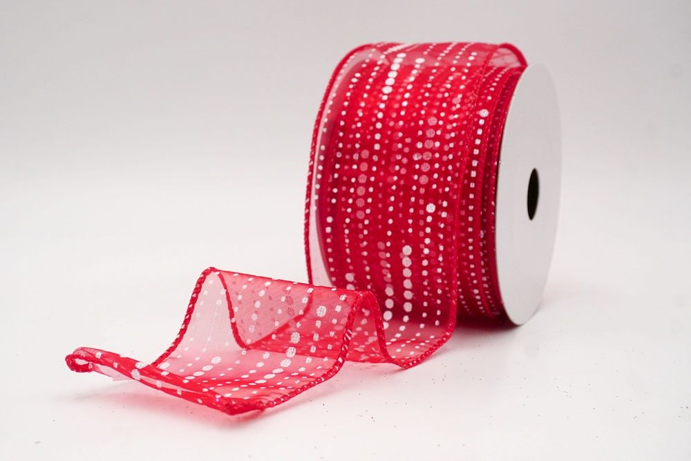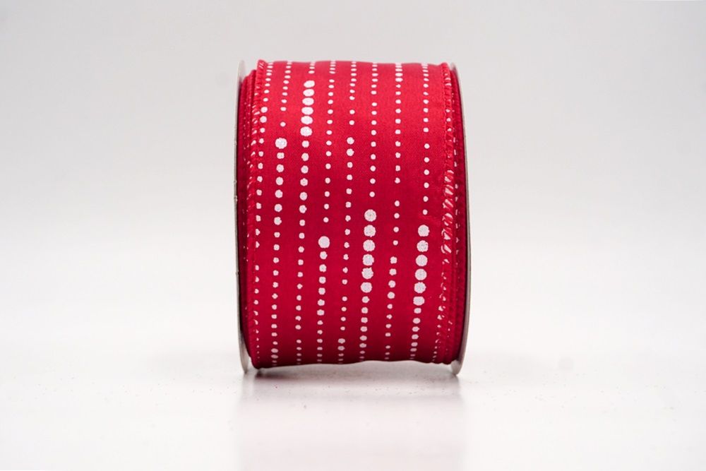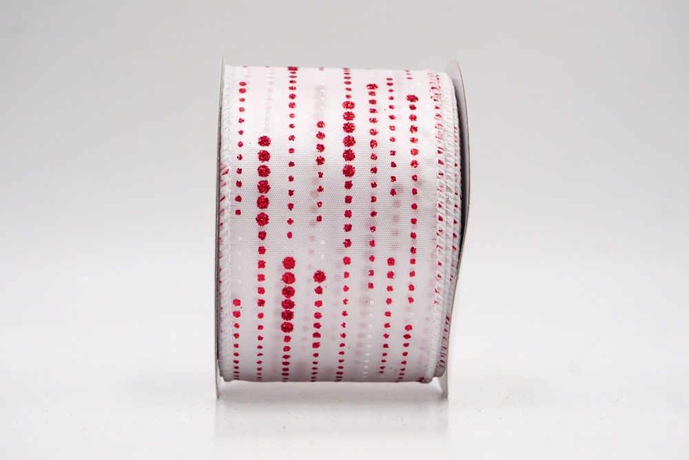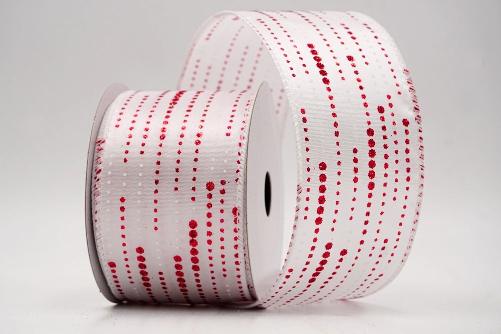 The Stripe Dot Pattern Wired Ribbon collection offers a playful yet sophisticated touch for your holiday and crafting endeavors, bringing a whimsical charm to any project. This versatile ribbon comes in a range of delightful fabrics and colors to suit various aesthetic preferences. For a rustic, natural feel, you can choose the faux burlap fabric in a warm khaki, providing an excellent base for its vibrant dot pattern. Should you desire a more delicate and airy presentation, a sheer fabric in a festive red is available, allowing a subtle translucency to enhance its design. Additionally, a smooth plain weave fabric is offered in classic holiday hues such as cheerful red, crisp white, bold black, elegant cream, and deep navy blue. These options ensure you can find the perfect color to complement your existing decor or inspire new creative visions. With available widths from 1 inch to 2.5 inches, and potentially more sizes to meet specific demands, this ribbon provides flexibility for projects of all scales. The design features vertical stripes composed of varying sizes of dots, some shimmering with glitter, creating a dynamic and enchanting visual effect that evokes falling snow or twinkling lights. The inclusion of wired edges is a practical benefit, allowing for easy shaping and long-lasting form, perfect for elaborate bows and decorative accents that maintain their structure.