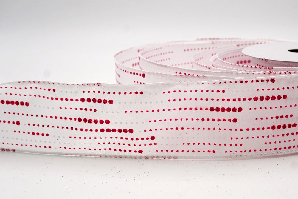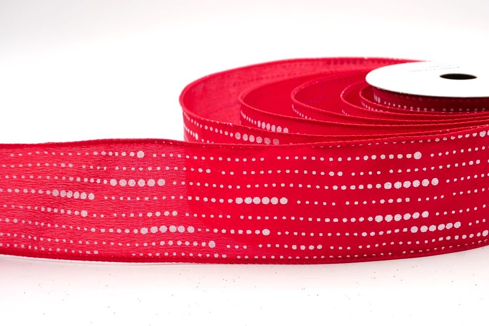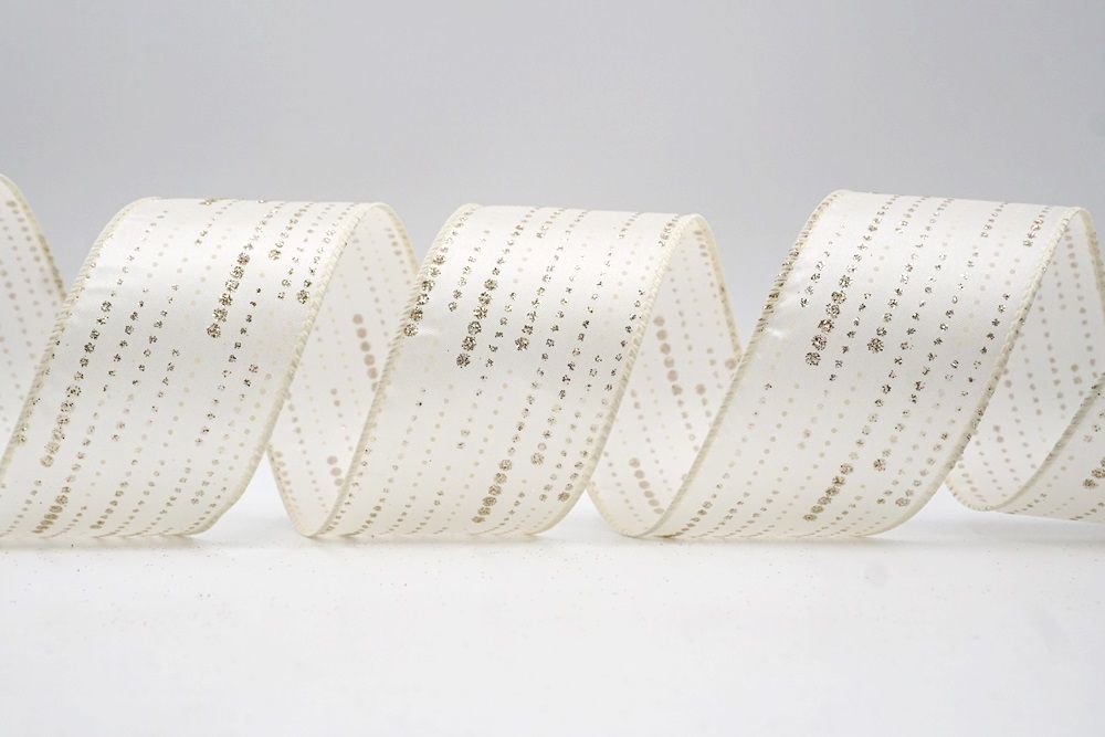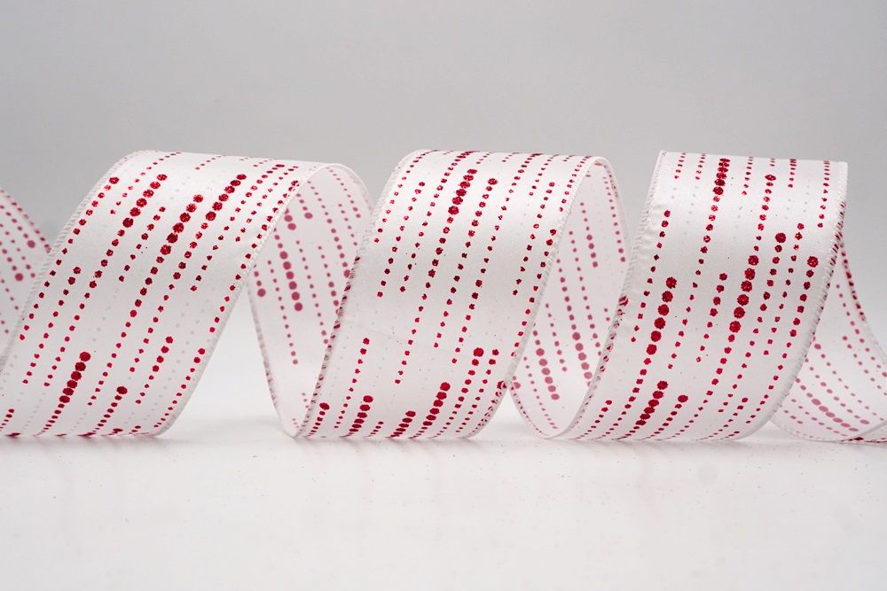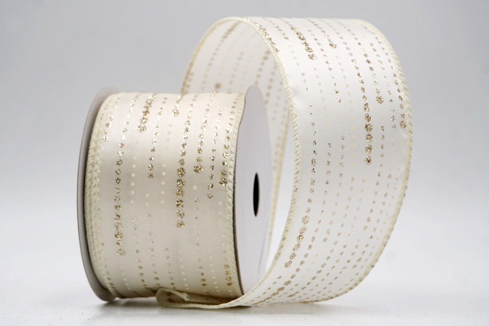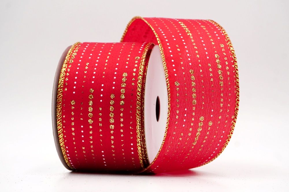 The Stripe Dot Pattern Wired Ribbon collection offers a playful yet sophisticated touch for your holiday and crafting endeavors, bringing a whimsical charm to any project. This versatile ribbon comes in a range of delightful fabrics and colors to suit various aesthetic preferences. For a rustic, natural feel, you can choose the faux burlap fabric in a warm khaki, providing an excellent base for its vibrant dot pattern. Should you desire a more delicate and airy presentation, a sheer fabric in a festive red is available, allowing a subtle translucency to enhance its design. Additionally, a smooth plain weave fabric is offered in classic holiday hues such as cheerful red, crisp white, bold black, elegant cream, and deep navy blue. These options ensure you can find the perfect color to complement your existing decor or inspire new creative visions. With available widths from 1 inch to 2.5 inches, and potentially more sizes to meet specific demands, this ribbon provides flexibility for projects of all scales. The design features vertical stripes composed of varying sizes of dots, some shimmering with glitter, creating a dynamic and enchanting visual effect that evokes falling snow or twinkling lights. The inclusion of wired edges is a practical benefit, allowing for easy shaping and long-lasting form, perfect for elaborate bows and decorative accents that maintain their structure.