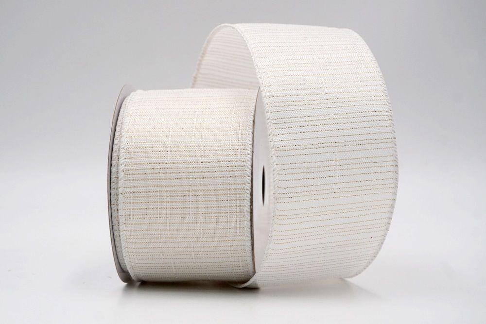Add a touch of elegance to your holiday projects with the White Metallic Stripe Wired Ribbon, a timeless design that complements both classic and modern Christmas décor. Crafted from faux burlap in crisp white, this ribbon is enhanced with subtle metallic stripes that catch the light beautifully, giving it a refined yet festive shimmer. Available in a range of widths from 1 inch up to 2.5 inches and more, it can be tailored to your decorating needs. The wired edges make it easy to shape into neat bows or layered accents, holding its form securely whether used on wreaths, garlands, or Christmas trees. Its simple yet sophisticated style makes it versatile enough to be a standalone feature or paired with patterned ribbons for added depth.