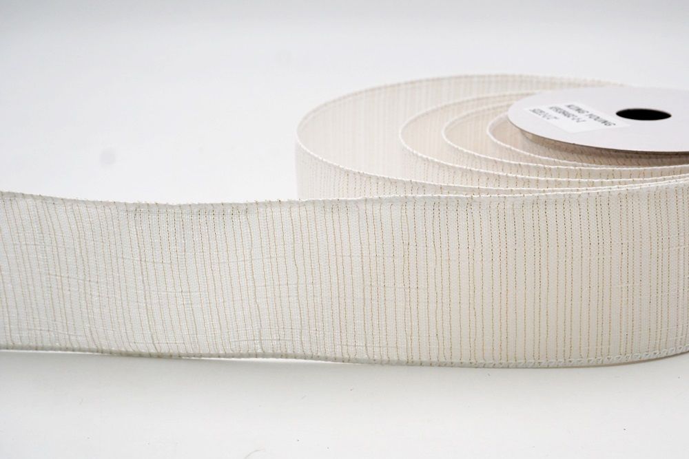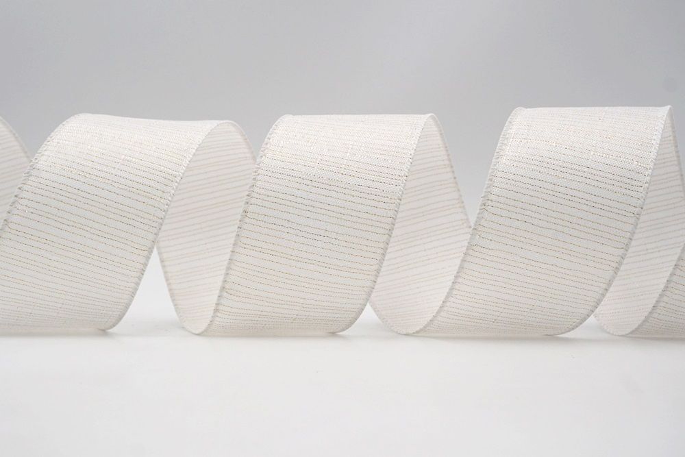White Metallic Stripe Wired Ribbon provides the perfect finishing touch to any festive arrangement.