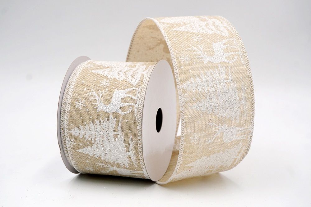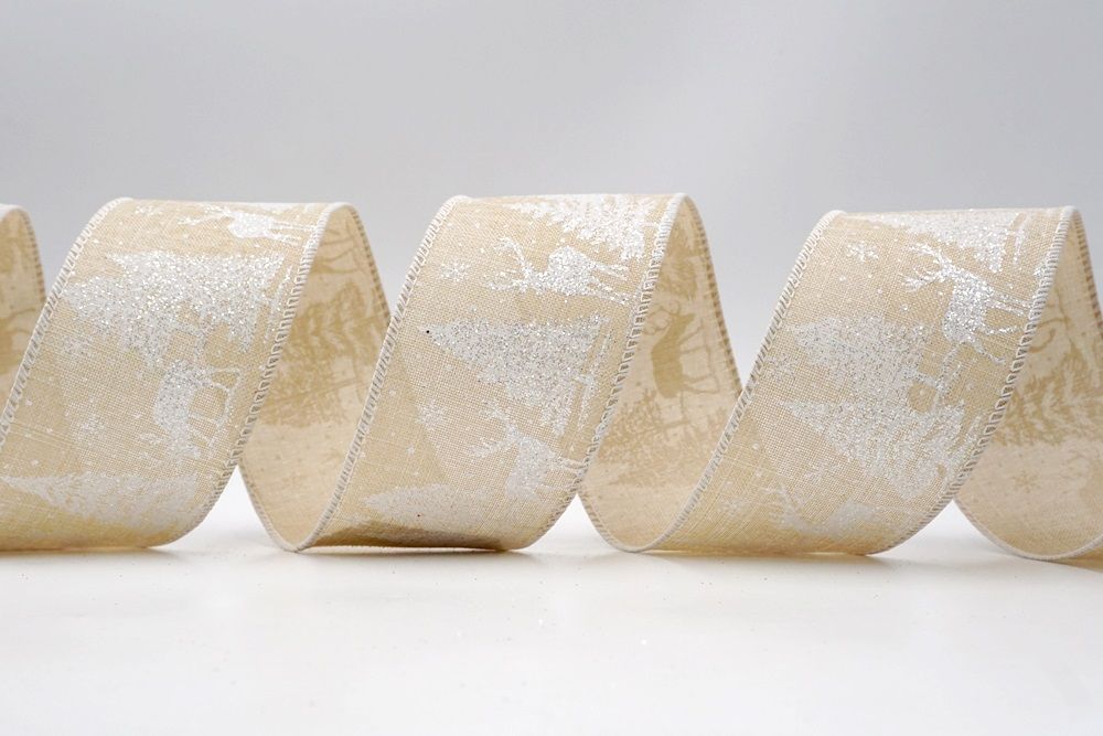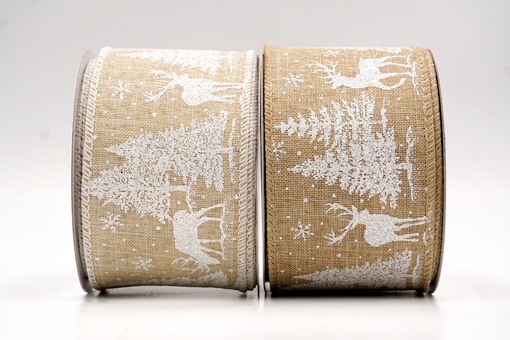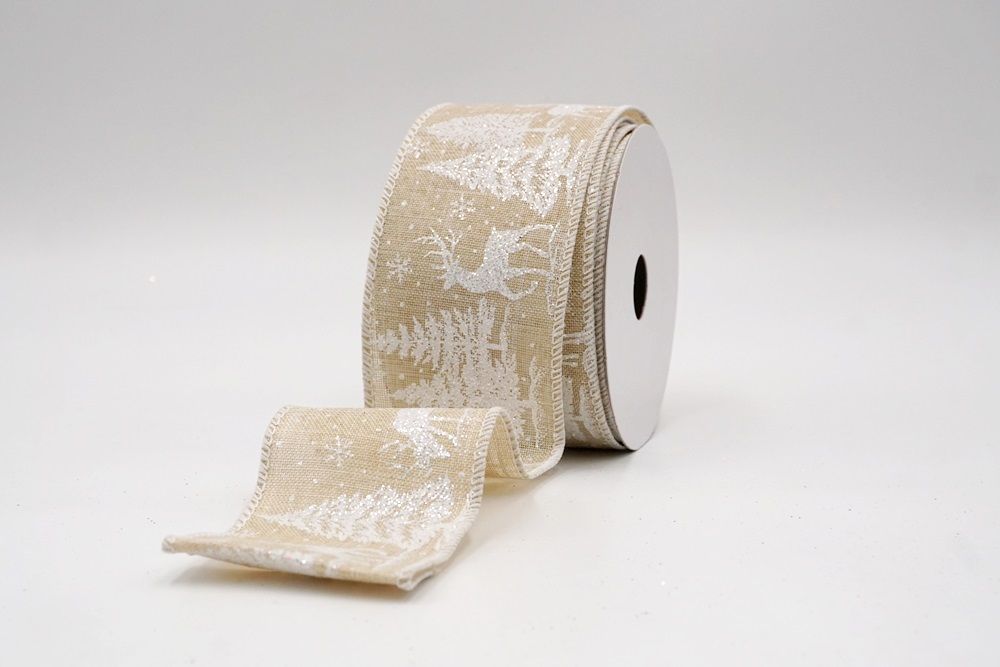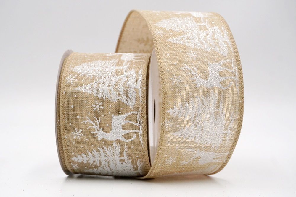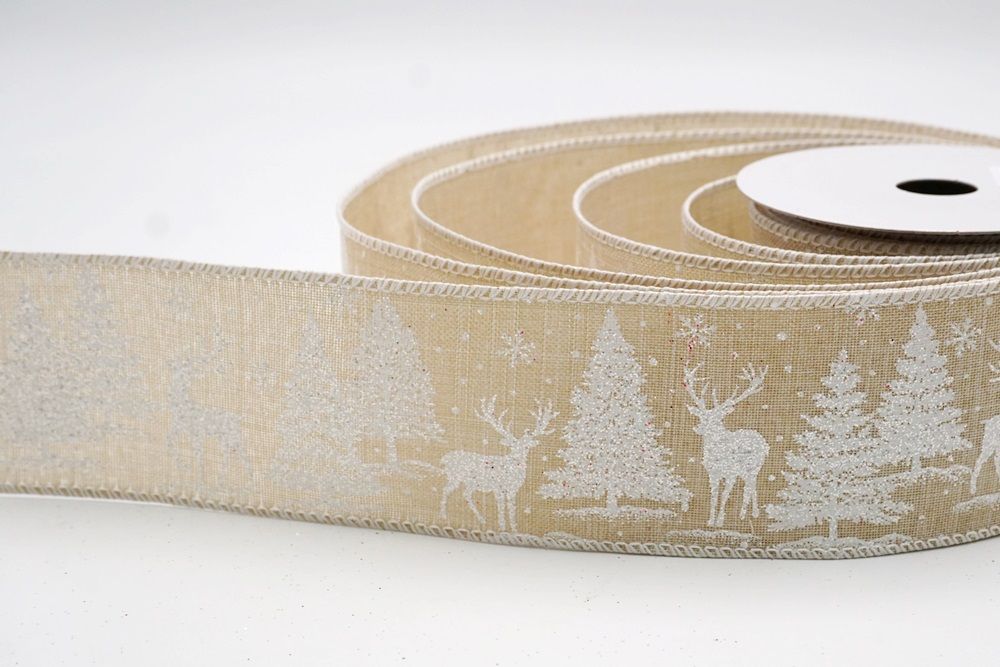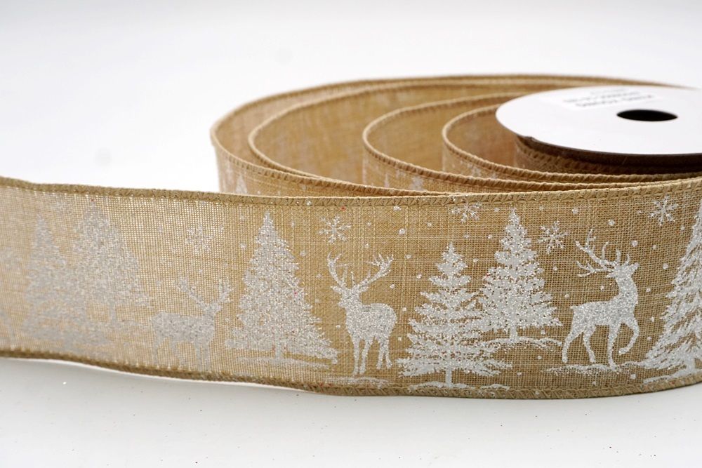 La encantadora cinta de alambre de ciervo festivo y árboles de pino es una elección cautivadora que encarna perfectamente la belleza serena y el encanto rústico de una Navidad en un país de las maravillas invernal. Esta cinta presenta un diseño idílico que muestra ciervos majestuosos en medio de un bosque de pinos cubiertos de nieve, evocando instantáneamente la imagen pacífica de una escena de bosque nevado. El motivo está bellamente detallado, a menudo resaltado con un toque de brillo o hilo metálico que imita la nieve brillante y añade un destello mágico, realzando el atractivo festivo. Disponible tanto en el acabado suave de tejido liso como en la calidez texturizada del yute sintético, ofrece opciones estéticas versátiles para complementar una variedad de estilos de decoración navideña. La paleta de colores, que incluye azul sereno, rojo clásico, gris sofisticado, caqui terrenal y tonos naturales, permite una integración perfecta en varios temas navideños, desde los tradicionales hasta los inspirados en el bosque. El borde cableado es una característica crucial, que proporciona una flexibilidad excepcional y retención de forma, permitiéndote crear lazos elaborados y elementos decorativos que mantienen su forma a la perfección. Imagina esta cinta elegantemente envuelta alrededor de un regalo, transformándolo en un paquete pintoresco, o tejida en una corona festiva, trayendo la tranquilidad de un bosque invernal a tu puerta. Con un ancho estándar de 2.5 pulgadas, esta cinta es perfectamente adecuada para crear exhibiciones impactantes y visualmente impresionantes, desde decoraciones a gran escala hasta encantadores acentos más pequeños.