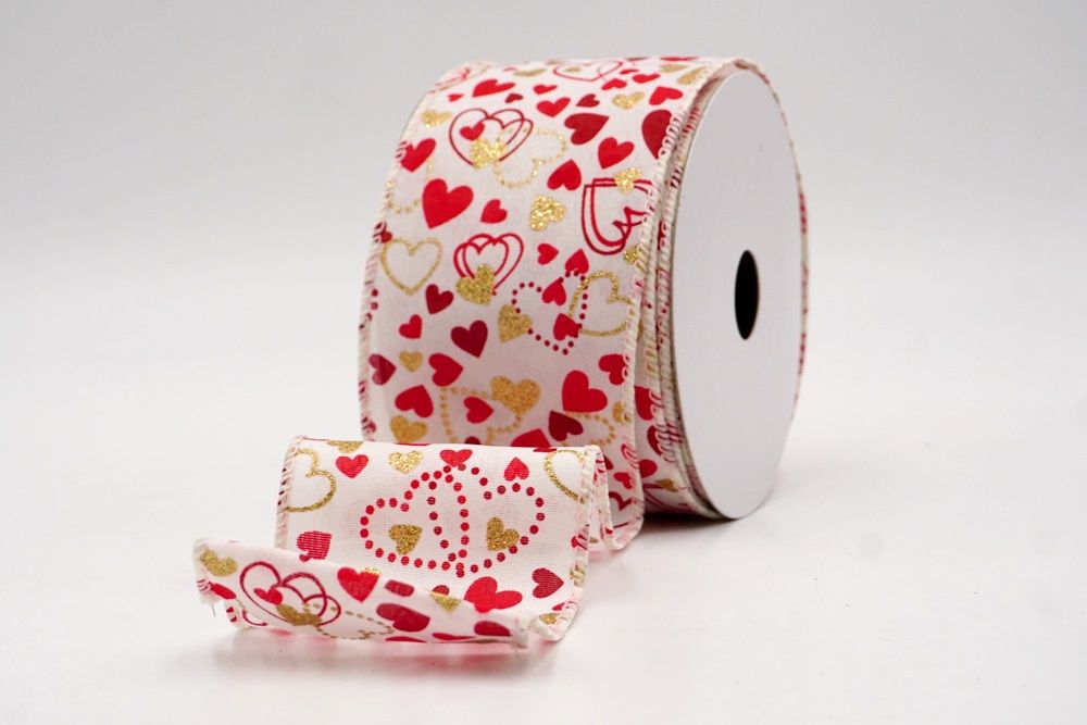 Celebra la temporada del amor con la encantadora Colección de Cintas de Corazón de San Valentín. Esta encantadora selección presenta 9 colores cautivadores, desde el clásico blanco crema y rosa claro hasta el audaz rojo adornado con corazones dorados y blancos, e incluso un toque de elegancia con cintas negras acentuadas por corazones dorados y blancos. Cada opción de color está disponible en dos anchos, 1 ½ pulgadas (38 mm) y 2 ½ pulgadas (68 mm), atendiendo a diversas necesidades decorativas.