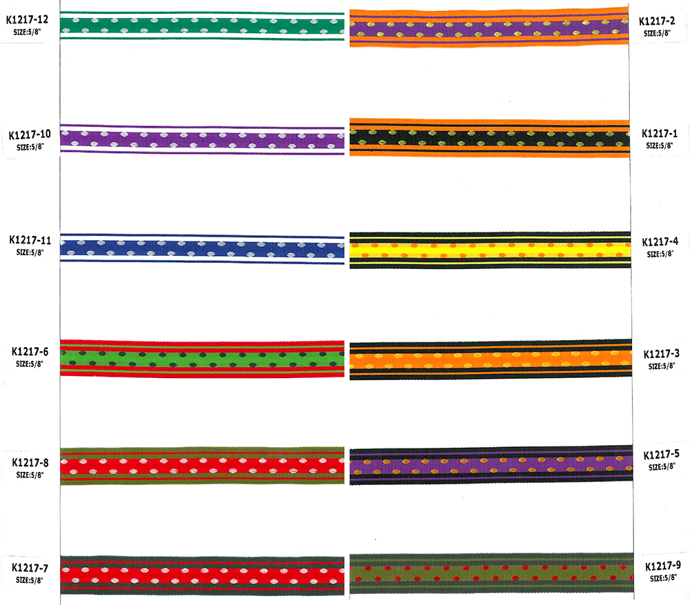 Esta divertida cinta de 5/8 de pulgada tiene rayas y puntos tejidos en tres colores diferentes. Añade más diversión a tus envoltorios o trabajos con esta cinta. Está disponible en una variedad de colores. También podemos hacer colores personalizados. Ideal para proyectos de manualidades, lazos y envoltorios de regalo.
