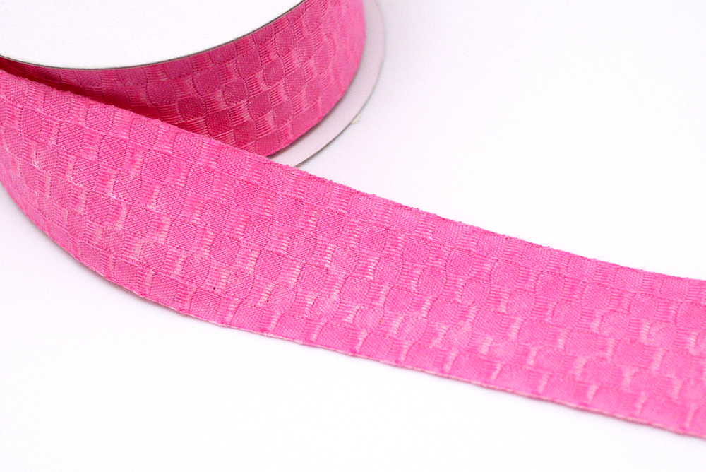 Esta cinta presenta rayas tejidas blancas en el centro. El diseño es bastante simple, pero hace que toda la cinta se vea más interesante. La base de la cinta clara también ayuda a crear un aspecto vibrante. Actualmente, la serie está disponible en rosa, rojo, azul marino, verde manzana y verde bosque, pero estamos abiertos a colores personalizados.