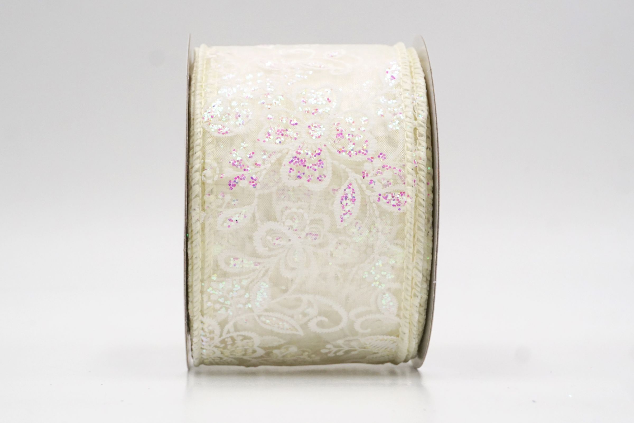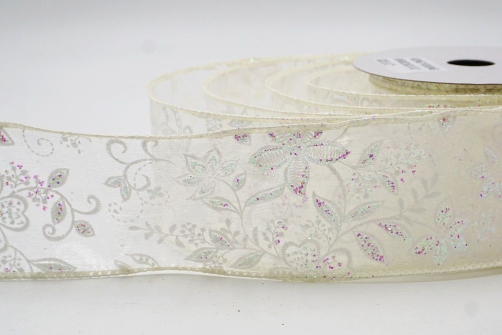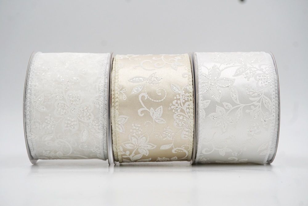 Esta colección está disponible en 7 hermosas opciones de color: Crema, Rosa, Púrpura, Azul Claro, Blanco, Satén Blanco y Satén Crema. Diseñada en tamaños de 1 1/2" a 2 1/2" (38mm–68mm), ofrece versatilidad para lazos, coronas, centros de mesa y empaques de lujo. La combinación de tela de satén transparente y de tejido liso proporciona un brillo delicado mientras mantiene la estructura y la forma.