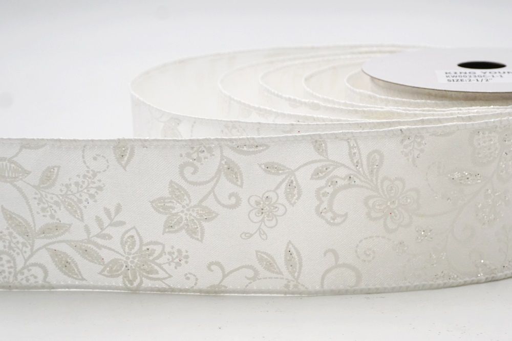 Esta exquisita cinta presenta un encantador patrón de flores moradas y corazones, disponible en dos colores sofisticados: blanco y marrón claro. Con anchos que varían de 1.5 pulgadas (38 mm) a 2.5 pulgadas (65 mm), esta cinta ofrece versatilidad y durabilidad para diversos proyectos de manualidades. Los bordes con alambre aseguran una fácil conformación, lo que facilita la creación de diseños hermosos y duraderos.