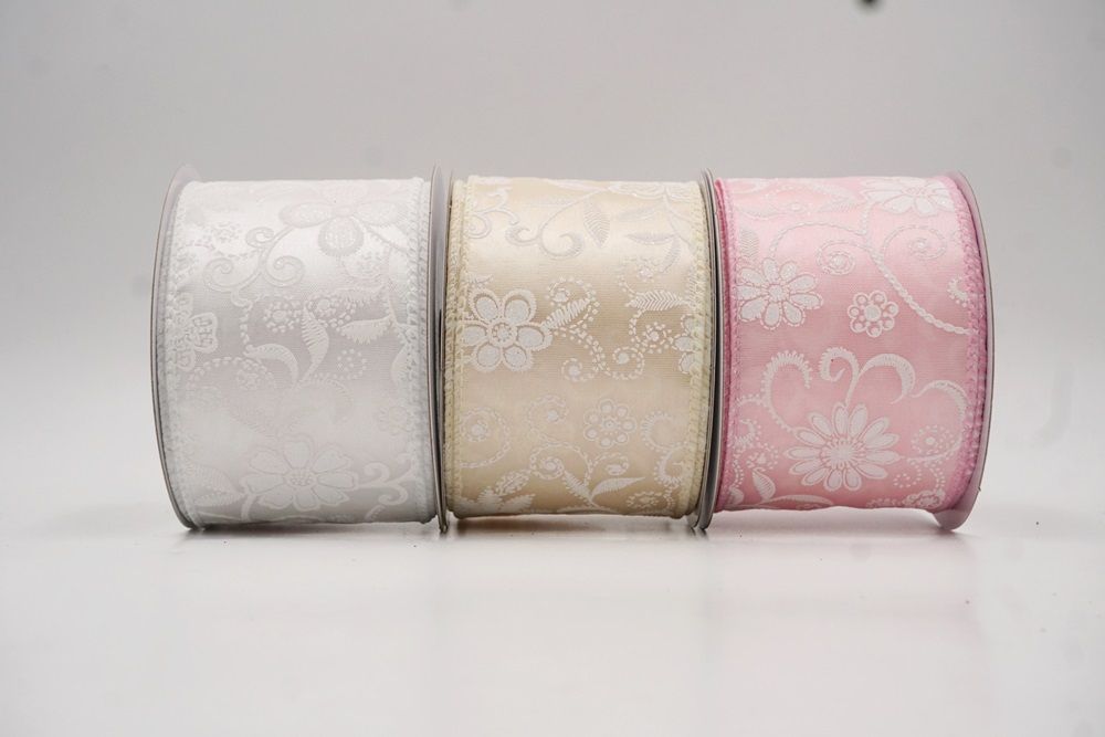 La belleza encantadora de la primavera con nuestra colección de cintas de alambre de flores margarita de primavera, una celebración de la elegancia y frescura de la naturaleza. Meticulosamente elaborados sobre una tela base de yute sintético, estas cintas presentan un encantador diseño de flor de margarita en encantadores tonos de rosa, marrón claro, blanco con flores azules y rosas, y verde. Los bordes cableados añaden un toque de versatilidad, permitiendo una fácil modelación y estilización. Disponibles en tamaños que van desde 1 1/2" (38mm) hasta 2 1/2" (63mm), estas cintas ofrecen un lienzo para la creatividad en diversas aplicaciones.