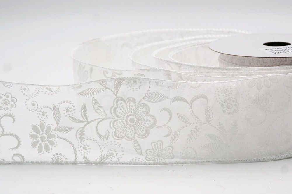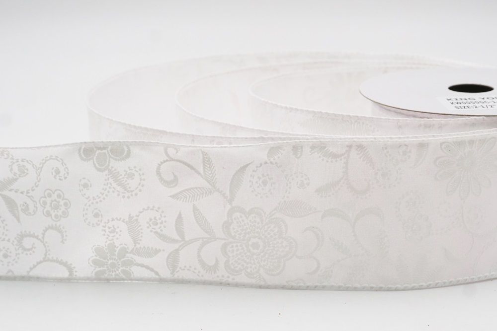 Esta exquisita cinta presenta un encantador patrón de flores moradas y corazones, disponible en dos colores sofisticados: blanco y marrón claro. Con anchos que varían de 1.5 pulgadas (38 mm) a 2.5 pulgadas (65 mm), esta cinta ofrece versatilidad y durabilidad para diversos proyectos de manualidades. Los bordes con alambre aseguran una fácil conformación, lo que facilita la creación de diseños hermosos y duraderos.
