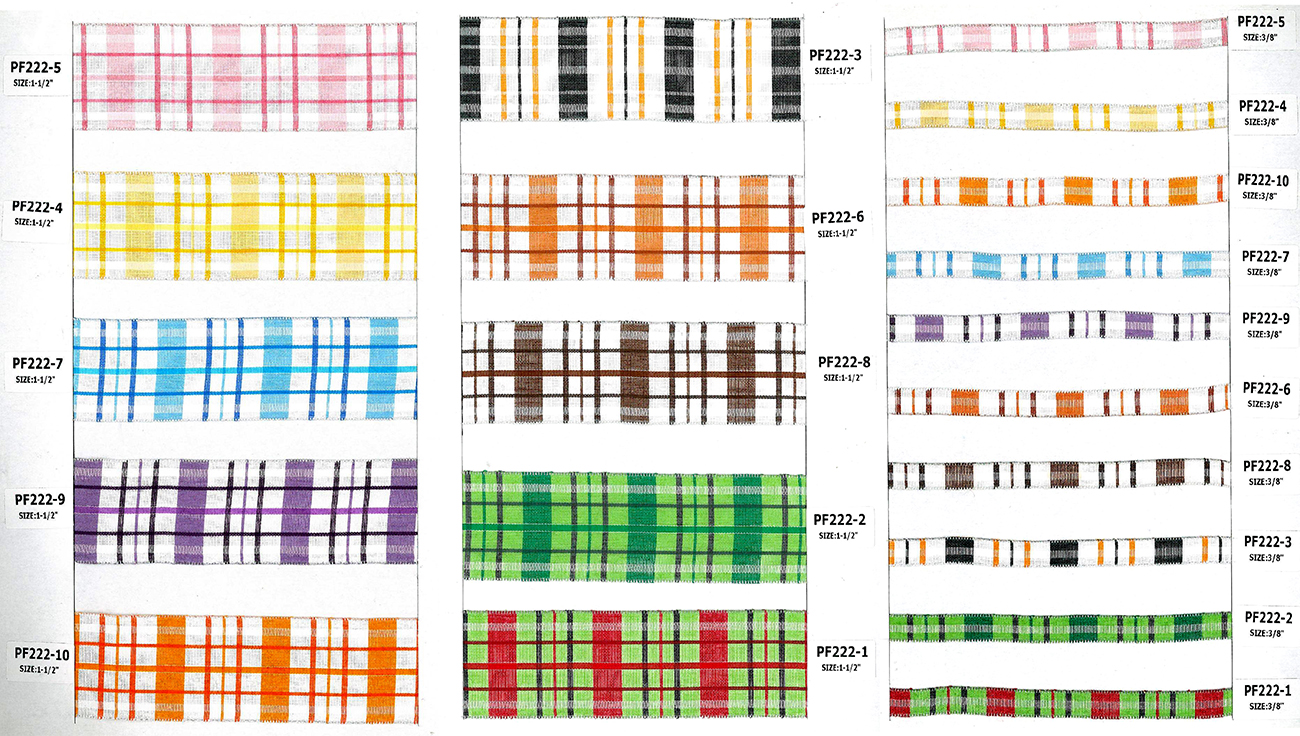 Cinta a cuadros disponible tanto en ancho estrecho de 3/8" como en ancho de 1.5". Excelente para envolver regalos, decoración, manualidades y más.