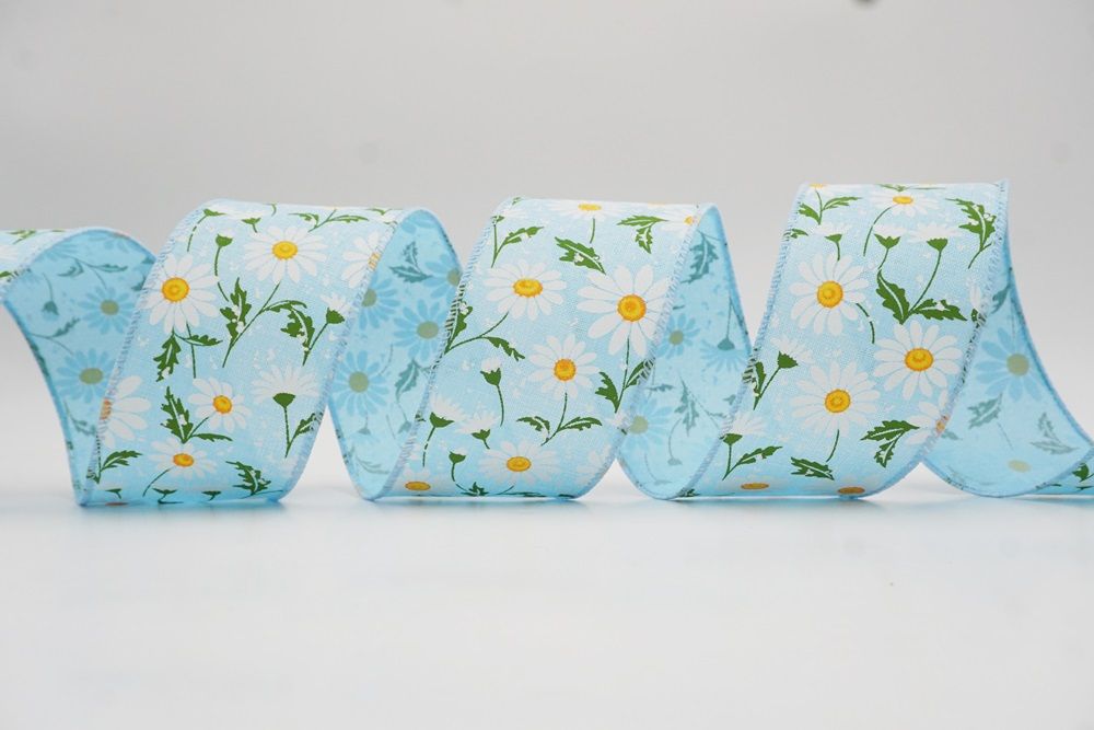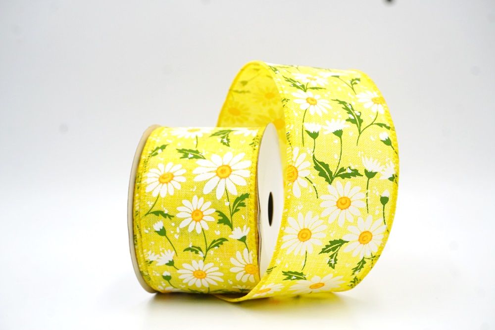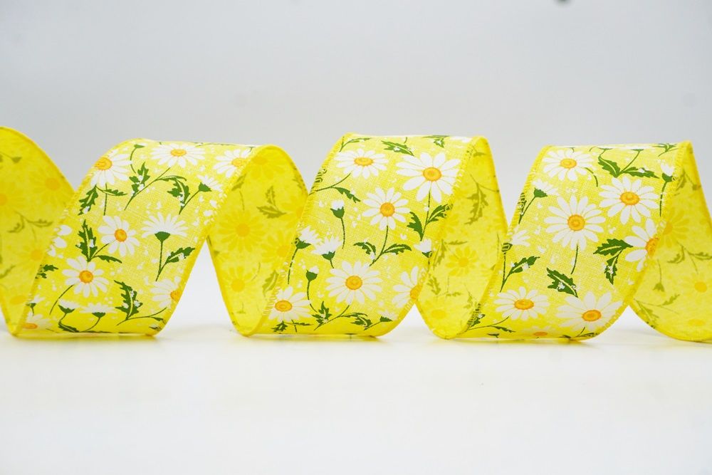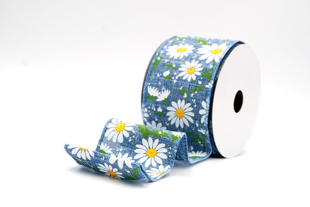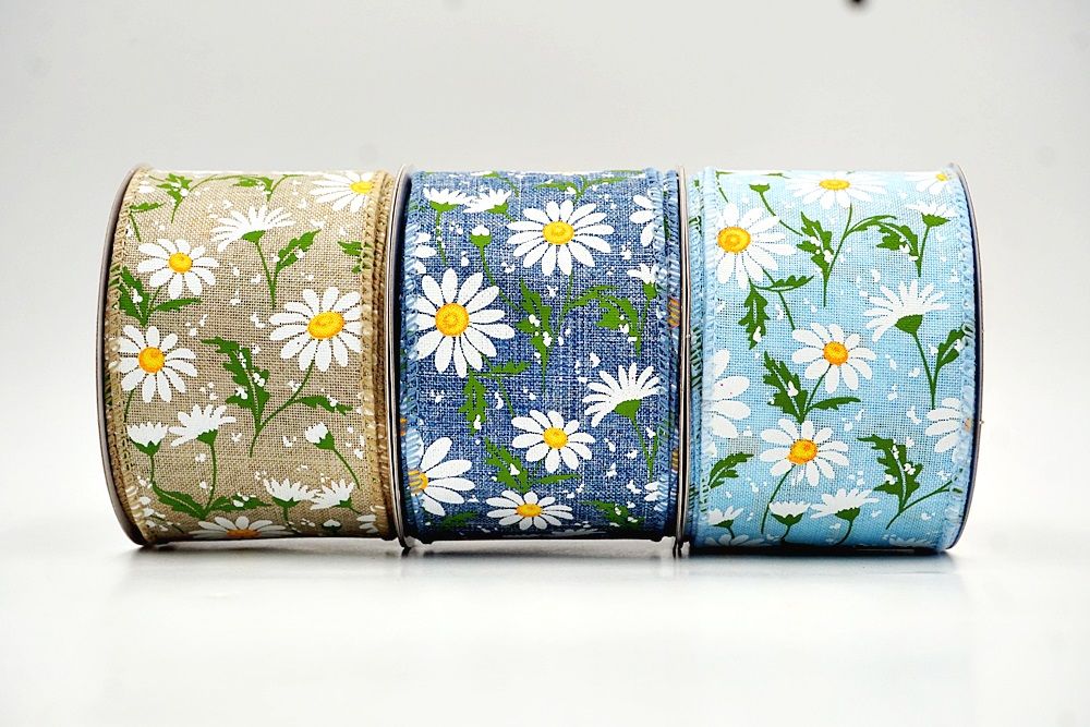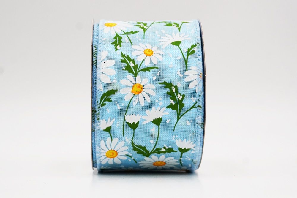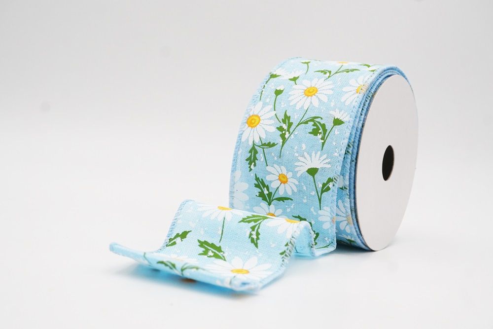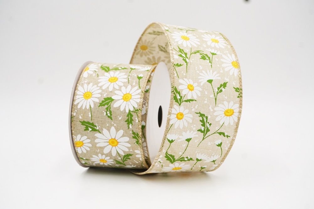 Captura la esencia de la primavera con la cinta de alambre de flor margarita en flor, disponible en tamaños que van desde 1 pulgada hasta 2.5 pulgadas de ancho. Elaborada con yute sintético, esta cinta añade un toque rústico pero encantador a tus creaciones de primavera. Adornado con delicadas flores de margarita en una variedad de vibrantes colores de primavera, incluyendo azul mezclilla, rosa, amarillo, púrpura, azul bebé y verde claro, este lazo irradia la frescura y vitalidad de la temporada.