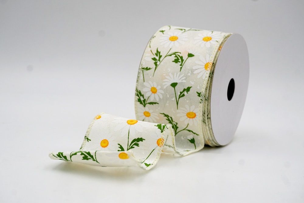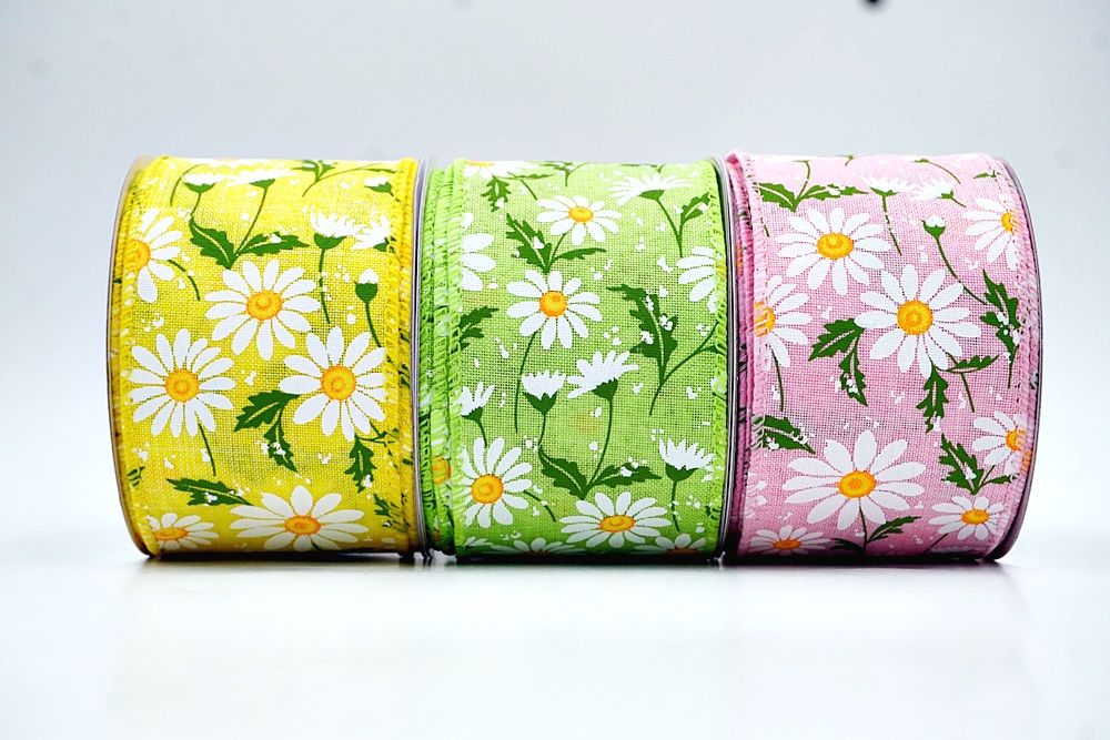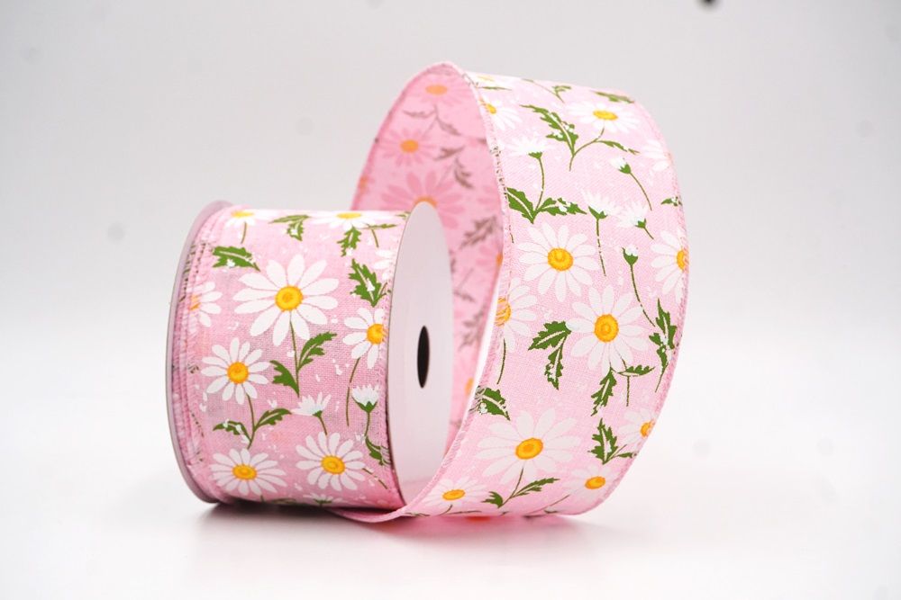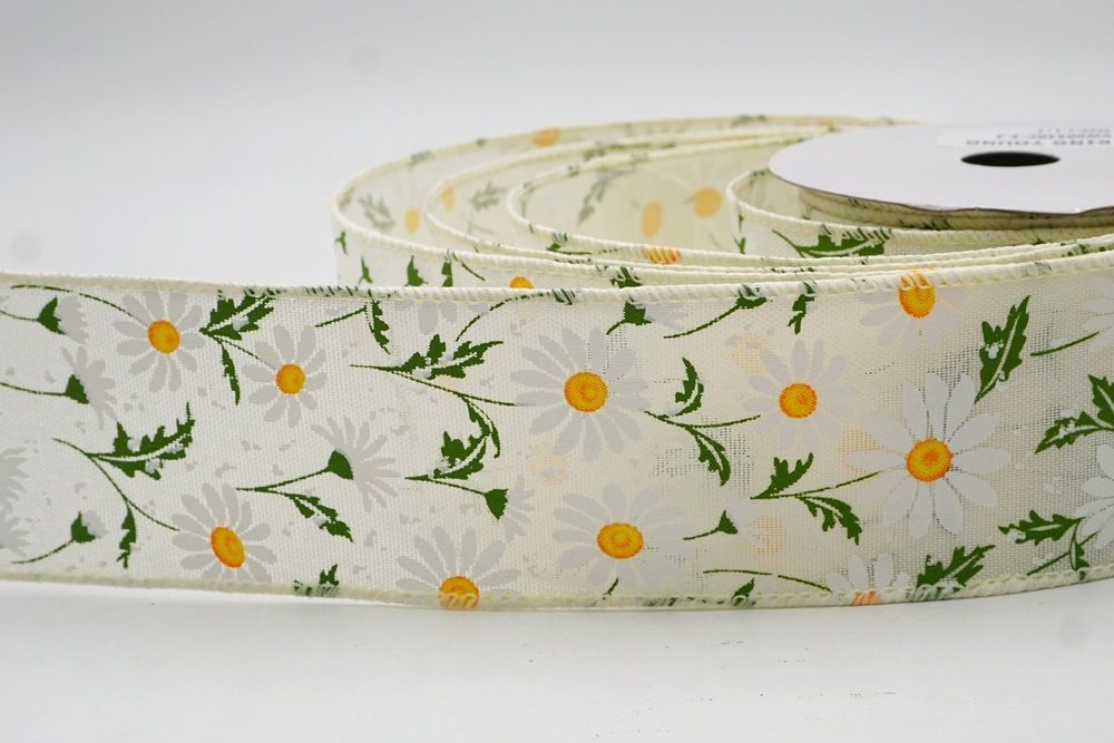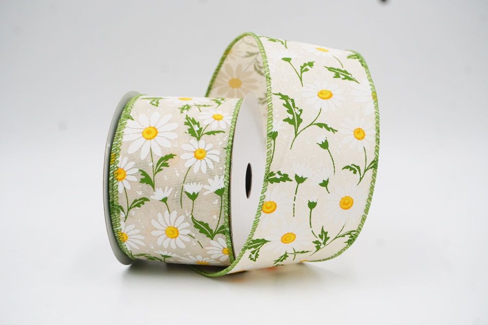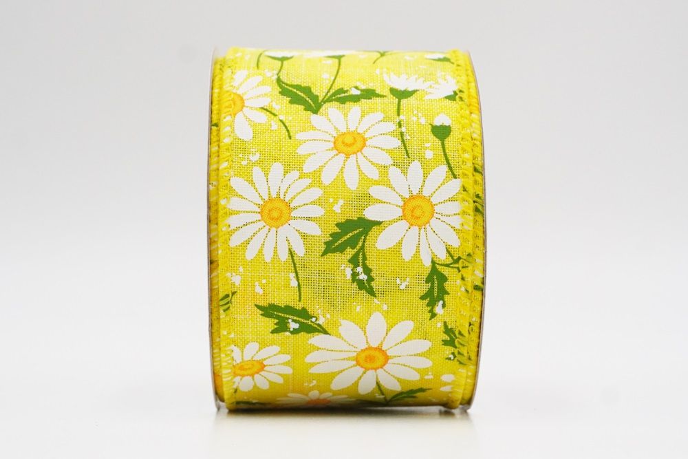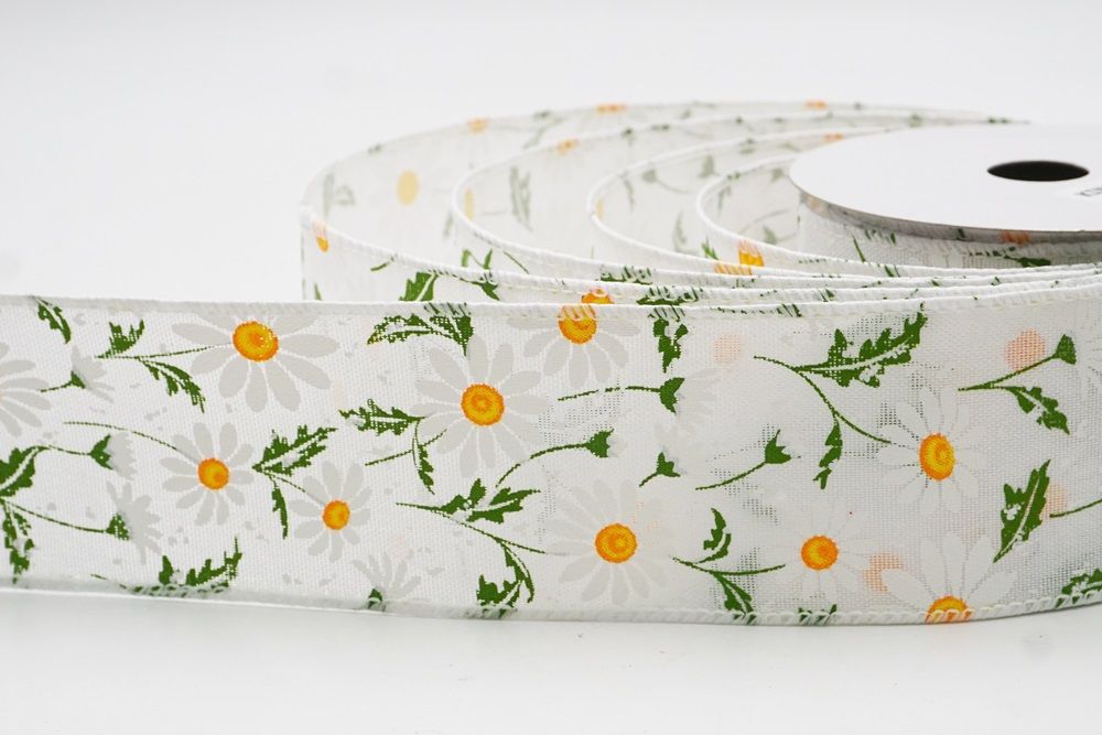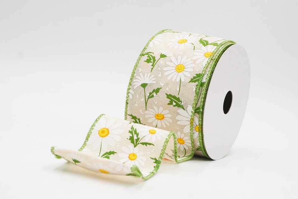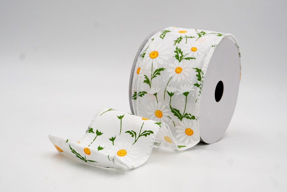 Captura la esencia de la primavera con la cinta de alambre de flor margarita en flor, disponible en tamaños que van desde 1 pulgada hasta 2.5 pulgadas de ancho. Elaborada con yute sintético, esta cinta añade un toque rústico pero encantador a tus creaciones de primavera. Adornado con delicadas flores de margarita en una variedad de vibrantes colores de primavera, incluyendo azul mezclilla, rosa, amarillo, púrpura, azul bebé y verde claro, este lazo irradia la frescura y vitalidad de la temporada.