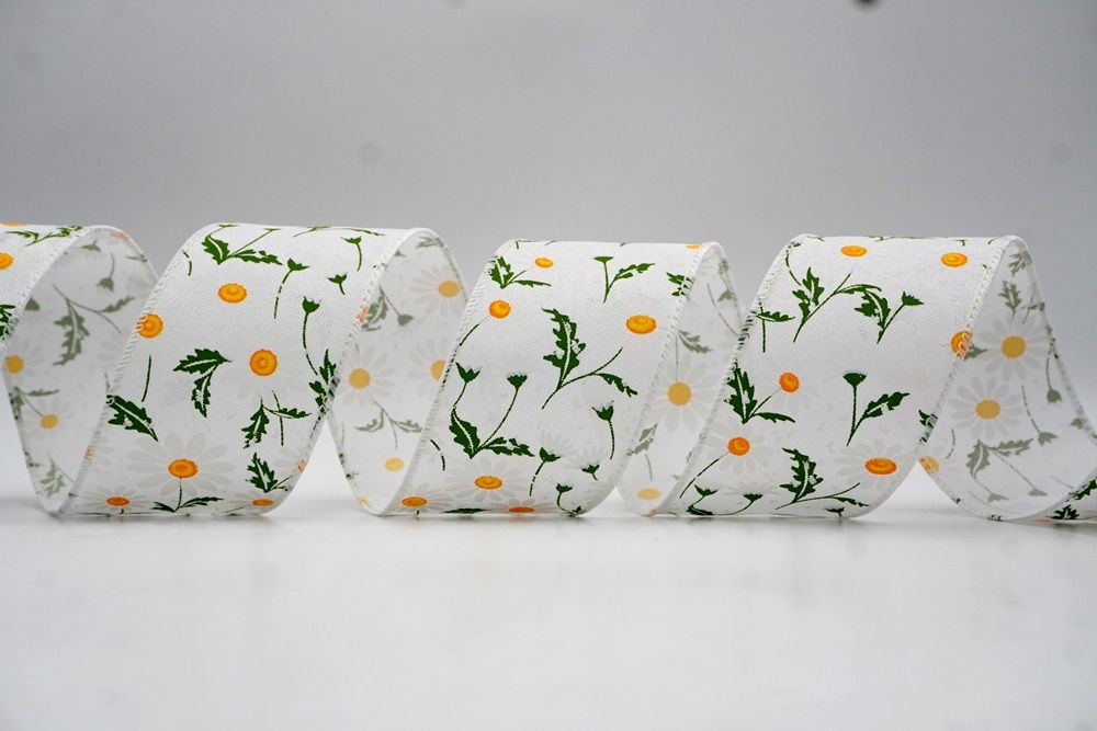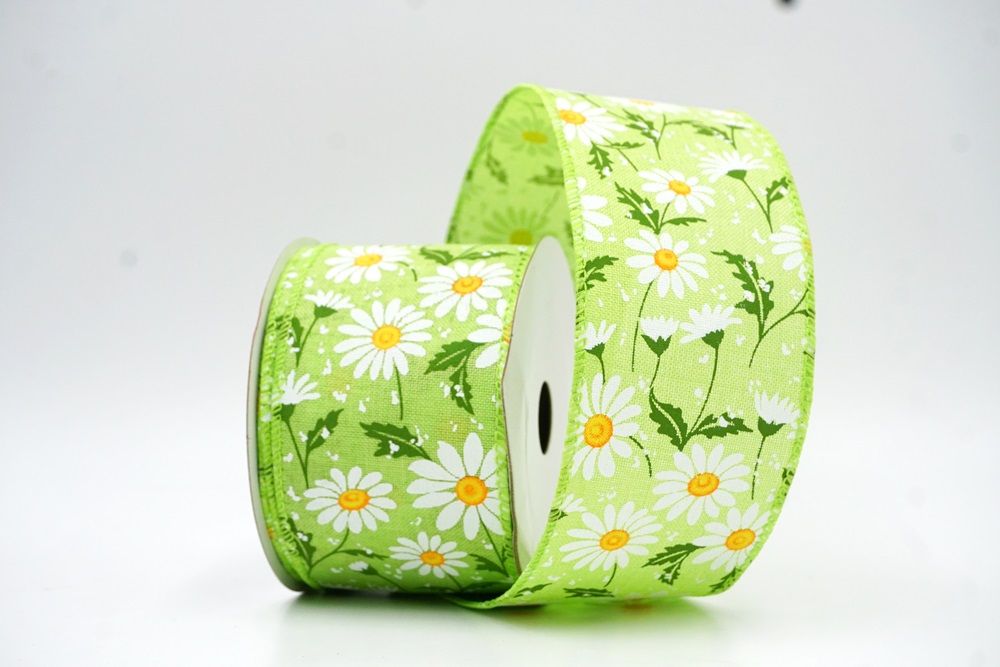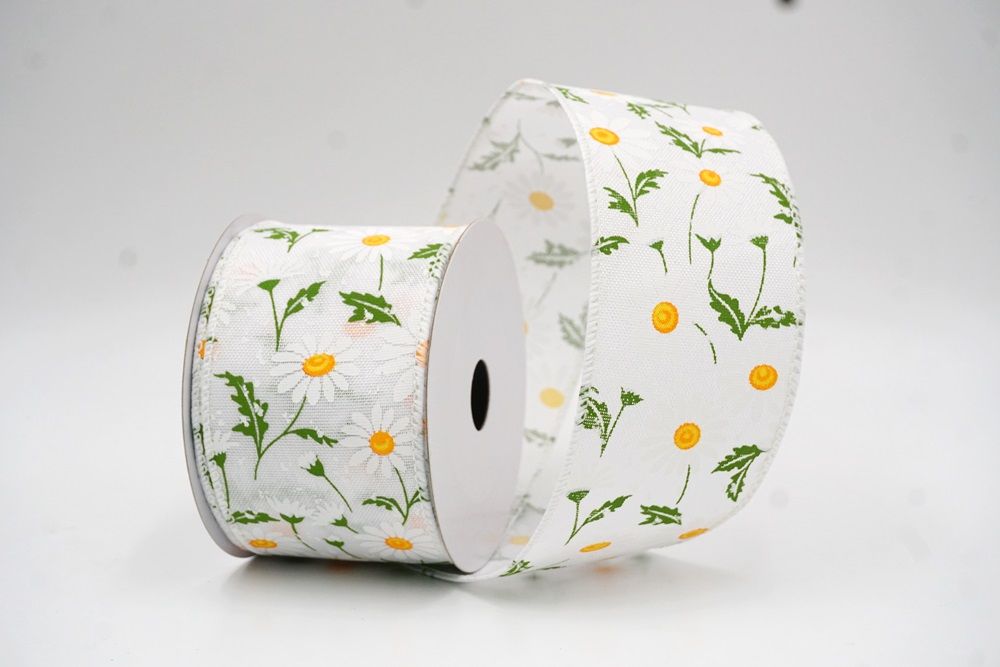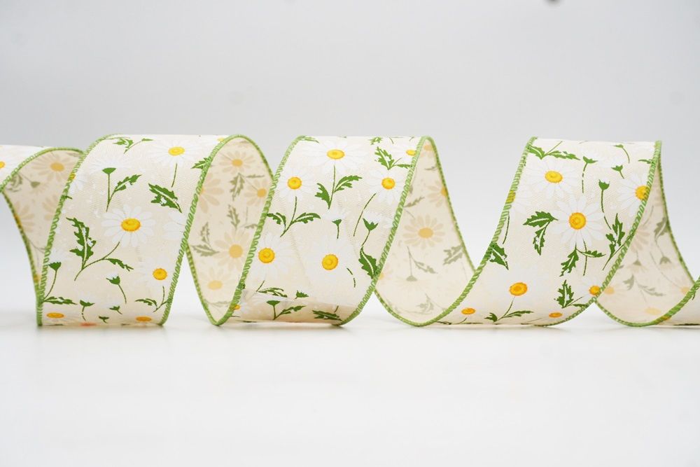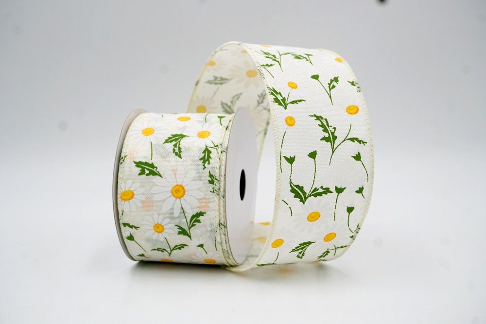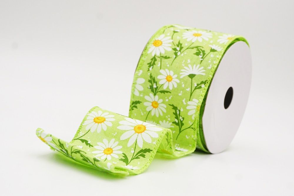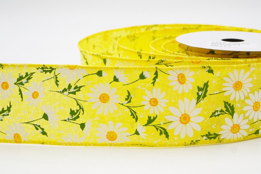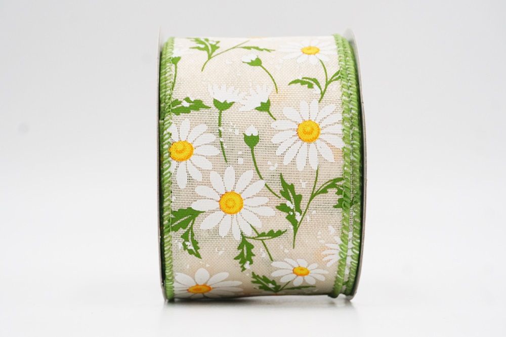 Captura la esencia de la primavera con la cinta de alambre de flor margarita en flor, disponible en tamaños que van desde 1 pulgada hasta 2.5 pulgadas de ancho. Elaborada con yute sintético, esta cinta añade un toque rústico pero encantador a tus creaciones de primavera. Adornado con delicadas flores de margarita en una variedad de vibrantes colores de primavera, incluyendo azul mezclilla, rosa, amarillo, púrpura, azul bebé y verde claro, este lazo irradia la frescura y vitalidad de la temporada.