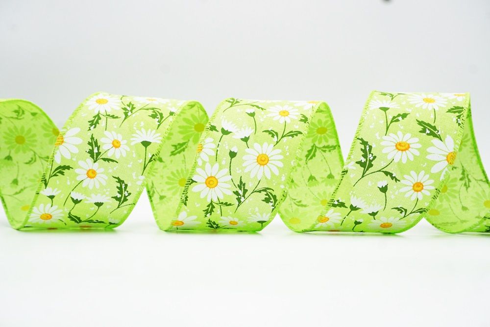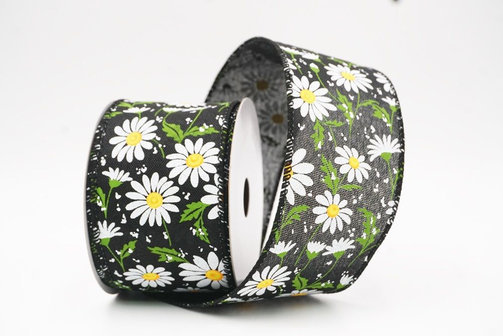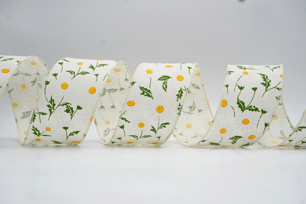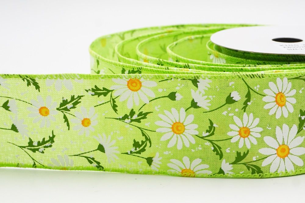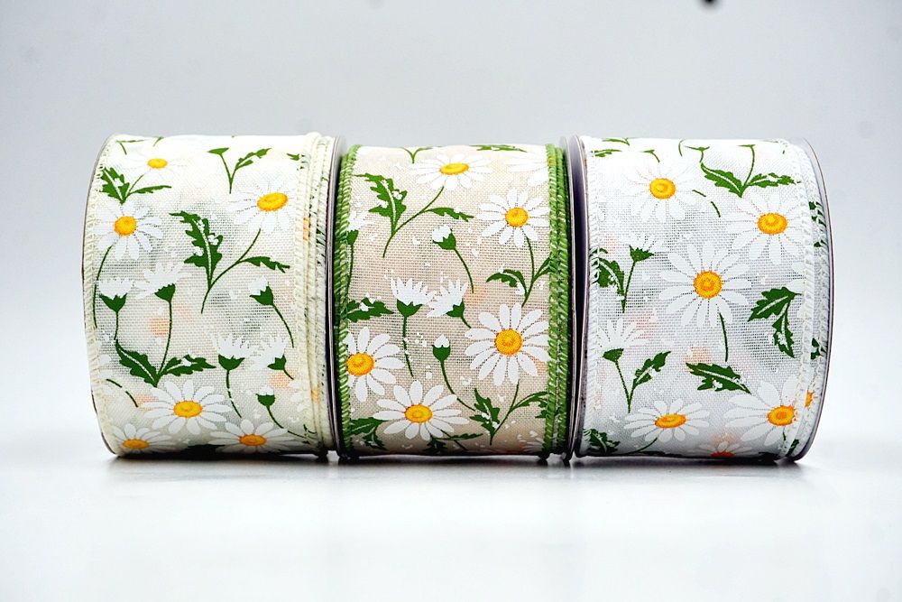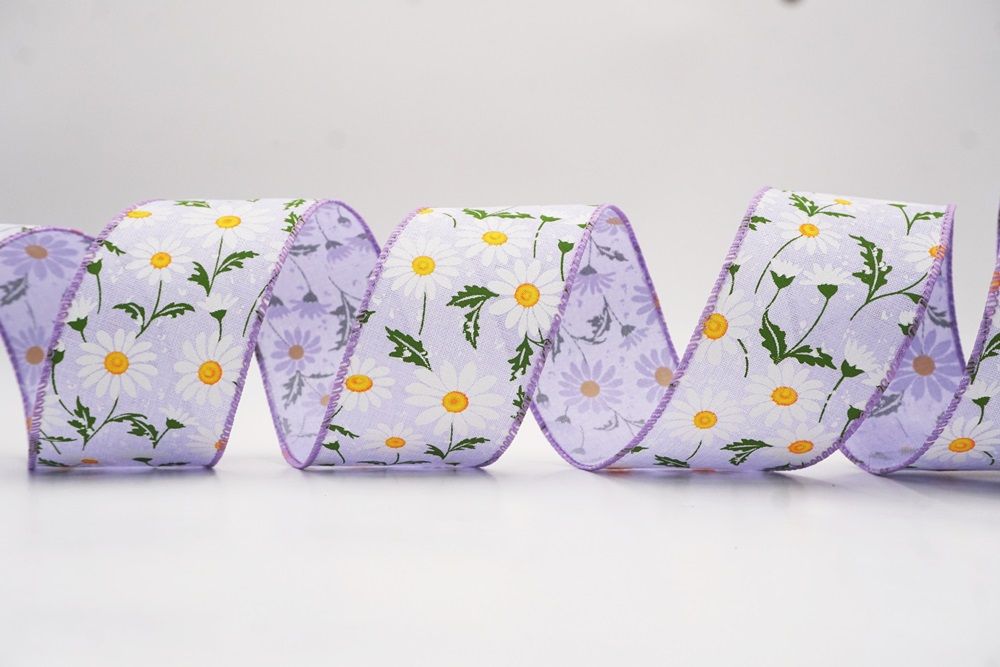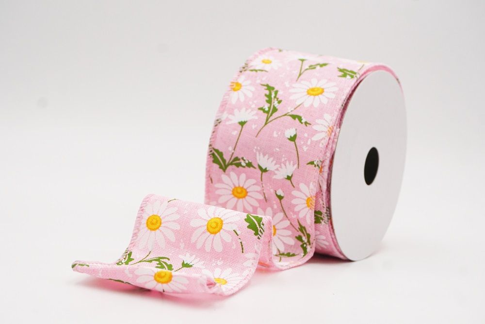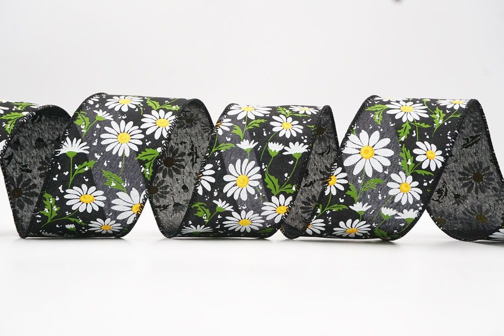 Captura la esencia de la primavera con la cinta de alambre de flor margarita en flor, disponible en tamaños que van desde 1 pulgada hasta 2.5 pulgadas de ancho. Elaborada con yute sintético, esta cinta añade un toque rústico pero encantador a tus creaciones de primavera. Adornado con delicadas flores de margarita en una variedad de vibrantes colores de primavera, incluyendo azul mezclilla, rosa, amarillo, púrpura, azul bebé y verde claro, este lazo irradia la frescura y vitalidad de la temporada.