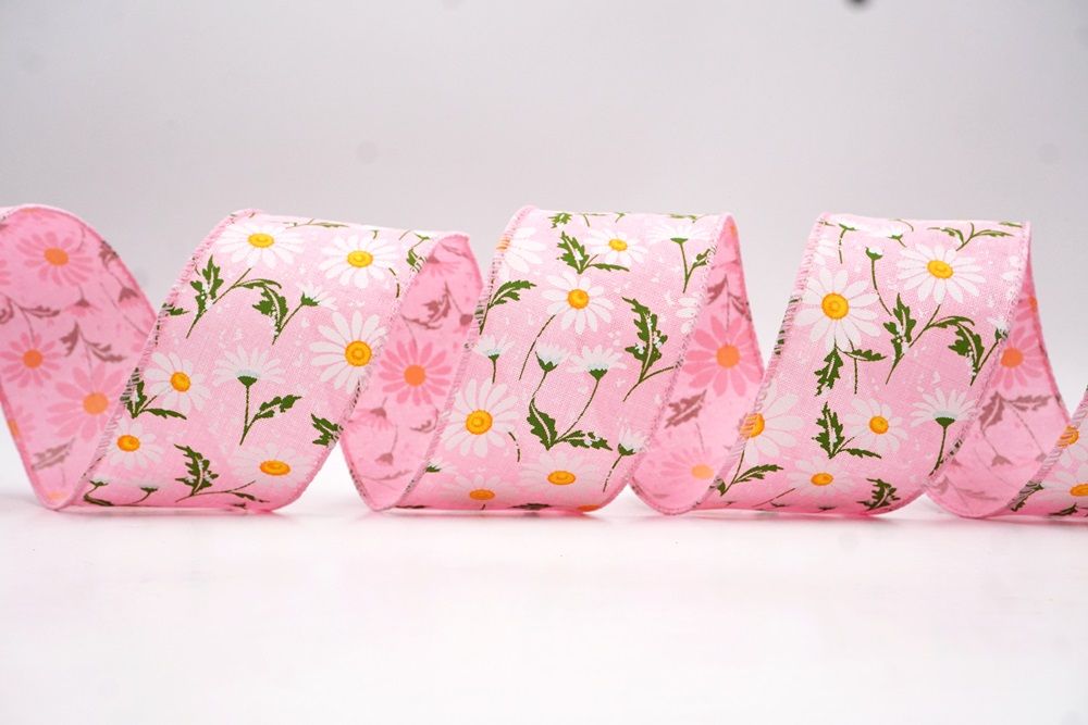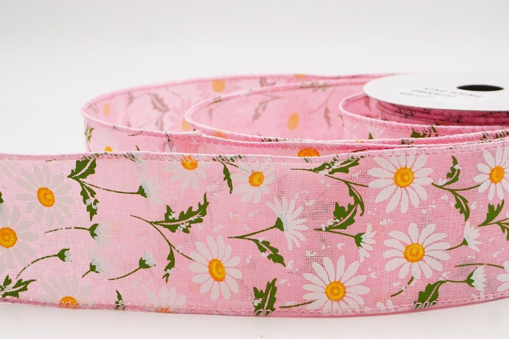 La belleza encantadora de la primavera con nuestra colección de cintas de alambre de flores margarita de primavera, una celebración de la elegancia y frescura de la naturaleza. Meticulosamente elaborados sobre una tela base de yute sintético, estas cintas presentan un encantador diseño de flor de margarita en encantadores tonos de rosa, marrón claro, blanco con flores azules y rosas, y verde. Los bordes cableados añaden un toque de versatilidad, permitiendo una fácil modelación y estilización. Disponibles en tamaños que van desde 1 1/2" (38mm) hasta 2 1/2" (63mm), estas cintas ofrecen un lienzo para la creatividad en diversas aplicaciones.