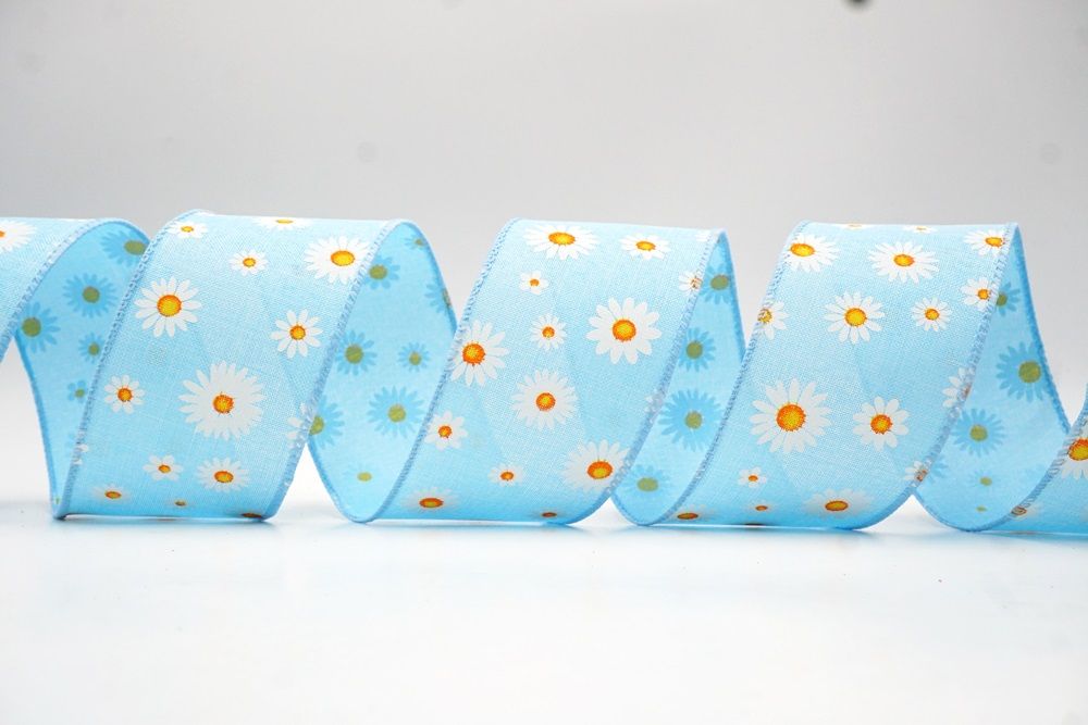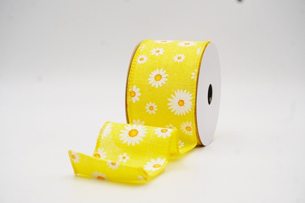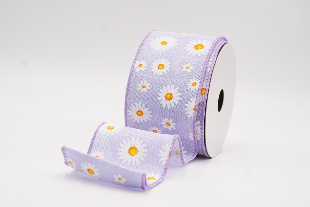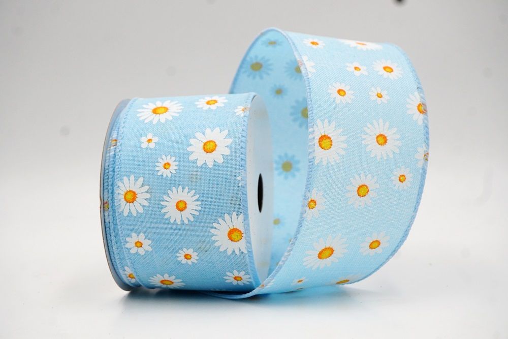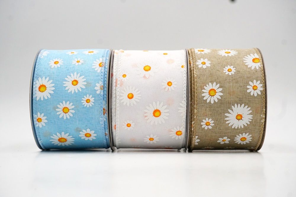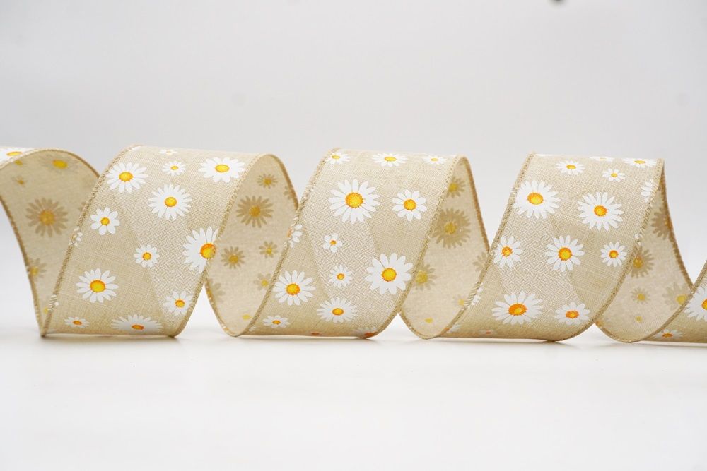 Captura la esencia de la primavera con la cinta de alambre de flor margarita en flor, disponible en tamaños que van desde 1 pulgada hasta 2.5 pulgadas de ancho. Elaborada con yute sintético, esta cinta añade un toque rústico pero encantador a tus creaciones de primavera. Adornado con delicadas flores de margarita en una variedad de vibrantes colores de primavera, incluyendo azul mezclilla, rosa, amarillo, púrpura, azul bebé y verde claro, este lazo irradia la frescura y vitalidad de la temporada.