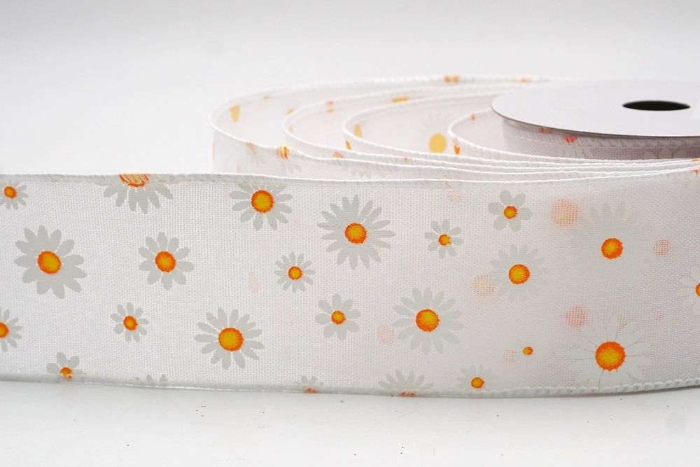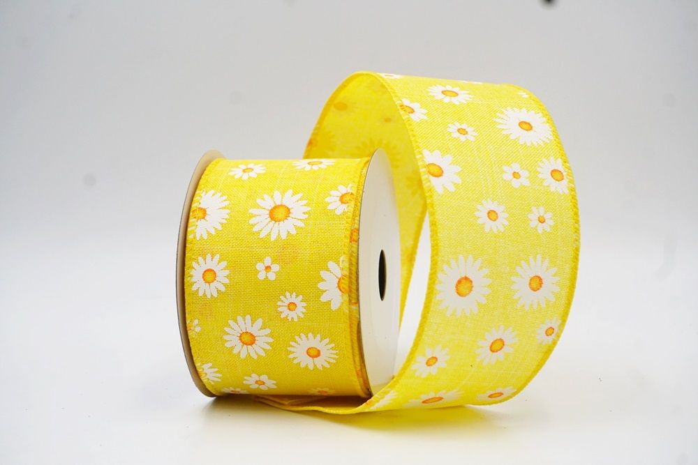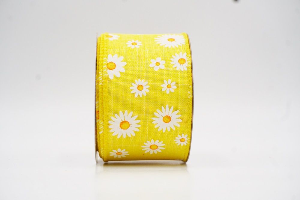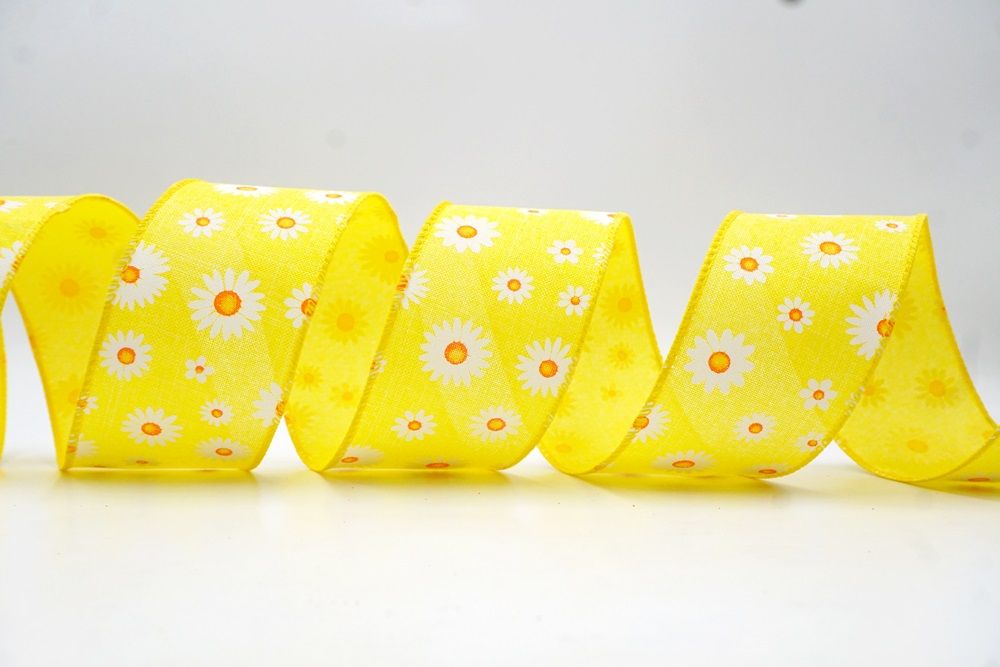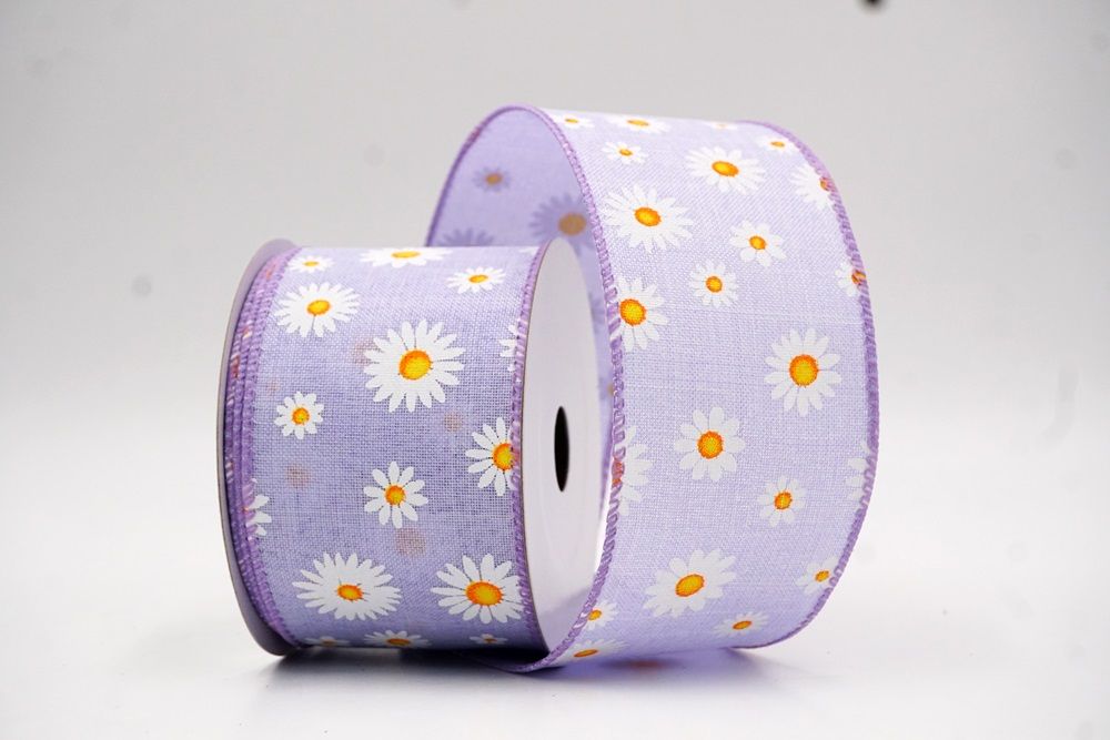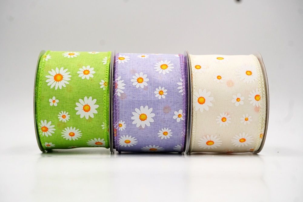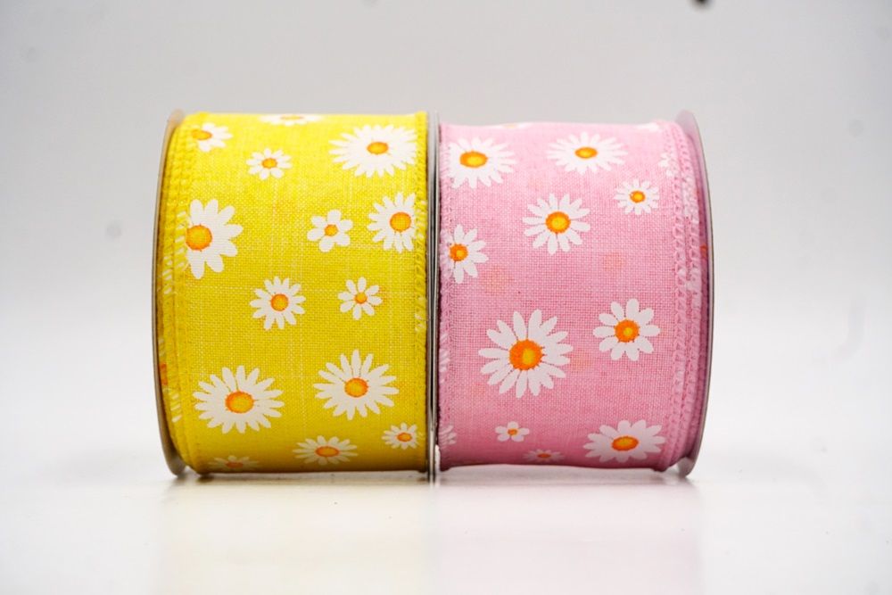 Captura la esencia de la primavera con la cinta de alambre de flor margarita en flor, disponible en tamaños que van desde 1 pulgada hasta 2.5 pulgadas de ancho. Elaborada con yute sintético, esta cinta añade un toque rústico pero encantador a tus creaciones de primavera. Adornado con delicadas flores de margarita en una variedad de vibrantes colores de primavera, incluyendo azul mezclilla, rosa, amarillo, púrpura, azul bebé y verde claro, este lazo irradia la frescura y vitalidad de la temporada.