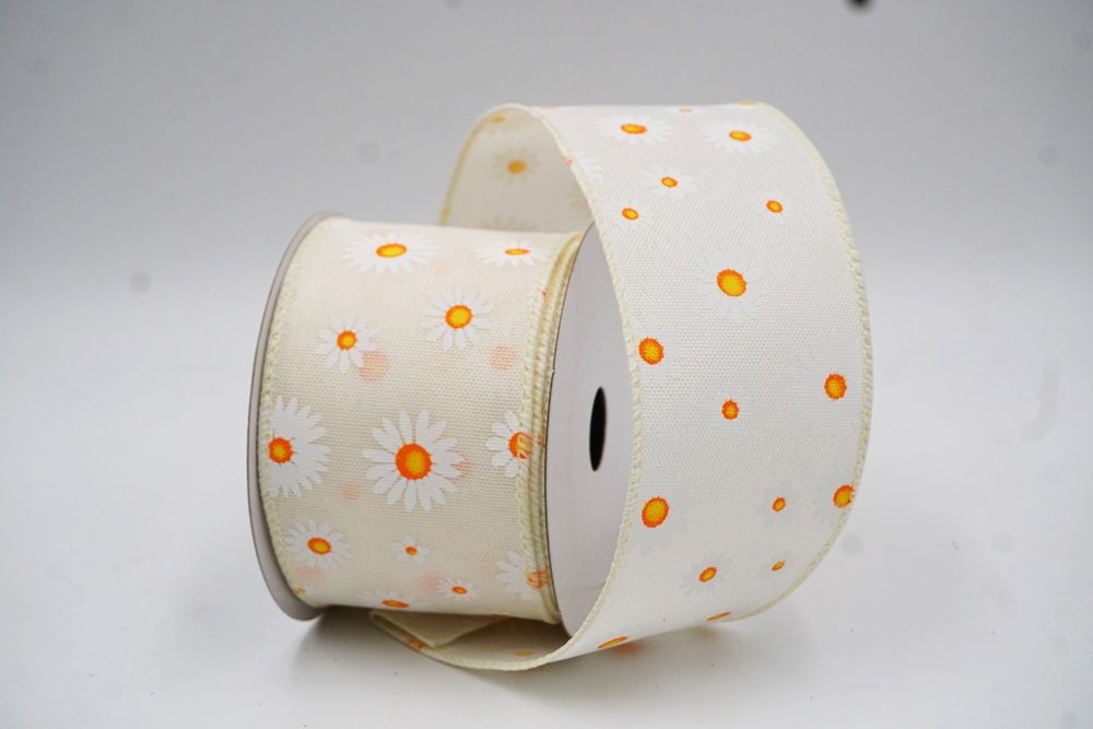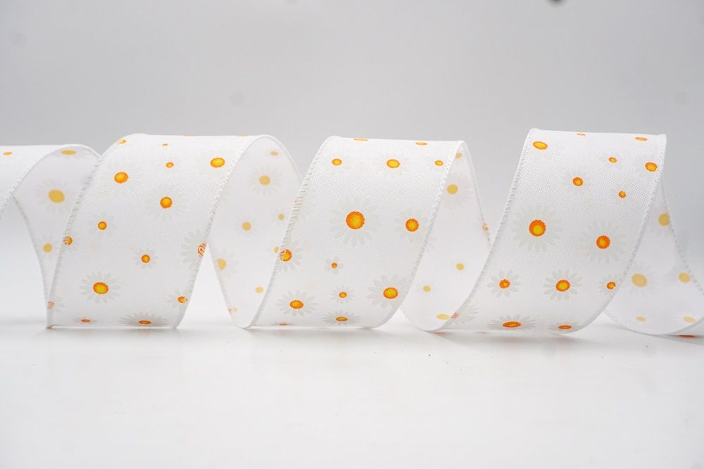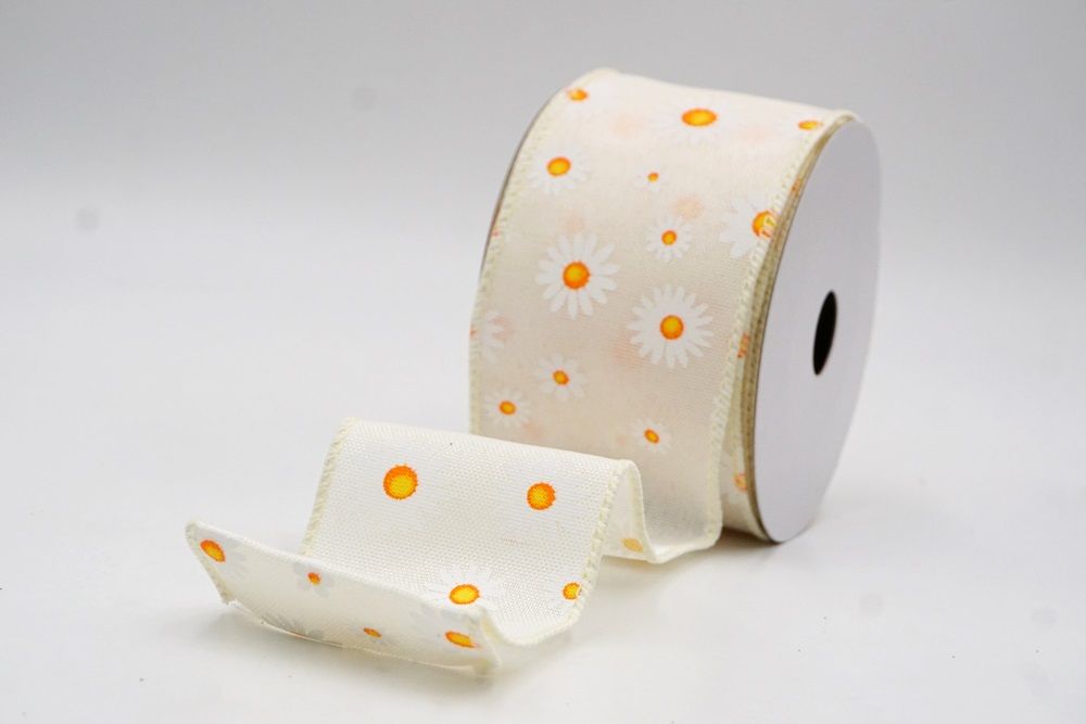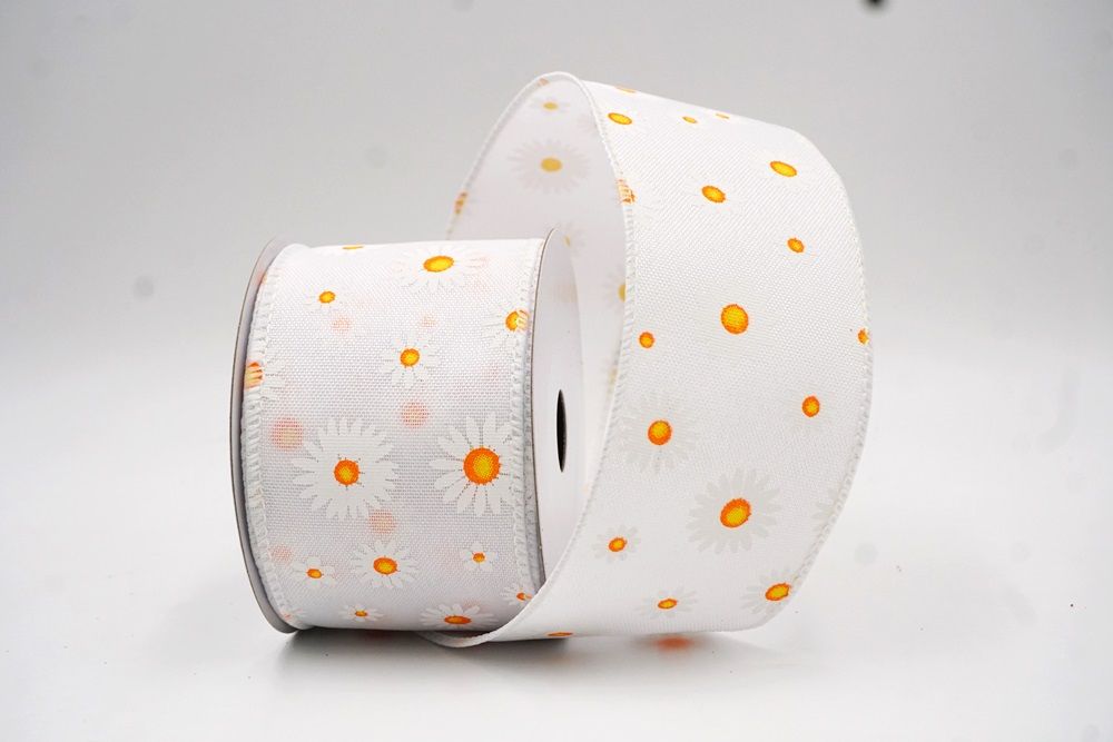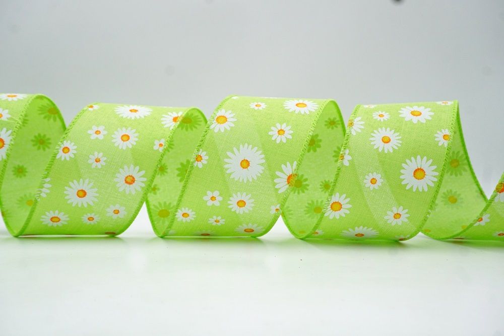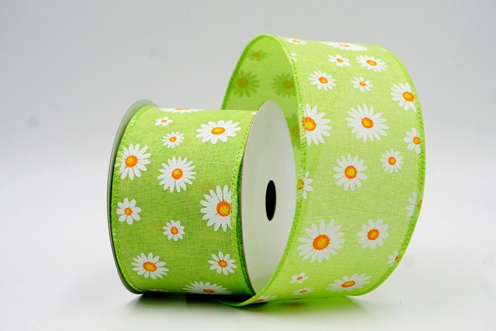 Captura la esencia de la primavera con la cinta de alambre de flor margarita en flor, disponible en tamaños que van desde 1 pulgada hasta 2.5 pulgadas de ancho. Elaborada con yute sintético, esta cinta añade un toque rústico pero encantador a tus creaciones de primavera. Adornado con delicadas flores de margarita en una variedad de vibrantes colores de primavera, incluyendo azul mezclilla, rosa, amarillo, púrpura, azul bebé y verde claro, este lazo irradia la frescura y vitalidad de la temporada.