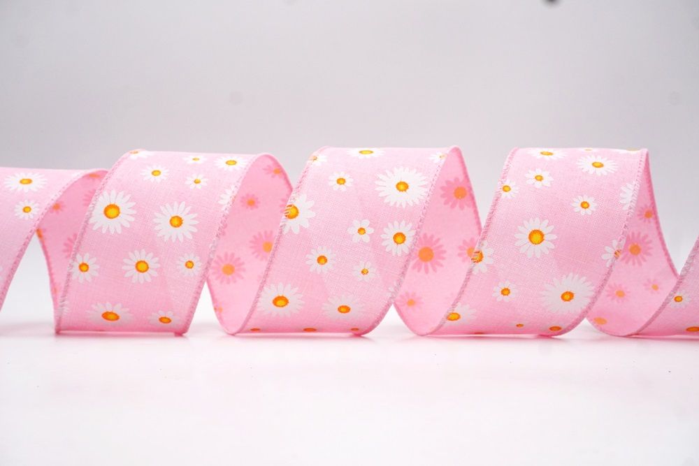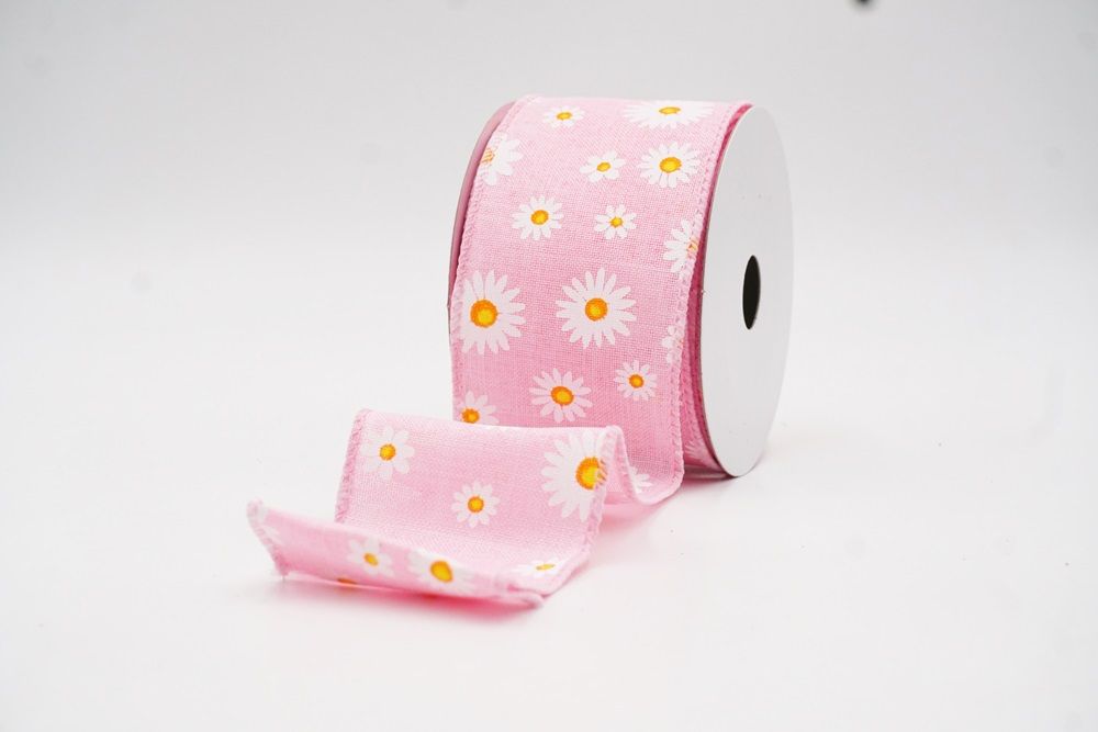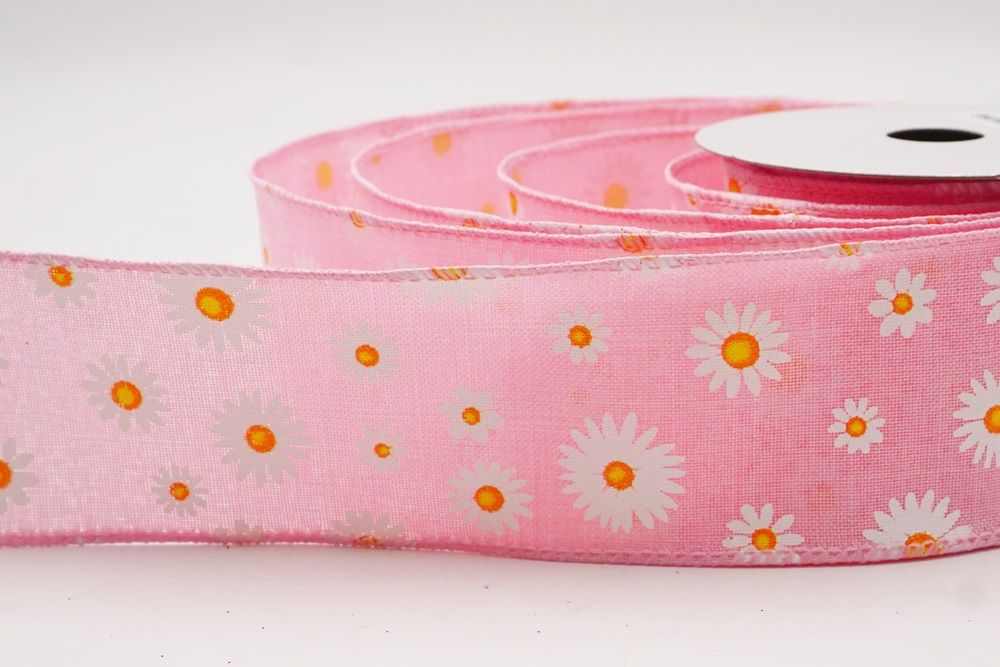 La belleza encantadora de la primavera con nuestra colección de cintas de alambre de flores margarita de primavera, una celebración de la elegancia y frescura de la naturaleza. Meticulosamente elaborados sobre una tela base de yute sintético, estas cintas presentan un encantador diseño de flor de margarita en encantadores tonos de rosa, marrón claro, blanco con flores azules y rosas, y verde. Los bordes cableados añaden un toque de versatilidad, permitiendo una fácil modelación y estilización. Disponibles en tamaños que van desde 1 1/2" (38mm) hasta 2 1/2" (63mm), estas cintas ofrecen un lienzo para la creatividad en diversas aplicaciones.