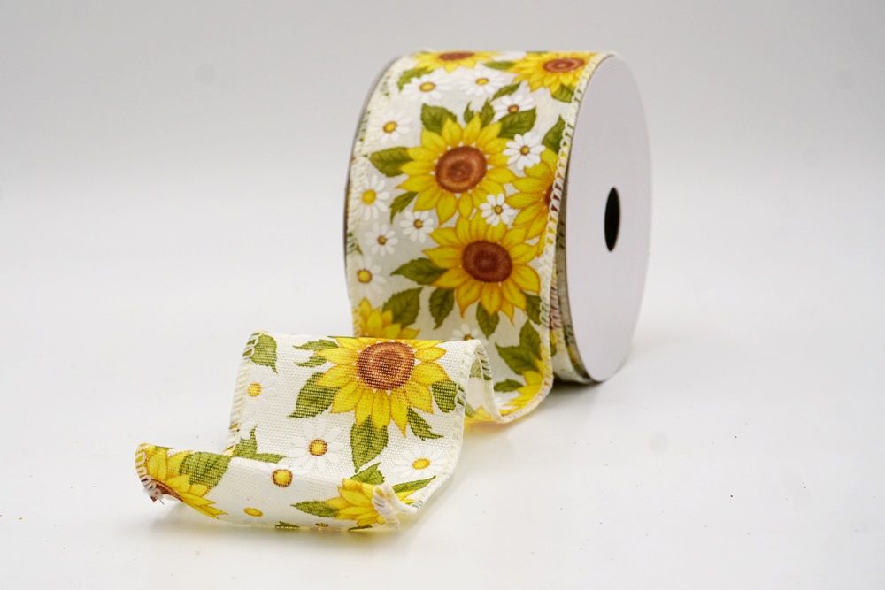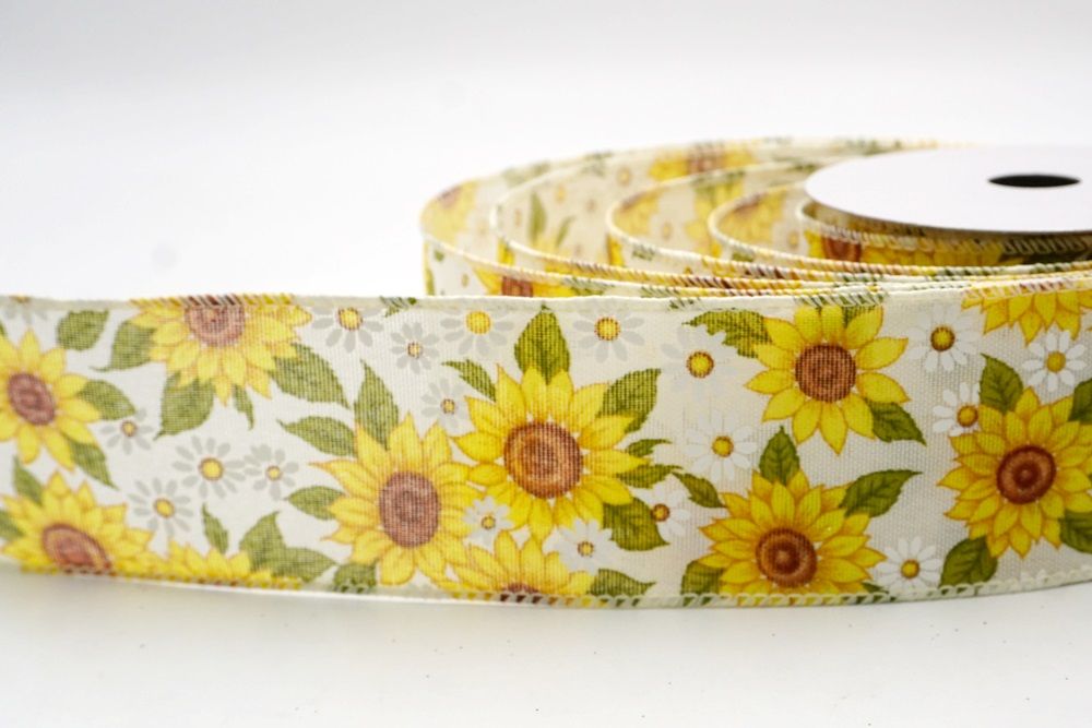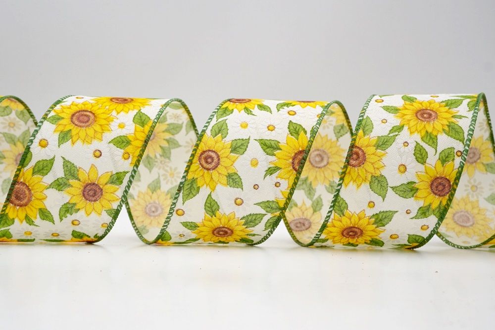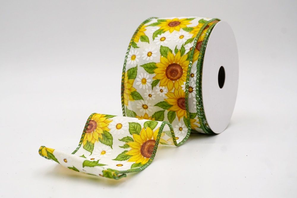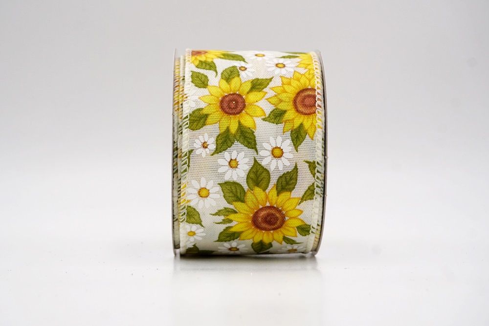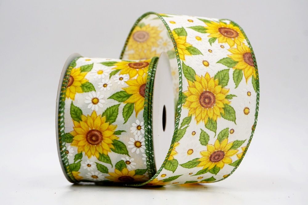 El patrón encontrado en la cinta está lleno de grandes girasoles vibrantes y pequeñas y encantadoras margaritas. El brillante girasol amarillo es el enfoque principal, apareciendo con un rico centro marrón y una hoja verde realista. Estas grandes flores están rodeadas por la pequeña margarita blanca pura, que tiene un pequeño centro amarillo y ayuda a llenar el espacio con una sensación ligera y aireada. La combinación de las dos flores crea una escena fresca, inspirada en el jardín, que evoca un día soleado. Debido a que la cinta tiene alambre a lo largo de ambos bordes, se puede moldear fácilmente en bucles perfectos y asegurarse firmemente en su lugar. El alambre facilita la gestión y organización, una gran ventaja para cualquiera que haga manualidades o decore para un evento. El diseño alegre y la estructura resistente significan que la cinta funciona maravillosamente para todo tipo de ideas creativas.
