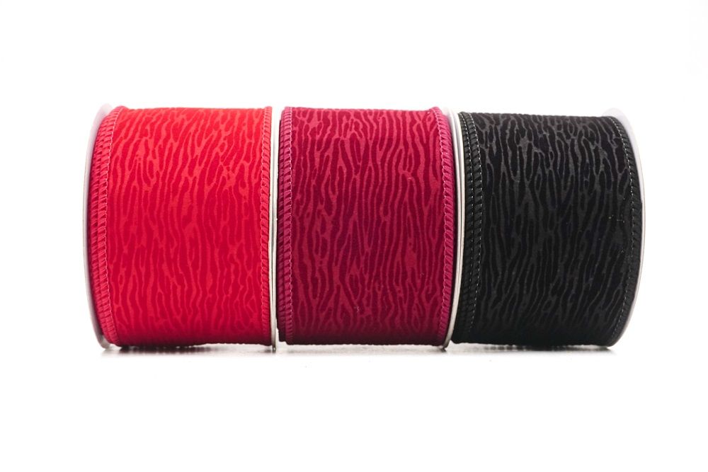 Este diseño imita la belleza de la madera, combinado con la suavidad del terciopelo para un efecto rústico-chic. Disponible en 6 colores ricos: Verde, Azul Marino, Rojo, Rojo Oscuro, Negro y Burdeos, esta cinta realza la decoración navideña de estilo campestre y boscoso.
