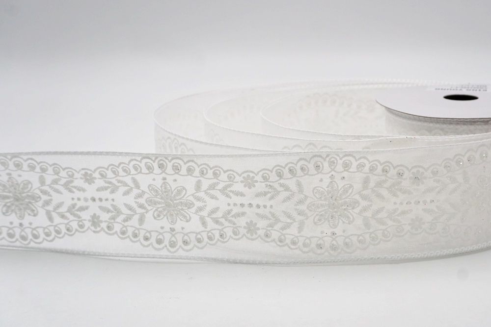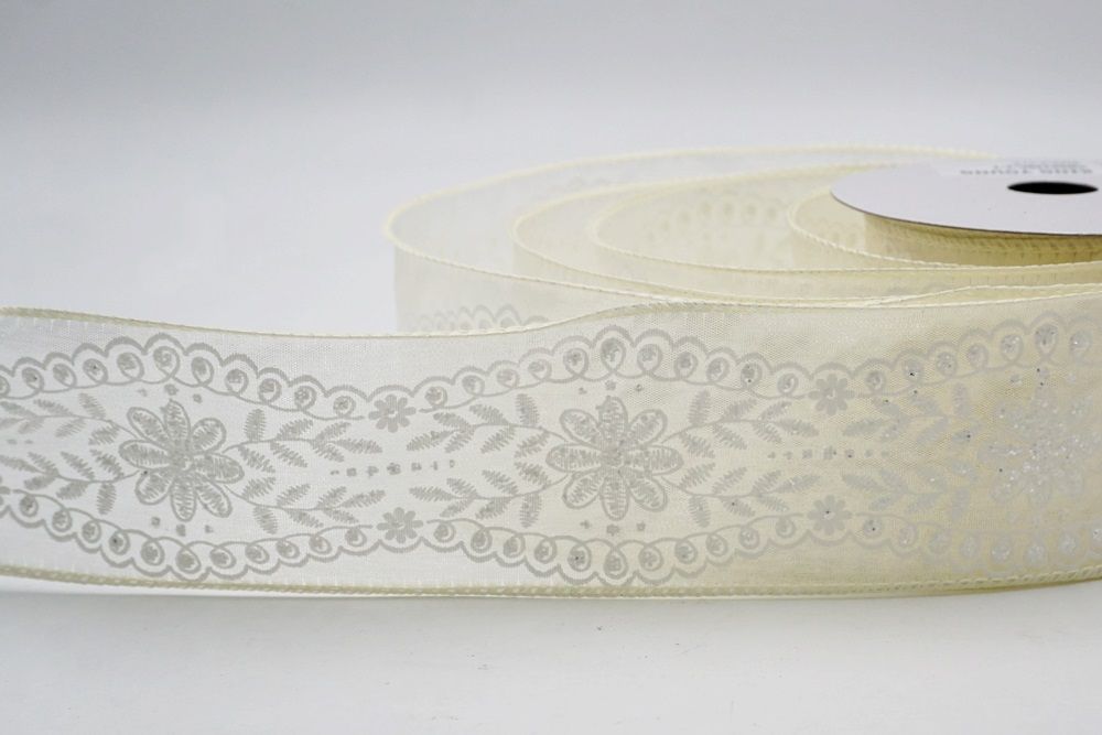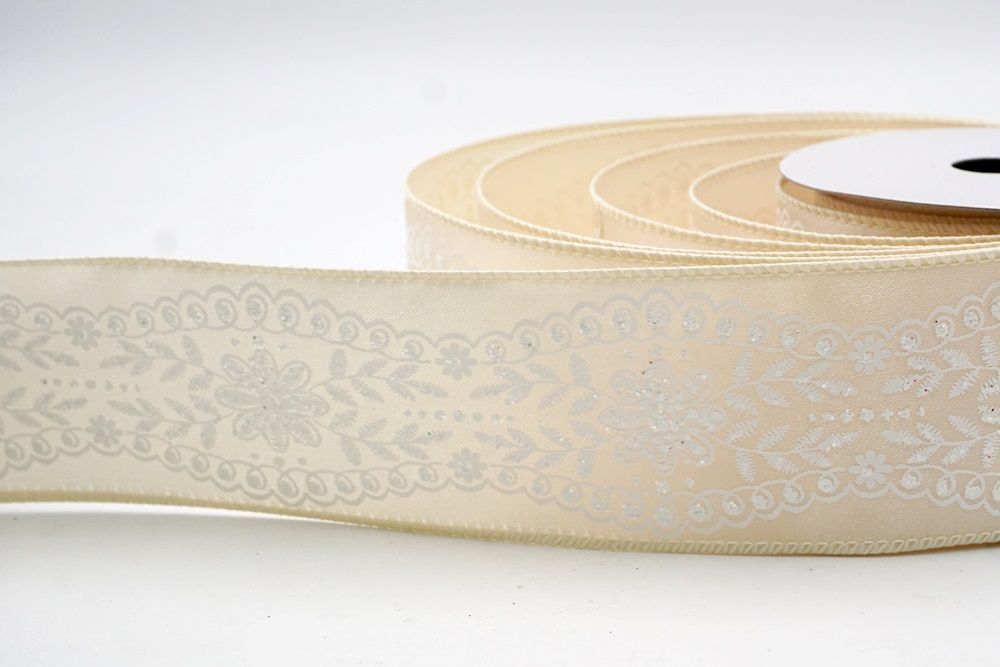 La cinta de alambre con diseño de flores vintage es una hermosa opción para añadir un toque de elegancia a tu hogar. Presenta un delicado patrón de enredadera y flores blancas impreso en dos texturas distintas: una tela ligera y aireada y un tejido de yute sintético más texturizado. Ambos estilos vienen en un ancho versátil de 2.5 pulgadas y están disponibles en colores suaves como blanco, crema y rosa empolvado. Este diseño se siente como un soplo de aire fresco, lo que lo convierte en una combinación perfecta para la temporada de primavera cuando la naturaleza comienza a florecer. Los bordes alámbricos son particularmente útiles porque permiten que la cinta mantenga su estructura y forma, sin importar cómo la estilices. Ya sea que prefieras la sensación rústica del arpillera o el aspecto sofisticado del material transparente, estas cintas ofrecen una estética vintage atemporal que se adapta a cualquier estilo.