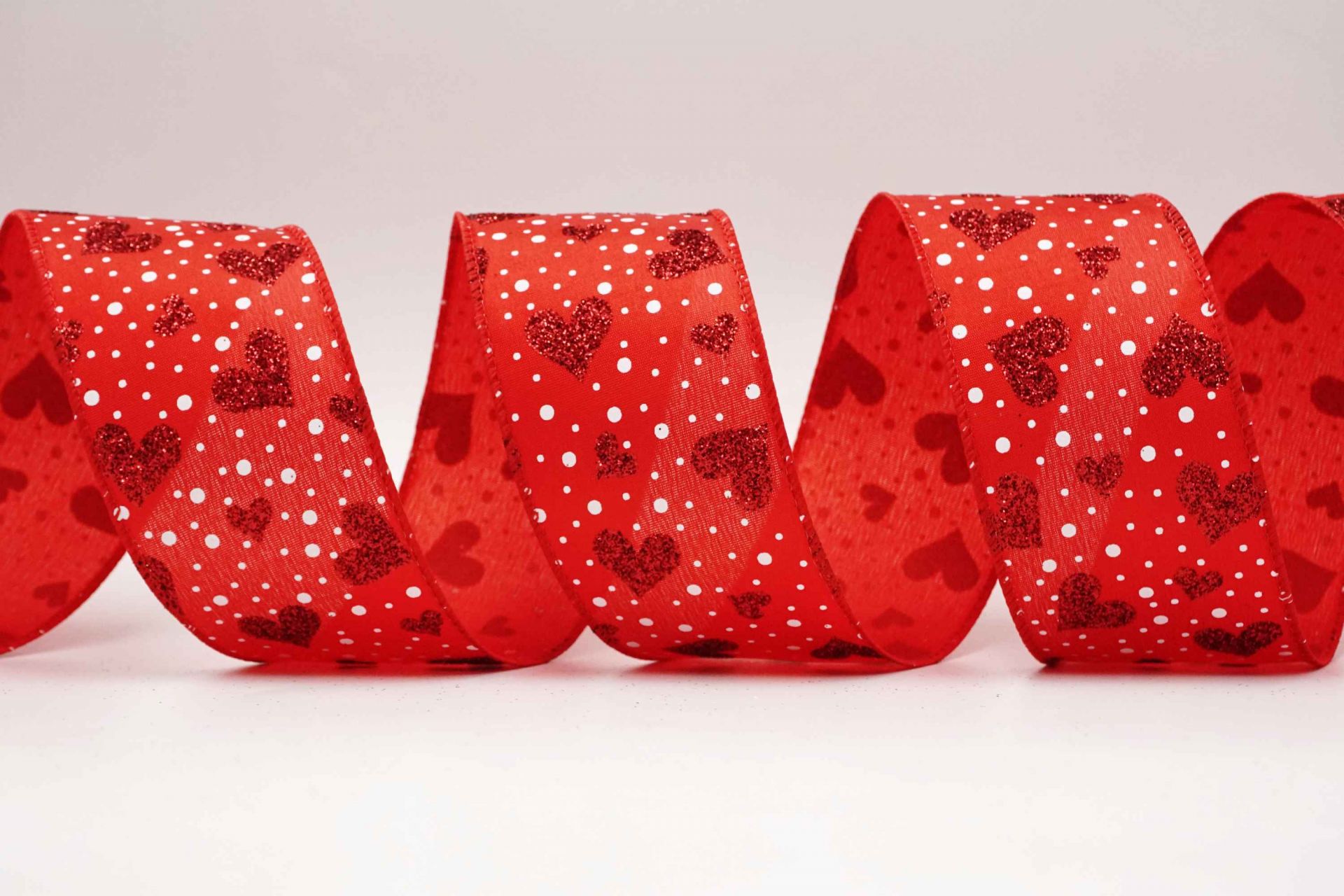 Tämä punainen kimaltava sydän-teemainen ystävänpäivän nauhasarja kimaltelee! Pienet pisteet ja viivat matta valkoisessa värissä punaisissa kimaltavissa sydämissä tekevät tästä ystävänpäivän nauhasta vieläkin suloisemman. Nauhassa on erilaisia punaisia kimaltavia sydänmalleja, ja se on täydellinen valinta ystävänpäivän koristeisiin. Tämä söpö ja suloinen muotoilu on painettu kahdelle kankaalle, eli tekokuituburlapille ja taftille. Se on saatavilla neljässä taustavärissä ja kaikissa leveysvaihtoehdoissa. Meidän punaiset kimaltavat sydämet ystävänpäivän nauhasarja sisältää langalliset reunat, jotka on viimeistelty matalla yhteensopivalla langalla, jotta nauha ja nauha säilyttävät muotonsa.