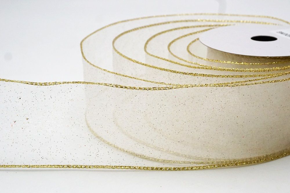 Yksivärinen kimaltava nauha tuo ylellisen kosketuksen kaikkiin luoviin projekteihisi. Herkästä läpikuultavasta kankaasta valmistettu nauha sisältää hienovaraisen kimalteen, joka tuo siihen hienostunutta säihkettä. Saatavilla upeassa 15 värin valikoimassa, mukaan lukien valkoinen, vihreä-kulta, kuninkaallinen sininen, burgundi-kulta, kuuma vaaleanpunainen-kulta ja paljon muuta, se varmistaa, että löydät täydellisen yhteensopivuuden mihin tahansa teemaan tai tilaisuuteen. Johtavat reunat tarjoavat erinomaisen joustavuuden, mikä tekee niiden muotoilusta jousiksi, korostuksiksi ja muiksi monimutkaisiksi muodoiksi helppoa. Leveyksien vaihdellessa 1,5" (38mm) ja 2,5" (65mm) välillä, tämä nauha on sekä monipuolinen että tyylikäs.